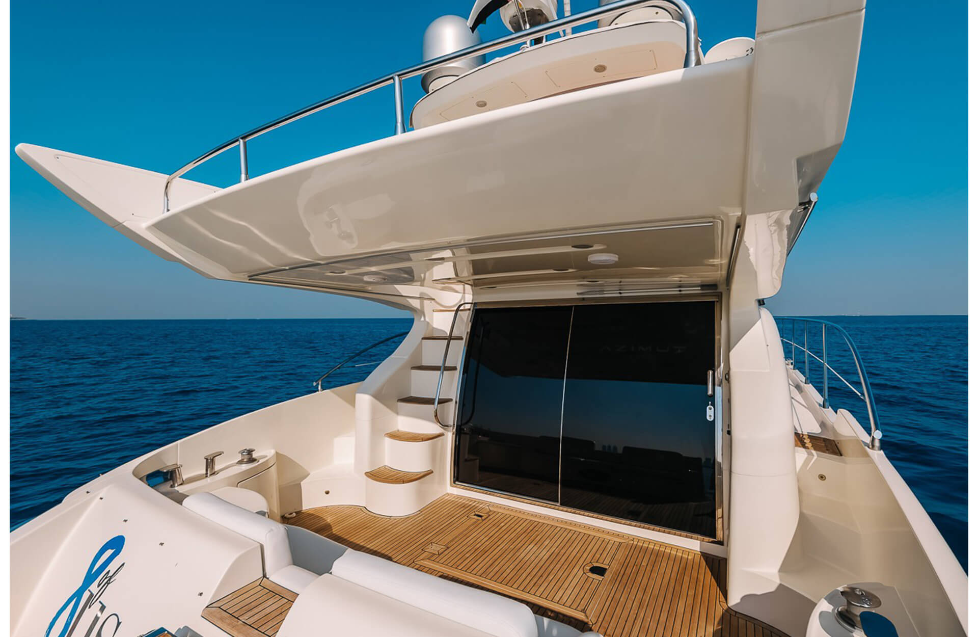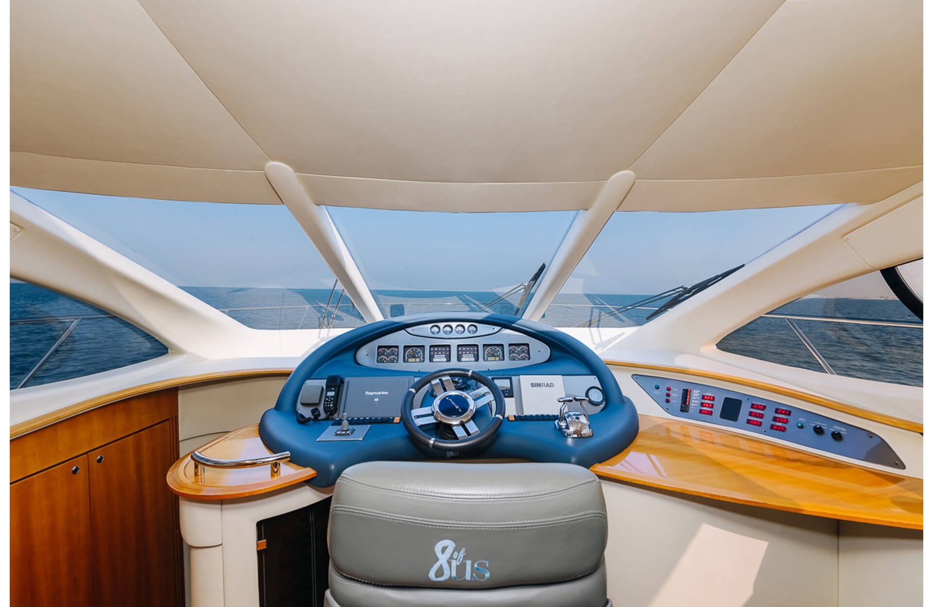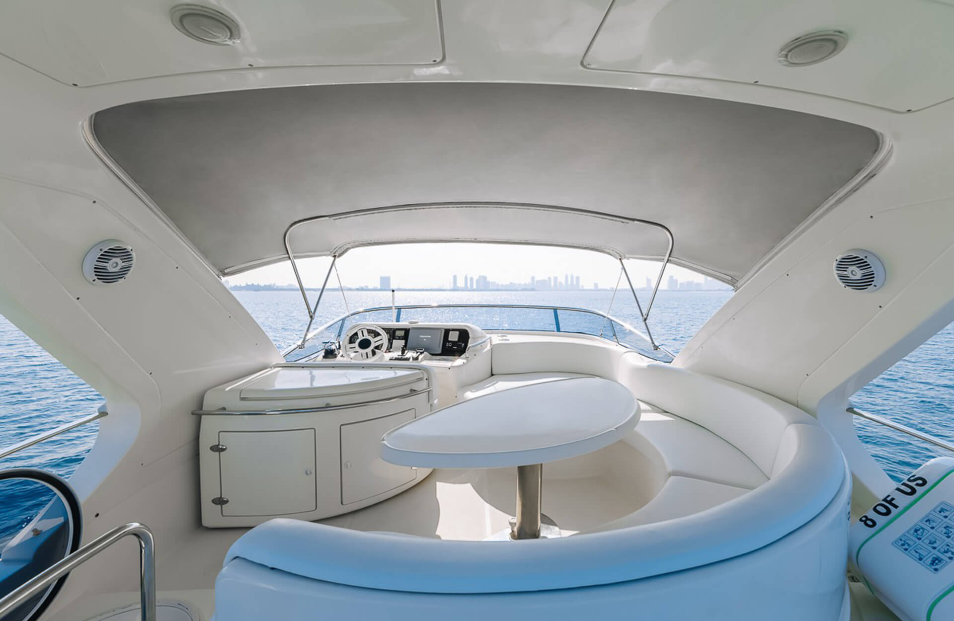 Step aboard the elegant "8ofUs" yacht in Dubai, a premium 55-ft vessel with a capacity up to 17 guests, with 2 cabins, 2 bathrooms, and a crew of 3. Featuring a upper deck, outdoor seating and modern amenities (including a swim platform), it’s ideal for group outings, celebrations, or relaxing day-charters. With a flexible layout and stylish design, "8ofUs" offers both comfort and versatility. Book through Dubai Yacht Rental today and enjoy a refined yachting experience aboard the "8ofUs" yacht.