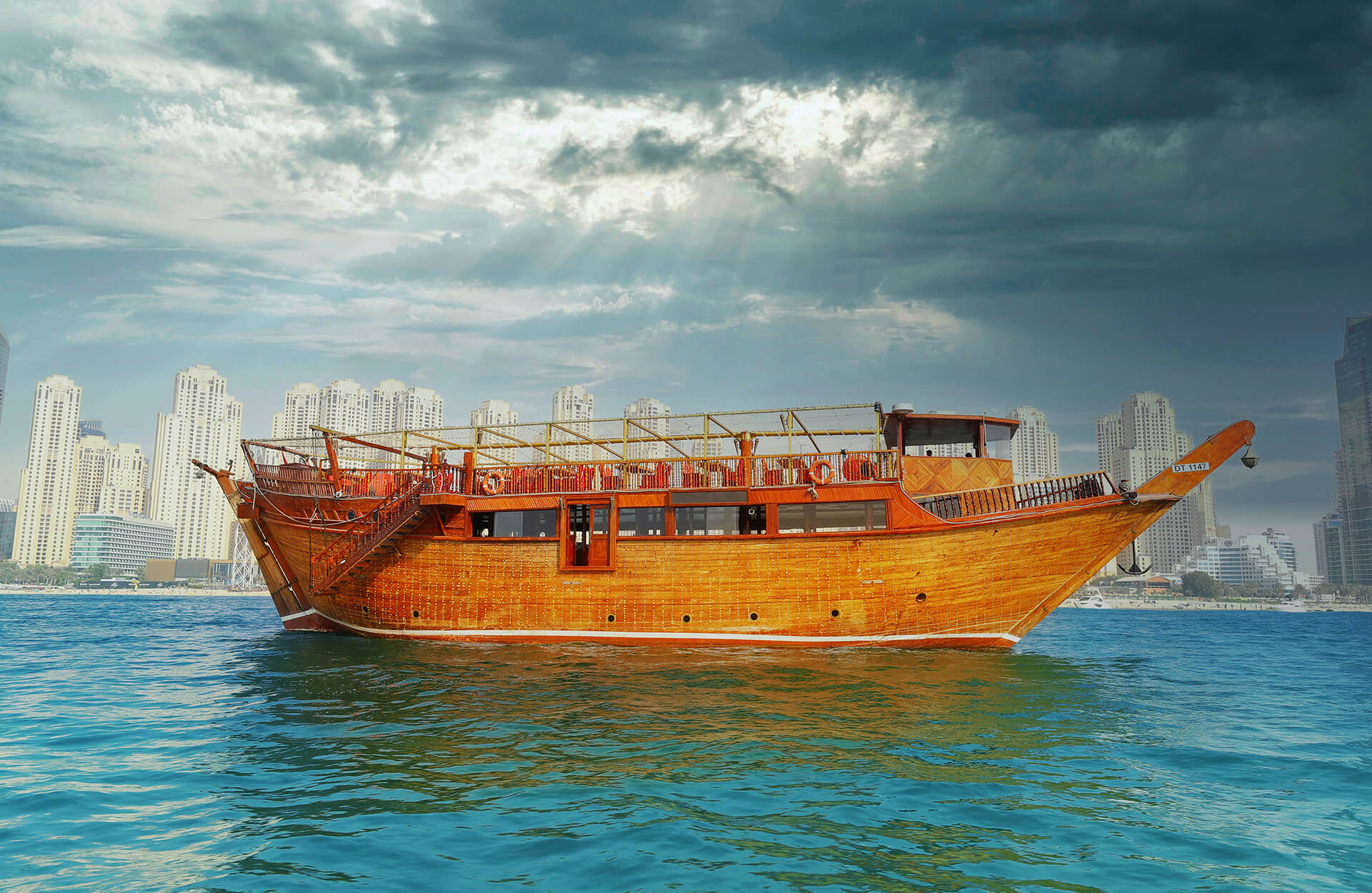 Rent the magnificent "Al Mansour" Dhow in Dubai, a spacious affordable 135ft dhow perfect for up to 240 guests. Ideal for dinner cruises, corporate events, or weddings, this dhow offers an elegant setting for any occasion. Cruise Dubai’s stunning coastline while enjoying exceptional service and luxurious amenities. Book through Dubai Yacht Rental today and host your next event aboard the "Al Mansour" Dhow.
