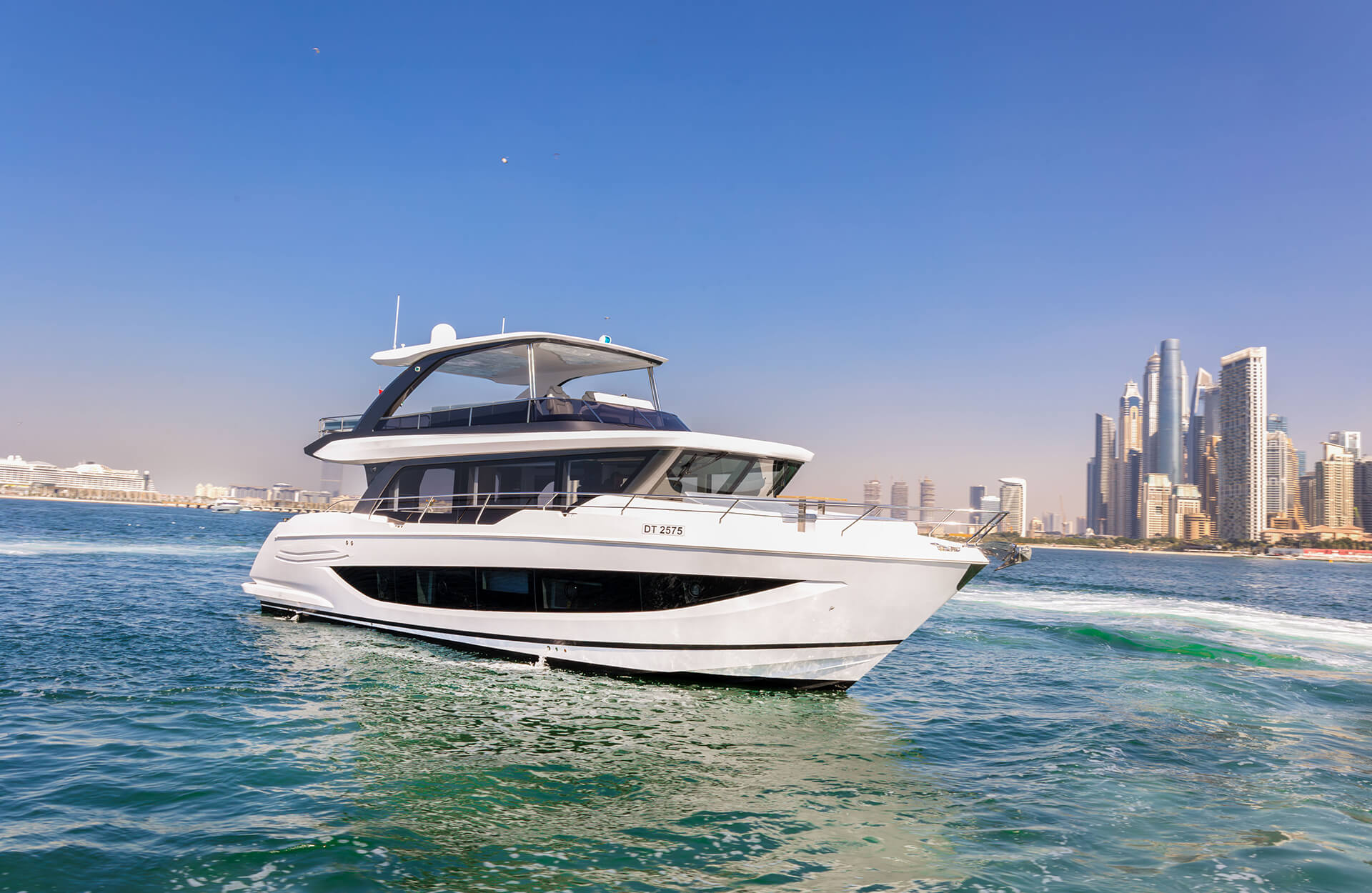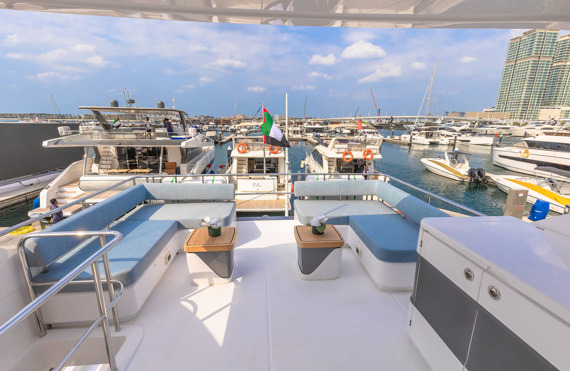 Charter Amie, a premium 63‑ft yacht in Dubai, ideal for intimate luxury cruises. Accommodating up to 25 guests, Amie features a stylish bar area, expansive deck space, and optional water slide for added fun. Perfect for private parties, sunset cruises, or chic getaways - Amie offers an unforgettable Dubai yacht rental experience.