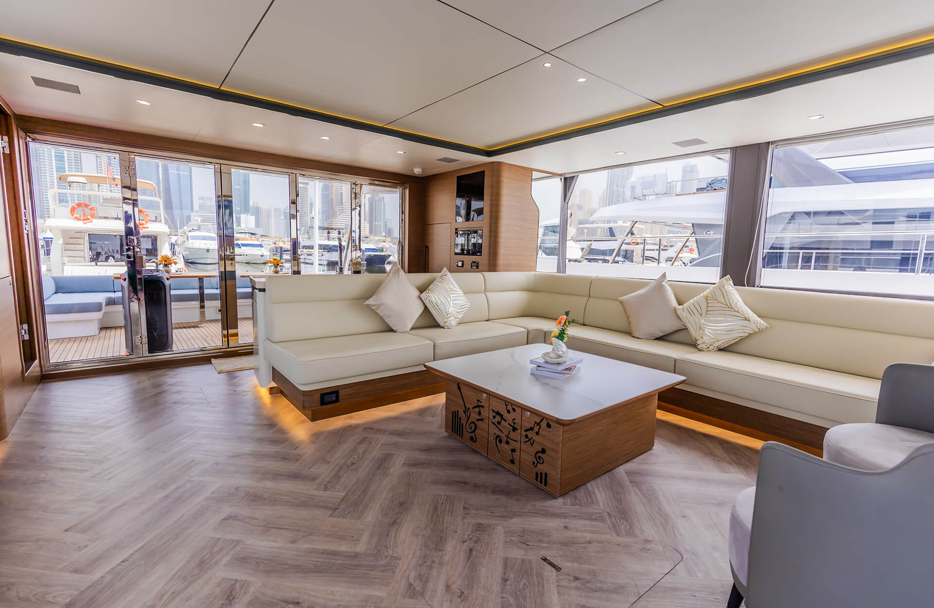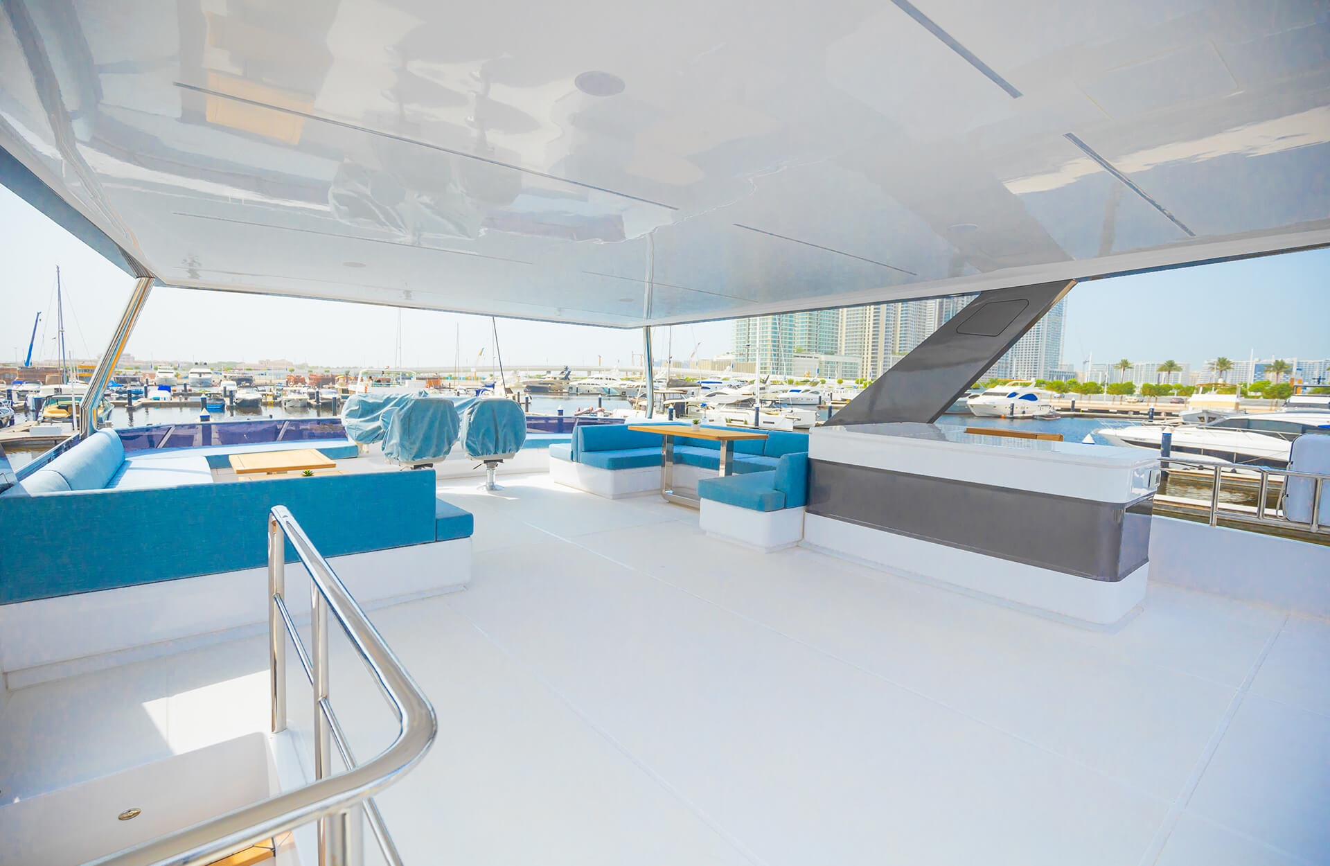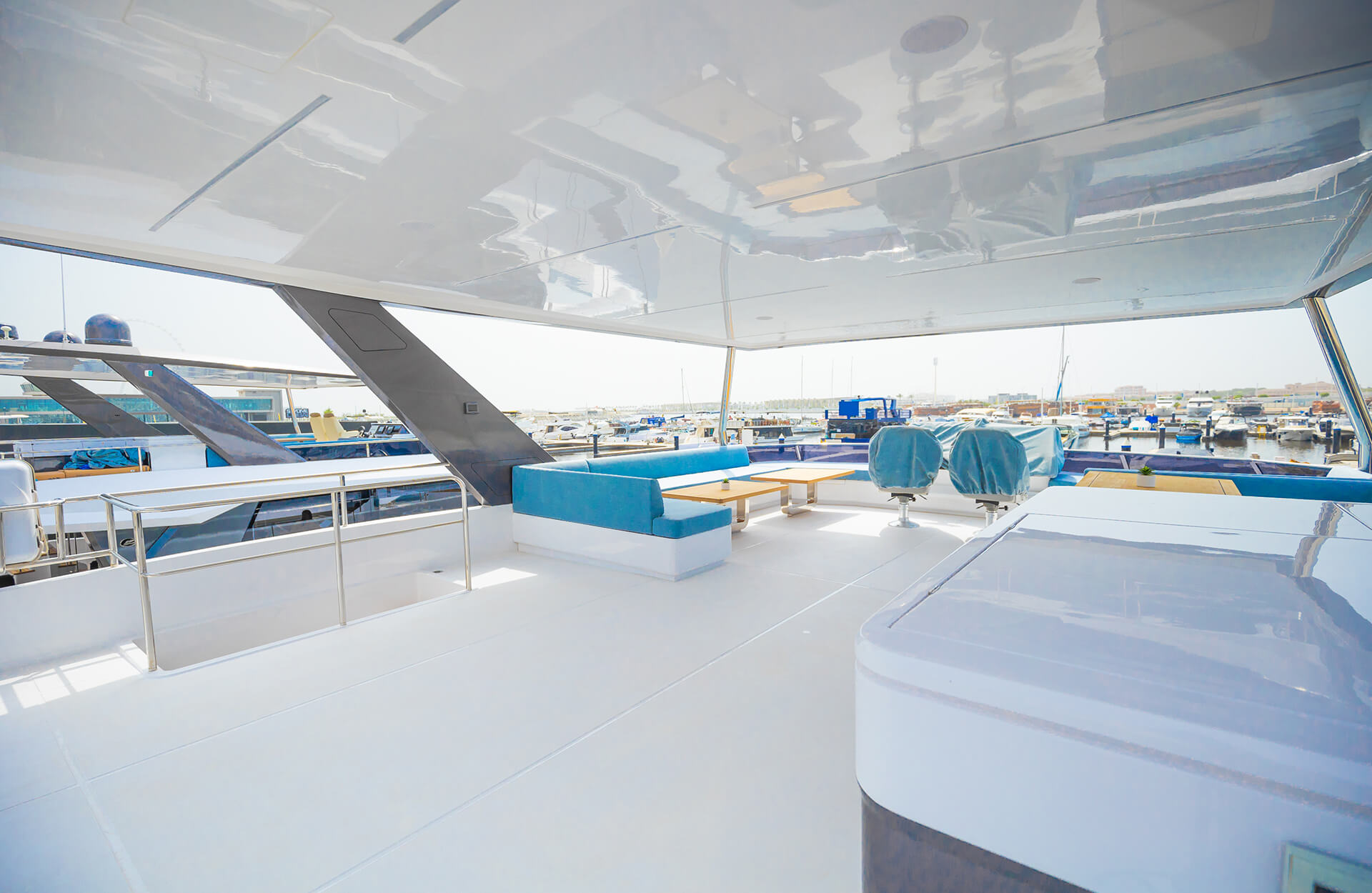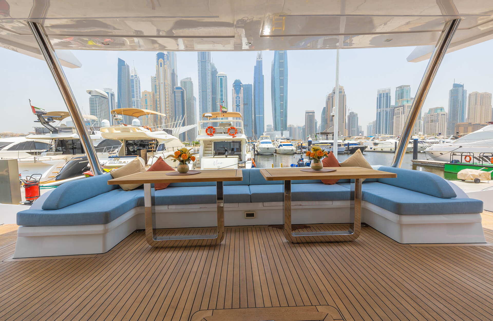 Charter Aquila Cat, a premium 60‑ft catamaran yacht in Dubai, perfect for groups up to 40 guests. With a bar area, expansive deck space, and the stability of a catamaran, it’s ideal for parties, corporate events, or leisurely cruises. Enjoy a unique Dubai yacht rental experience - relaxed, spacious, and unforgettable.