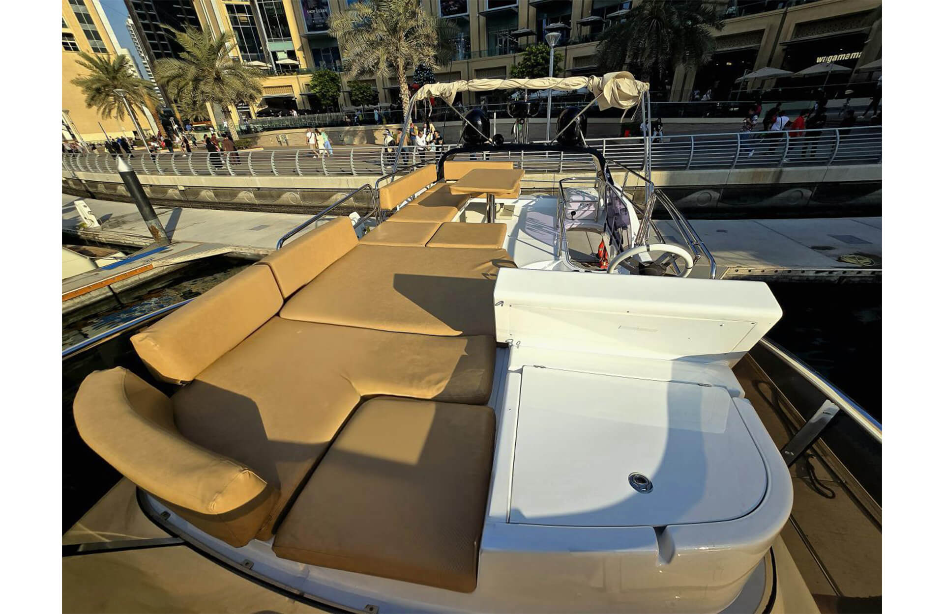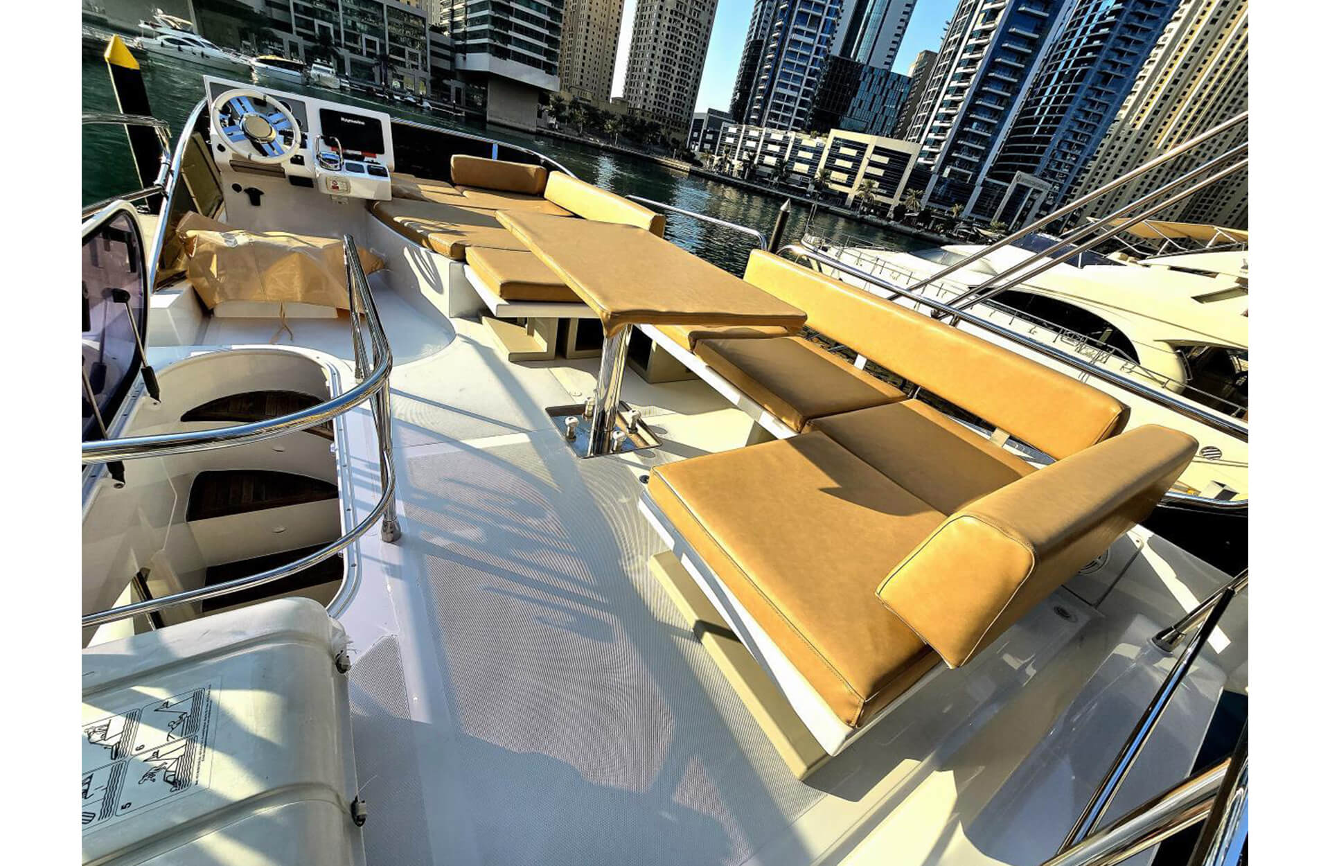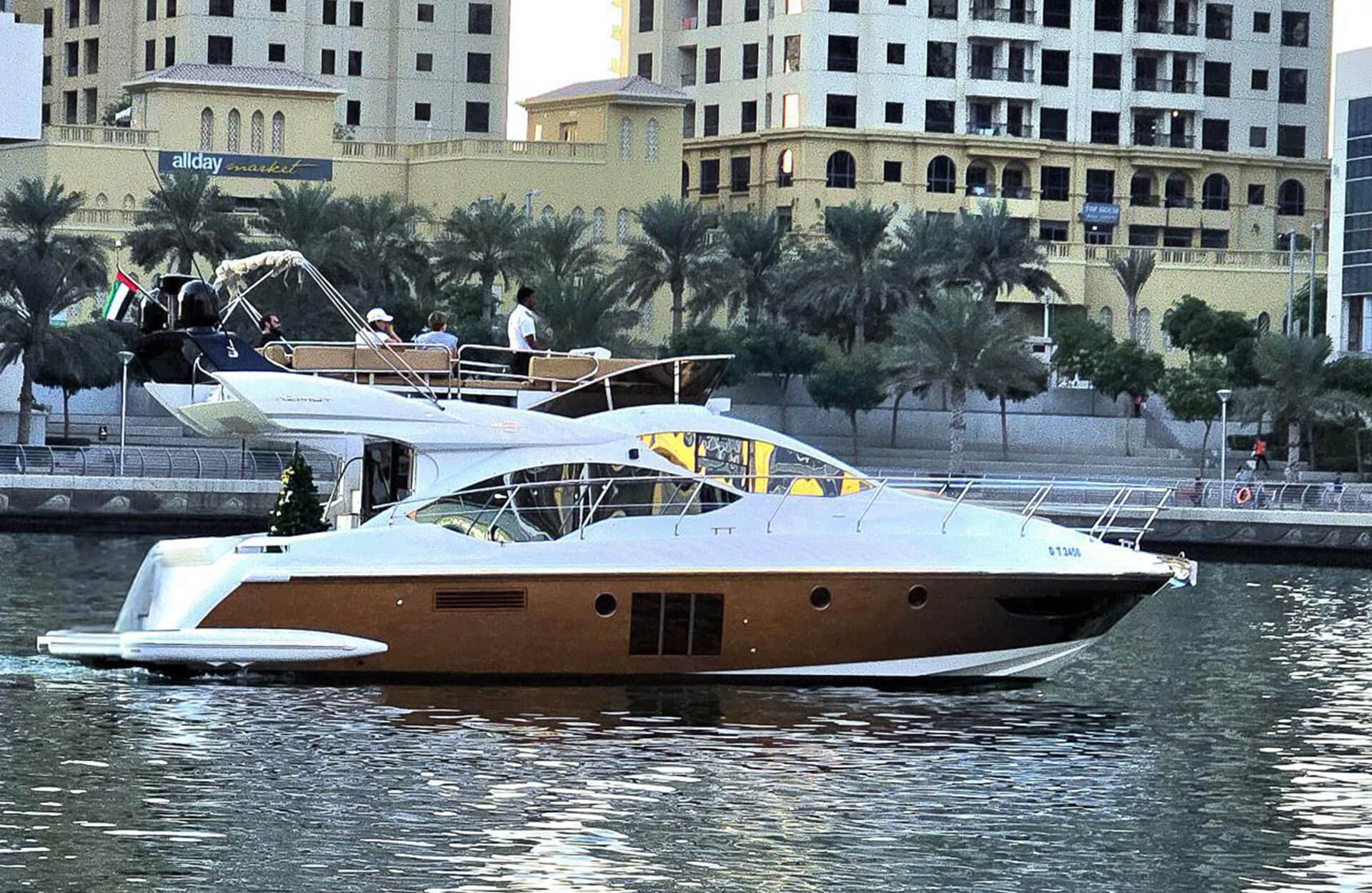 Rent the stylish "Asfar Azimut 45" yacht in Dubai, perfect for those seeking a comfortable and affordable yacht experience. With spacious decks and modern amenities, it’s ideal for smaller groups and casual outings. Enjoy cruising along Dubai’s beautiful coastline in style. Book through Dubai Yacht Rental today and make your day on the water unforgettable aboard the "Asfar Azimut 45" yacht.