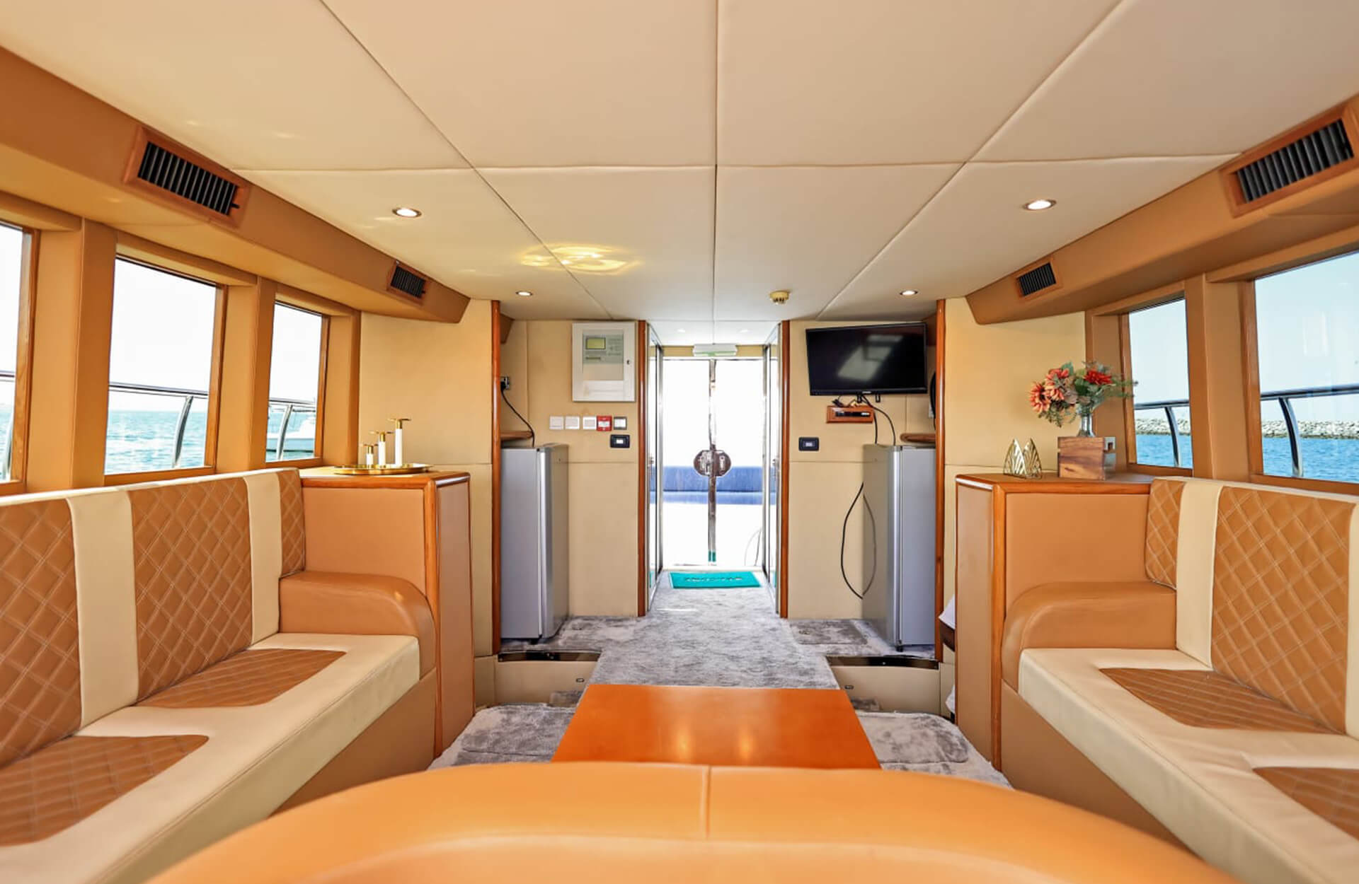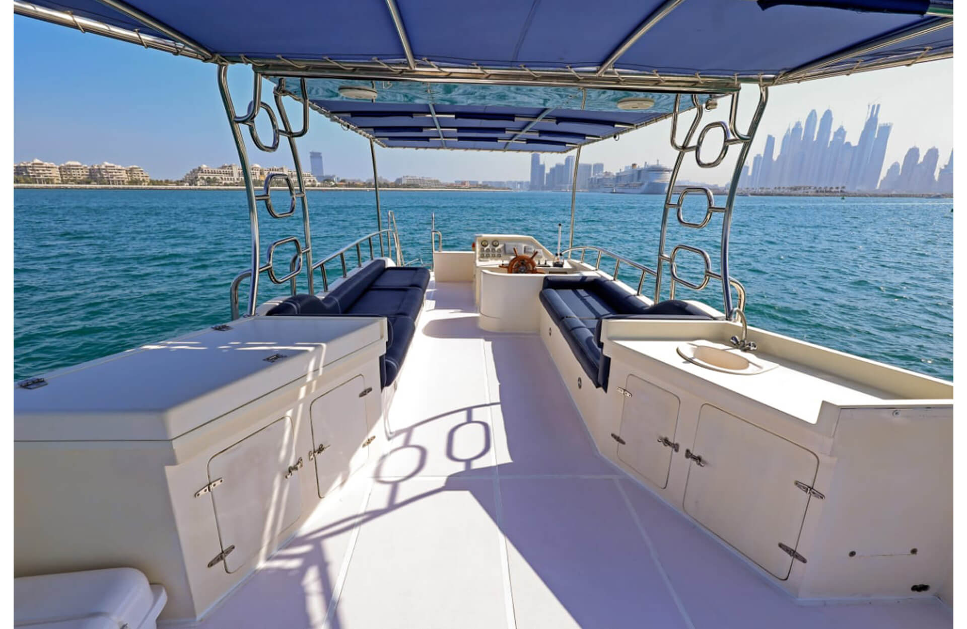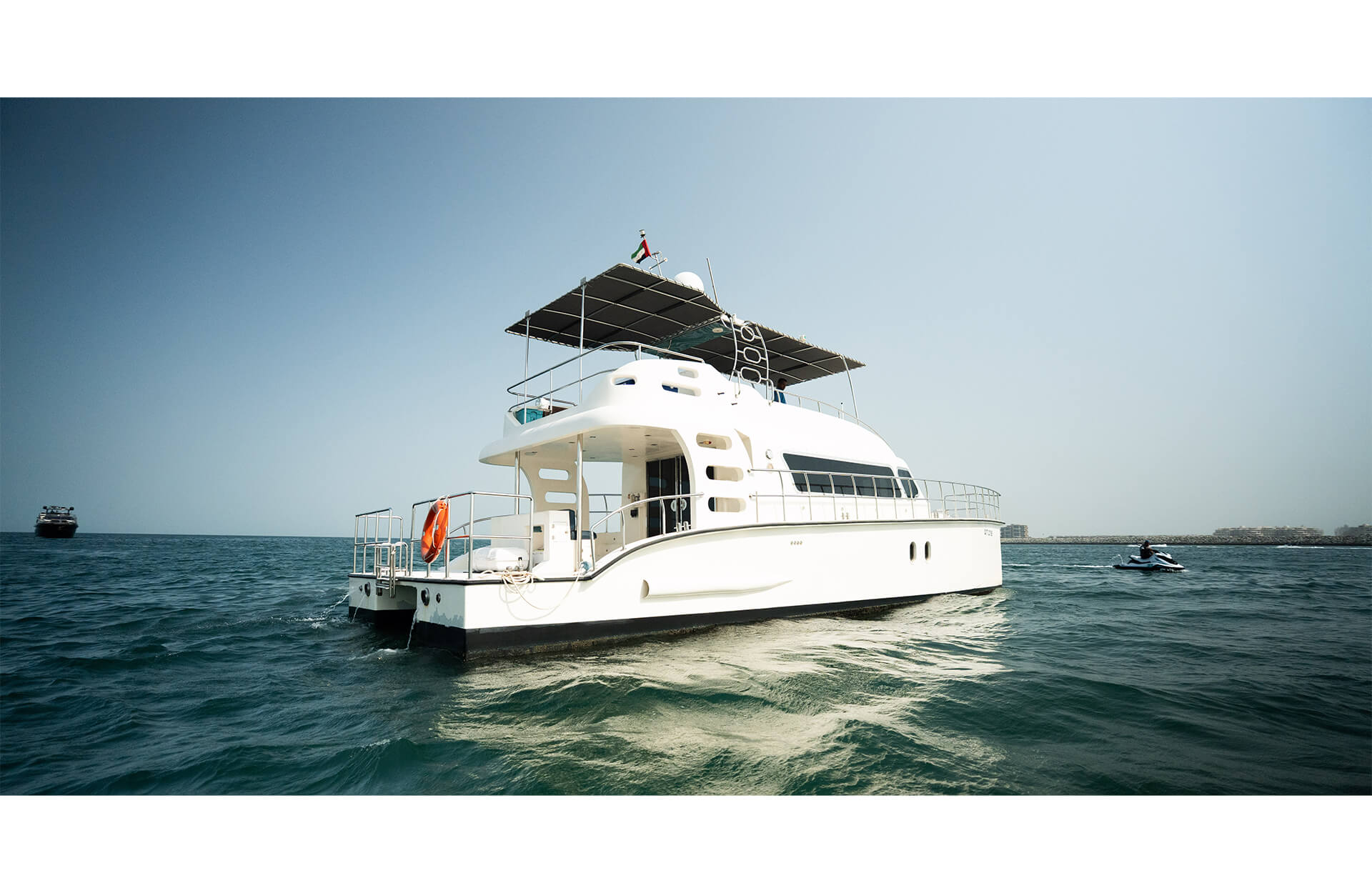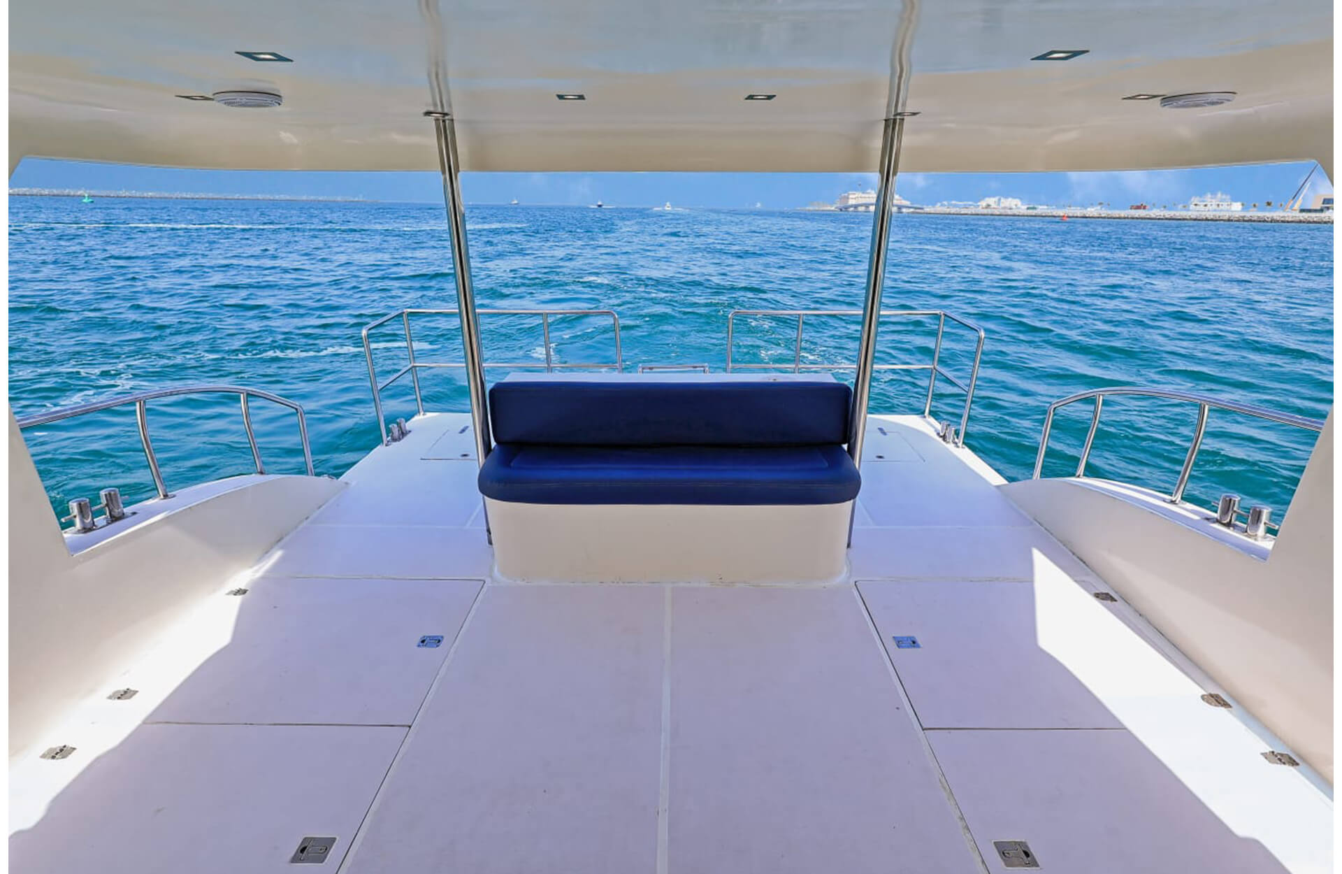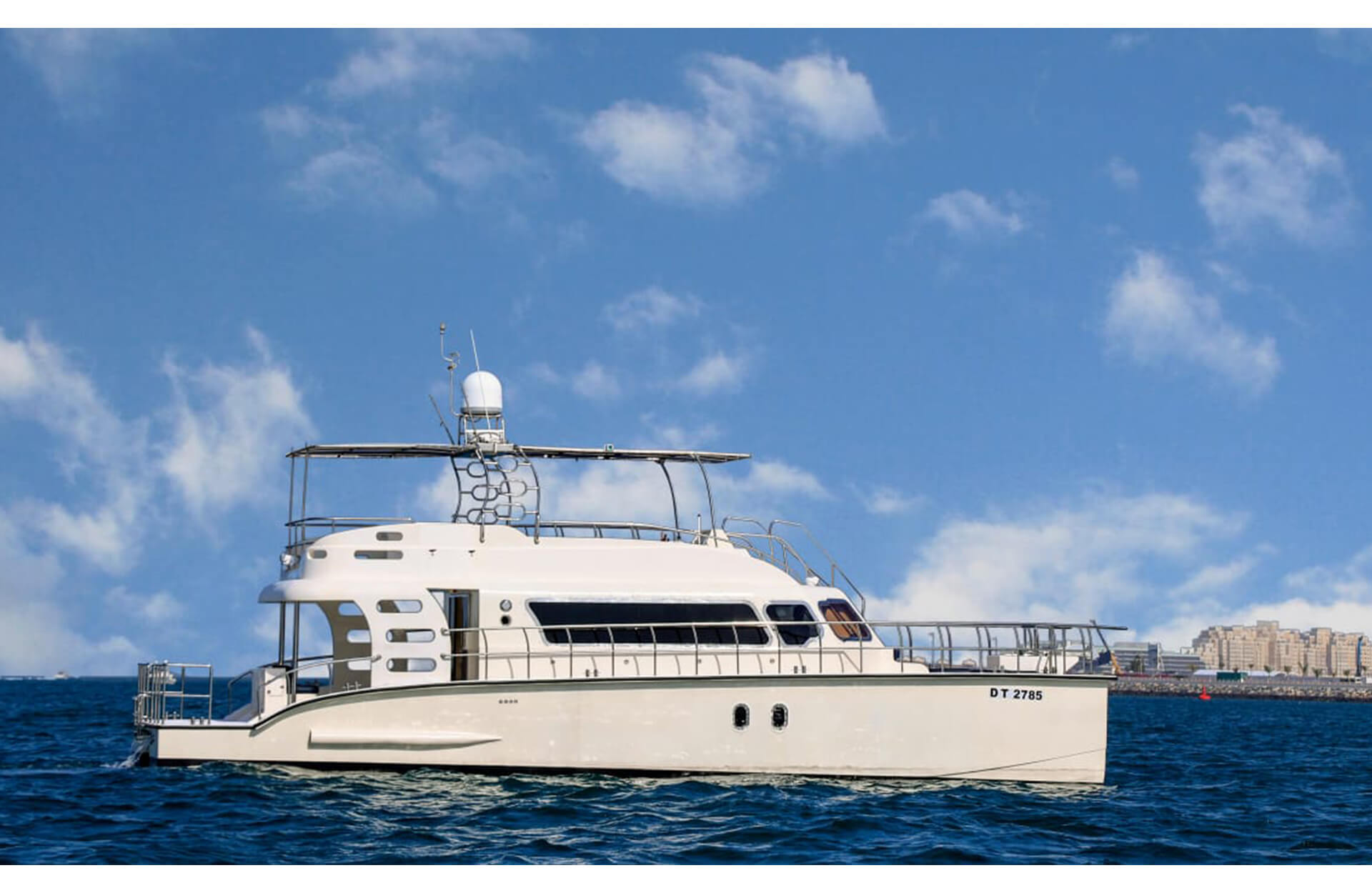 Rent the sleek "Catamaran 55 ft" yacht in Dubai, an affordable catamaran option with vast open deck space and seating for up to 15 guests. Ideal for relaxed day charters or small celebrations, this vessel offers comfort, style and ease for your group as you cruise the coastline. Book through Dubai Yacht Rental today and enjoy a memorable outing aboard the "Catamaran 55 ft" yacht.