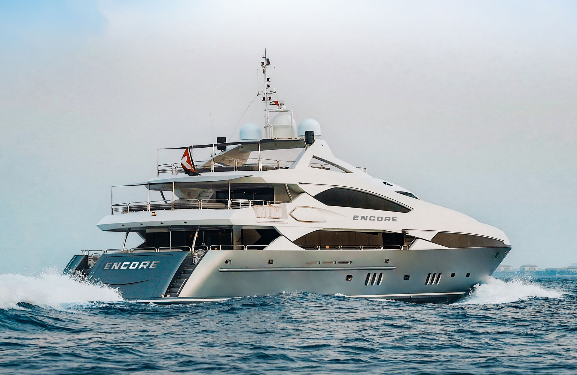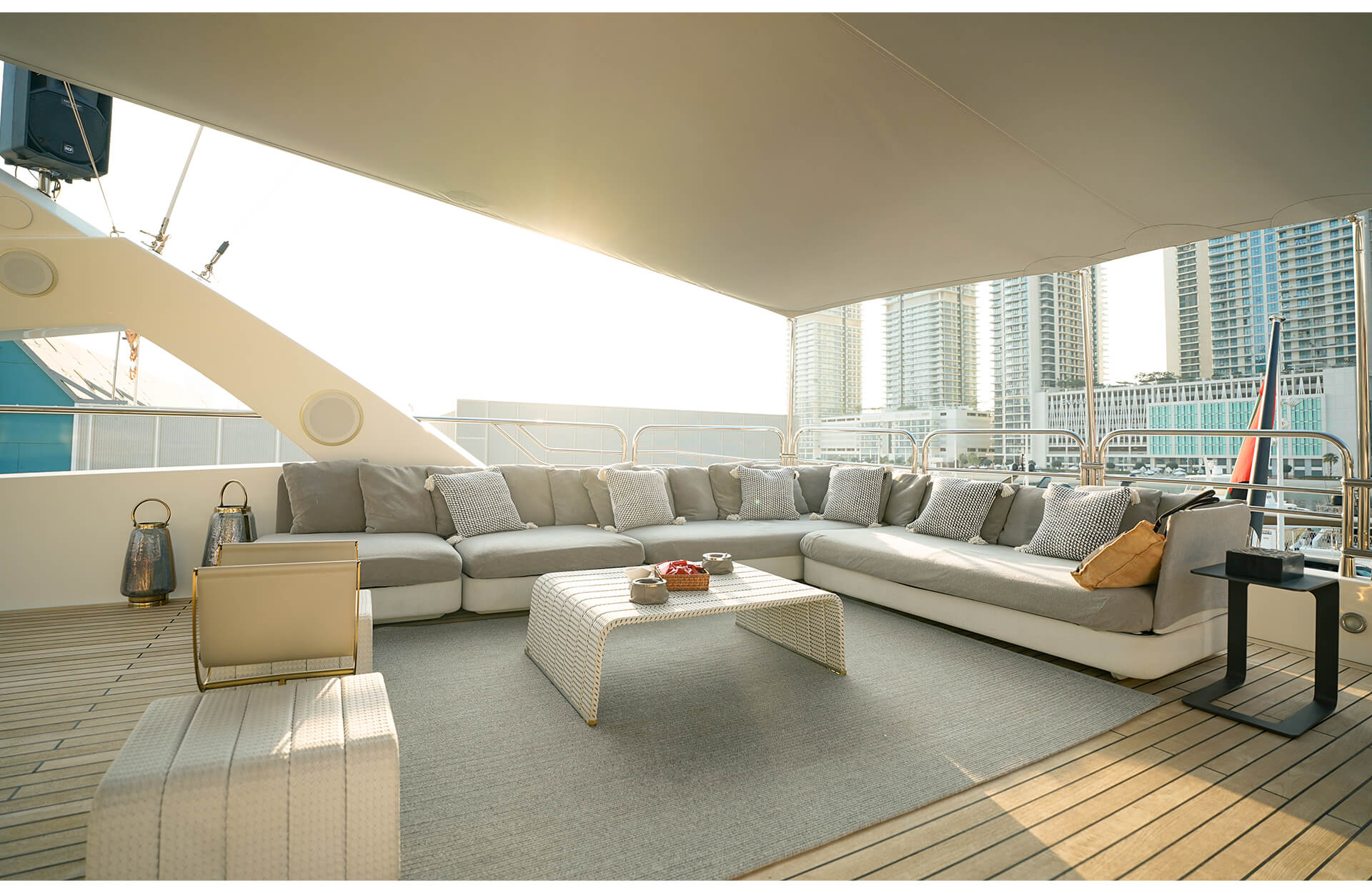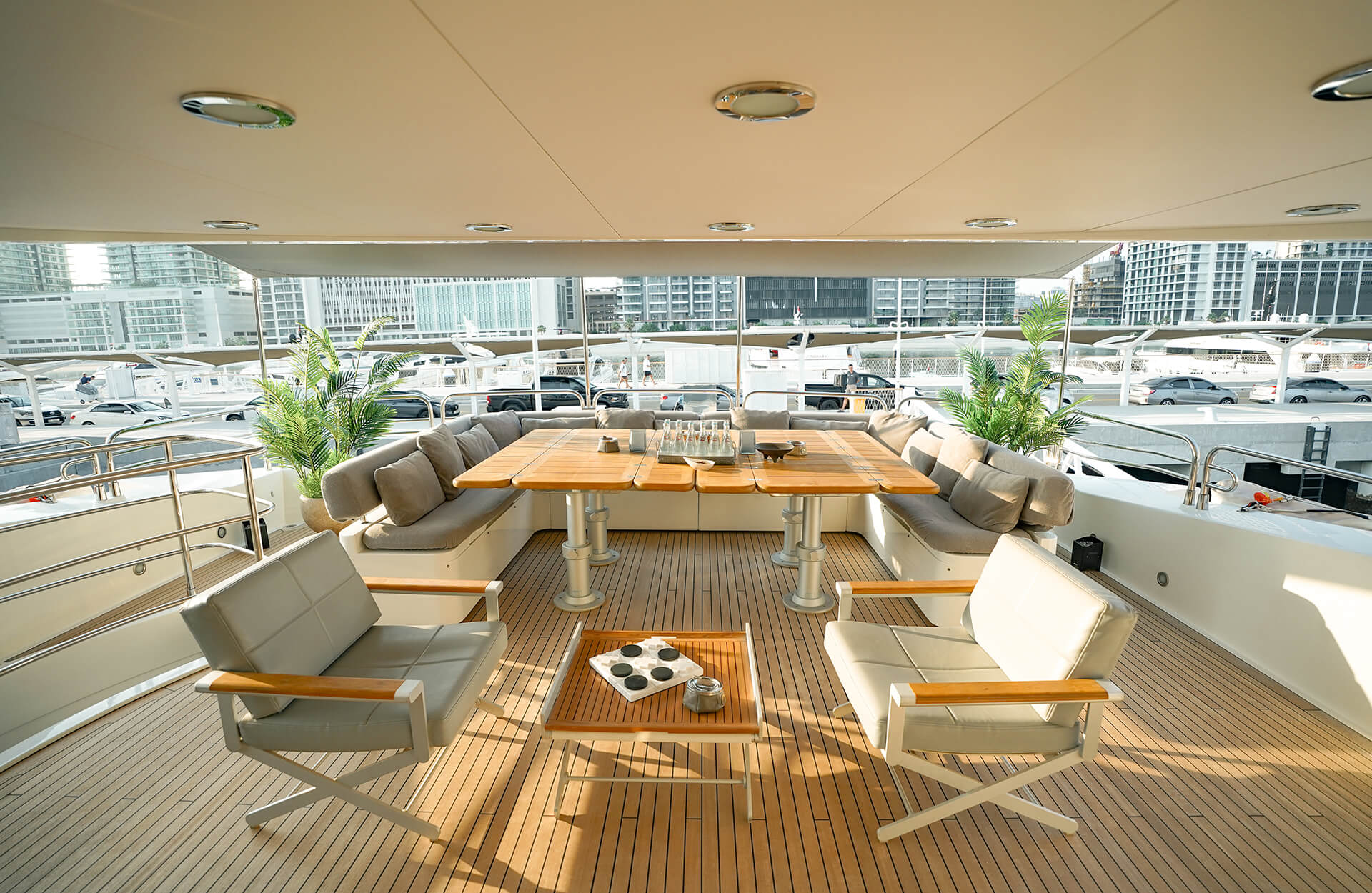 Charter Encore, a luxurious 3‑deck superyacht in Dubai accommodating up to 50 guests. Revel in elegance with a jacuzzi, spacious bar area, and generous deck space across all three levels. With an experienced crew managing every detail, Encore is perfect for sophisticated private cruises, parties, or corporate events. Experience the ultimate Dubai yacht rental - style, comfort, and unforgettable views