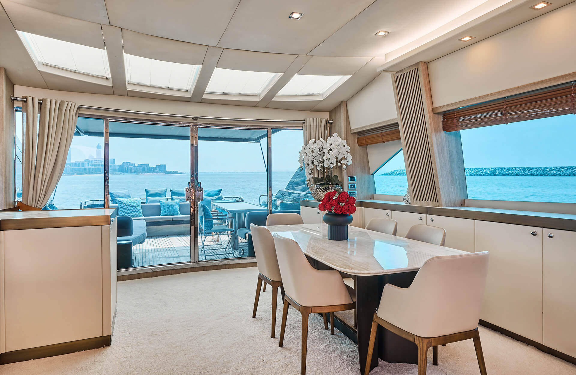 Rent the striking "Eye" yacht in Dubai, featuring a sleek black design and a luxurious jacuzzi for ultimate relaxation. This yacht combines modern elegance with premium amenities, offering a perfect setting for private events or leisurely cruises. Soak in the jacuzzi while enjoying the stunning views of Dubai. Book your Dubai yacht for rent today and experience luxury on the water with the Eye yacht.