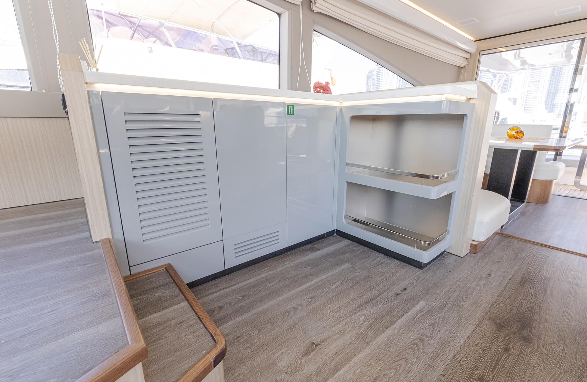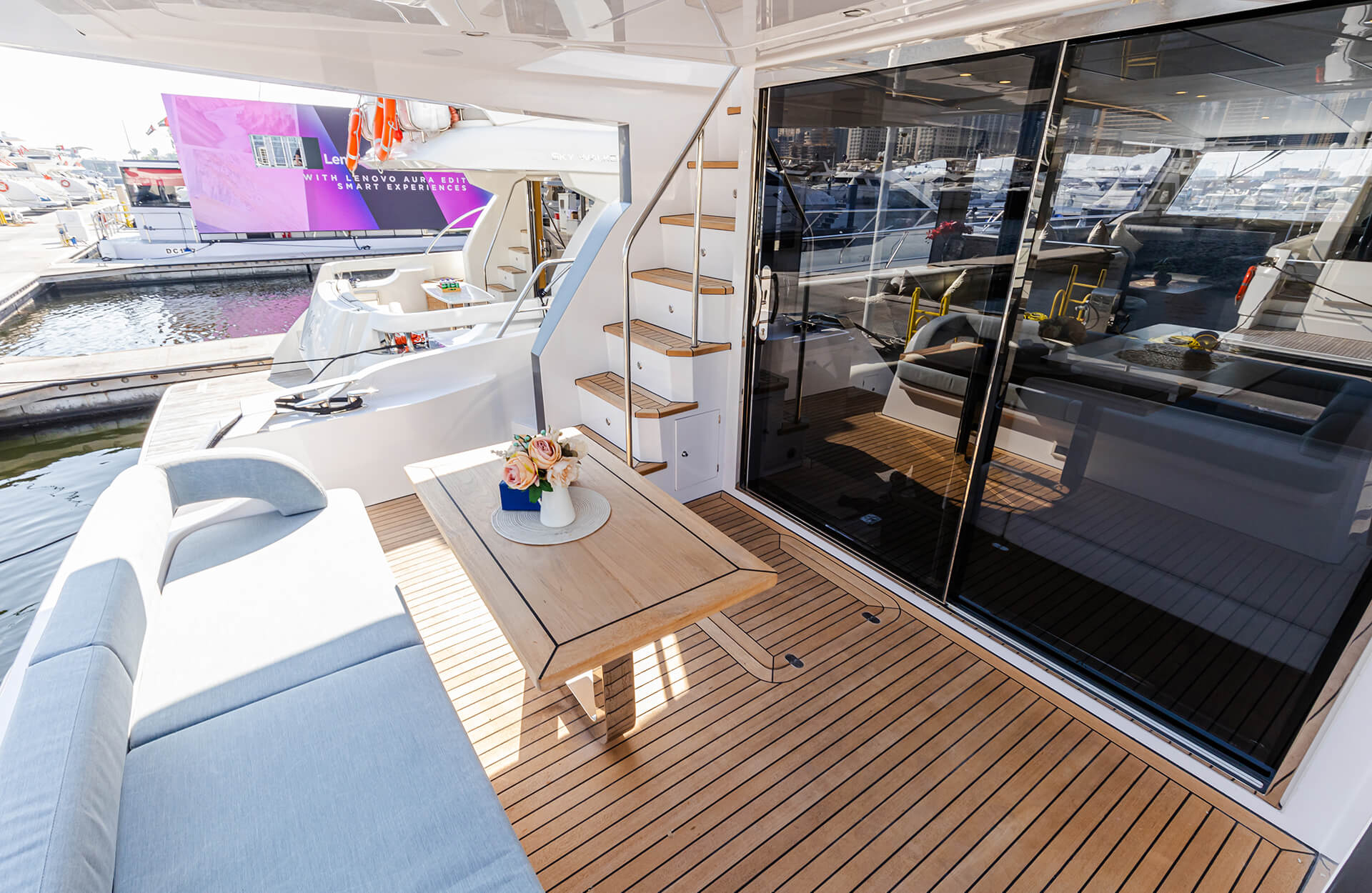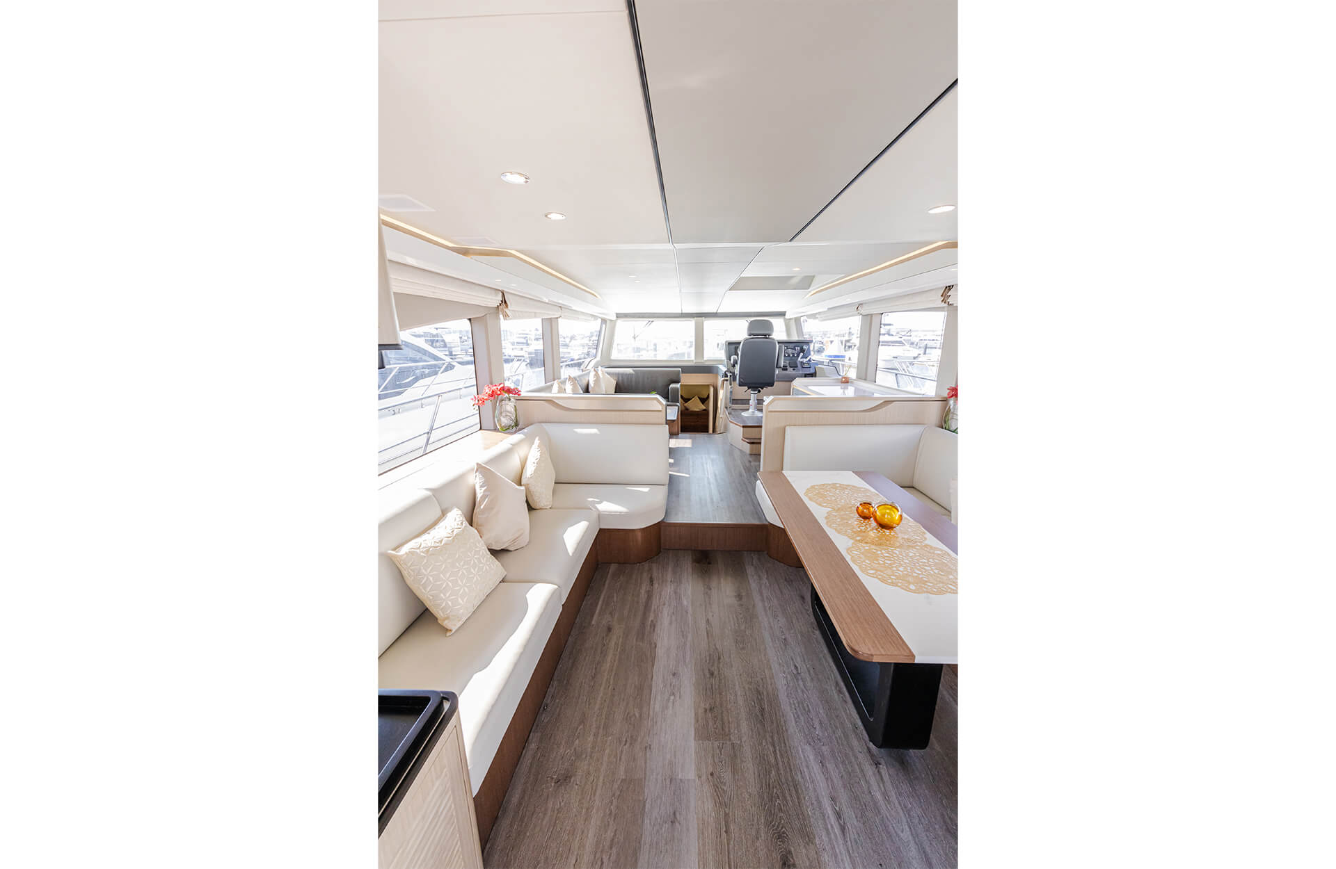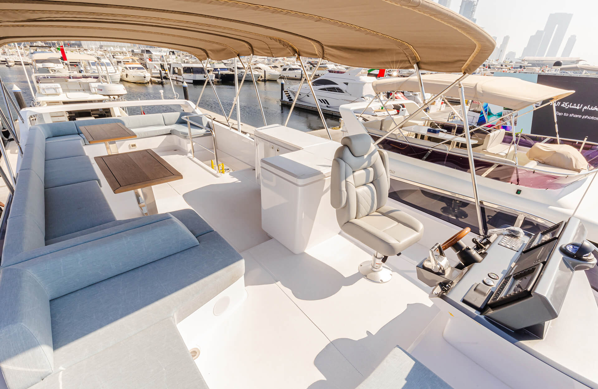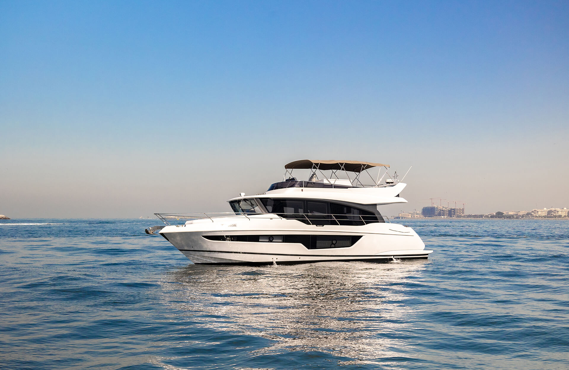 Charter Fly, a sleek 56‑ft premium yacht in Dubai, perfect for groups of up to 20 guests. With generous seating areas and elegant design, it’s ideal for relaxed private cruises, intimate parties, or sunset escapes. Experience refined comfort and style aboard this boutique yacht.