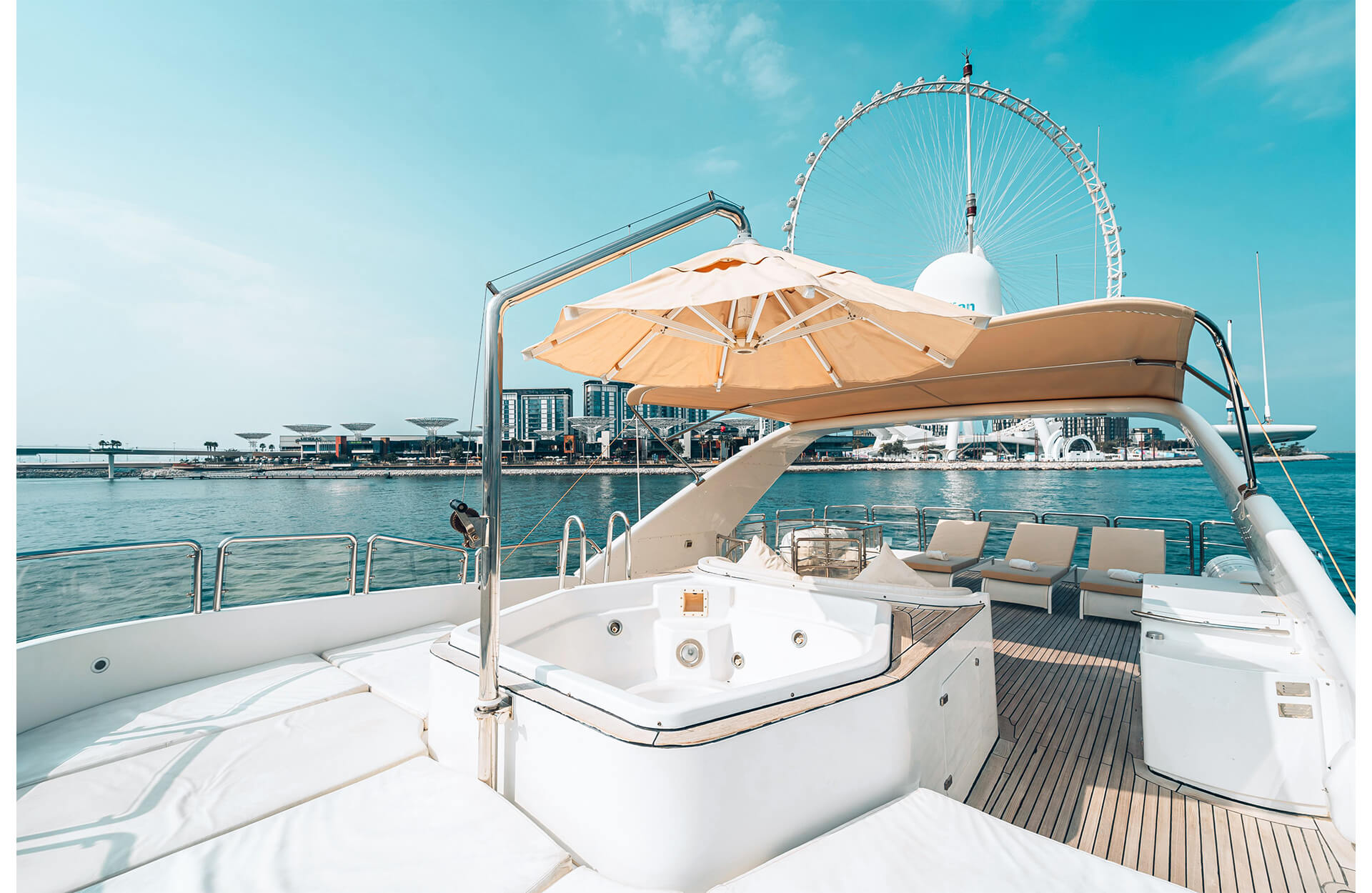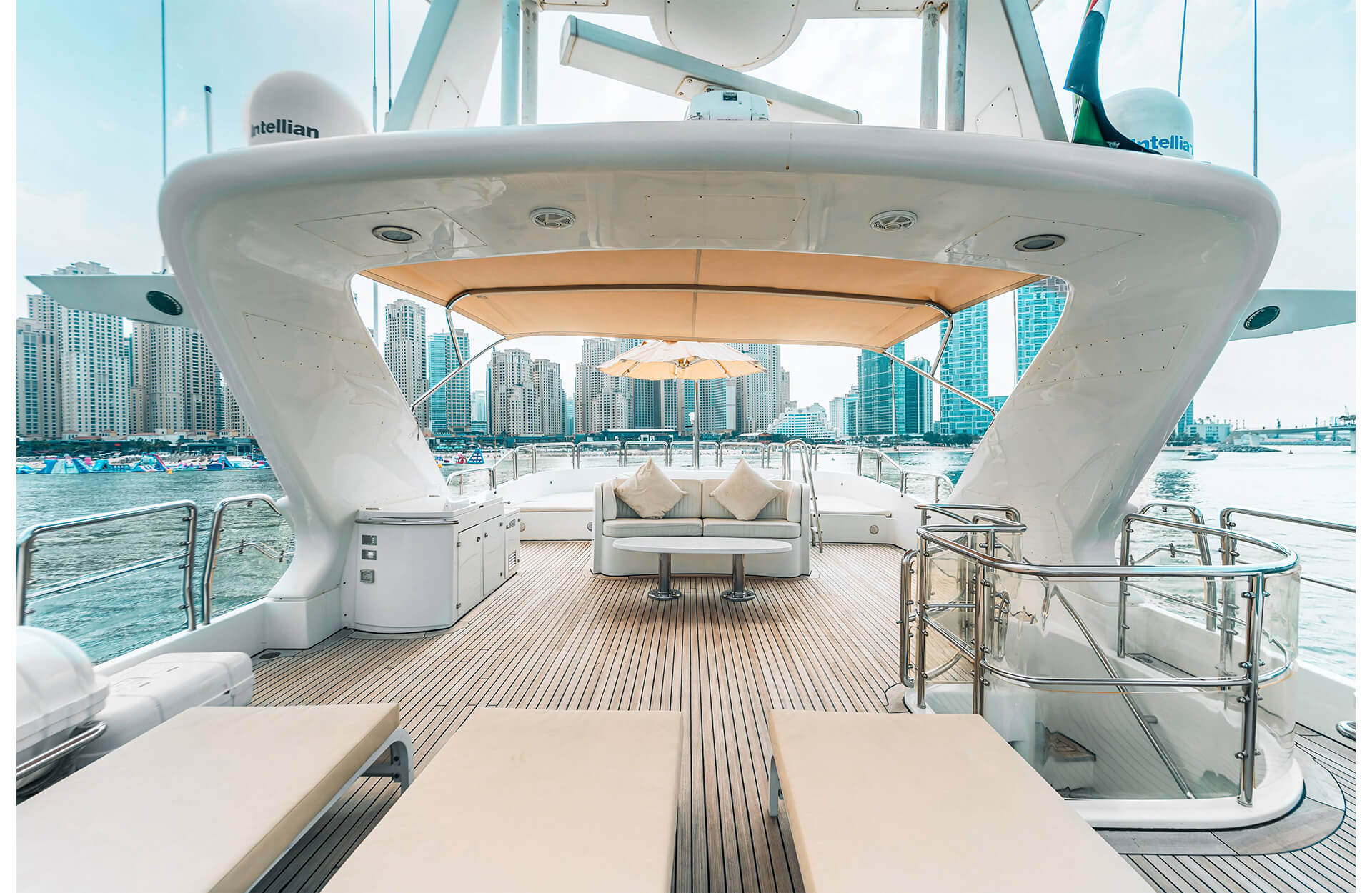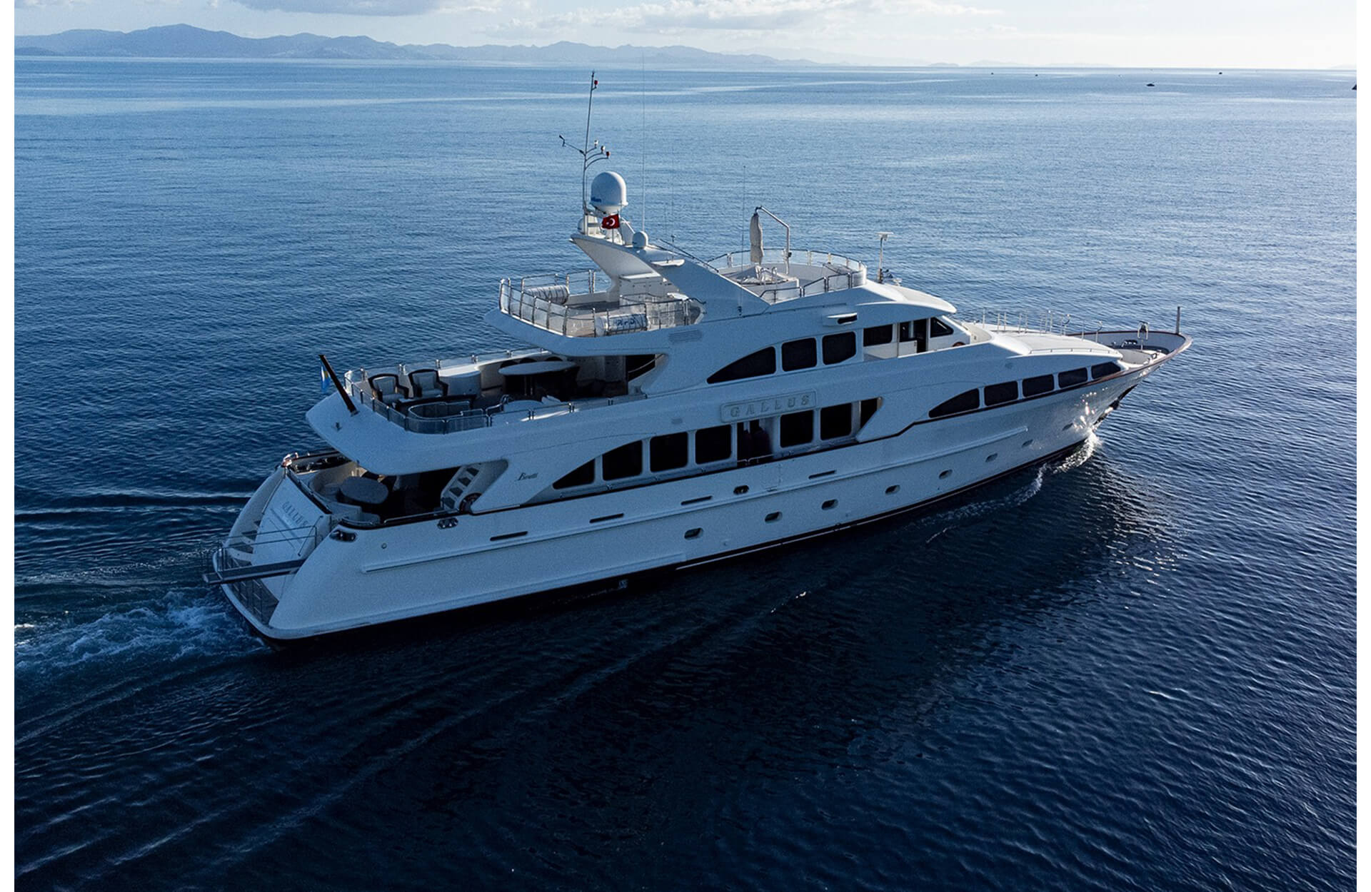 Rent the legendary "Gallus" yacht in Dubai, a luxury 115-ft motor yacht built by Benetti, ideal for a high-end charter. With a spacious Sun-deck layout, and a flybridge plus a Jacuzzi - it’s perfect for both intimate get-togethers and larger parties (day-cruise capacity up to 55 guests). Whether you want a relaxed cruise or a grand event, "Gallus" delivers comfort, style, and flexibility along Dubai’s stunning coastline. Book through Dubai Yacht Rental today and experience elite yachting aboard the "Gallus" yacht.