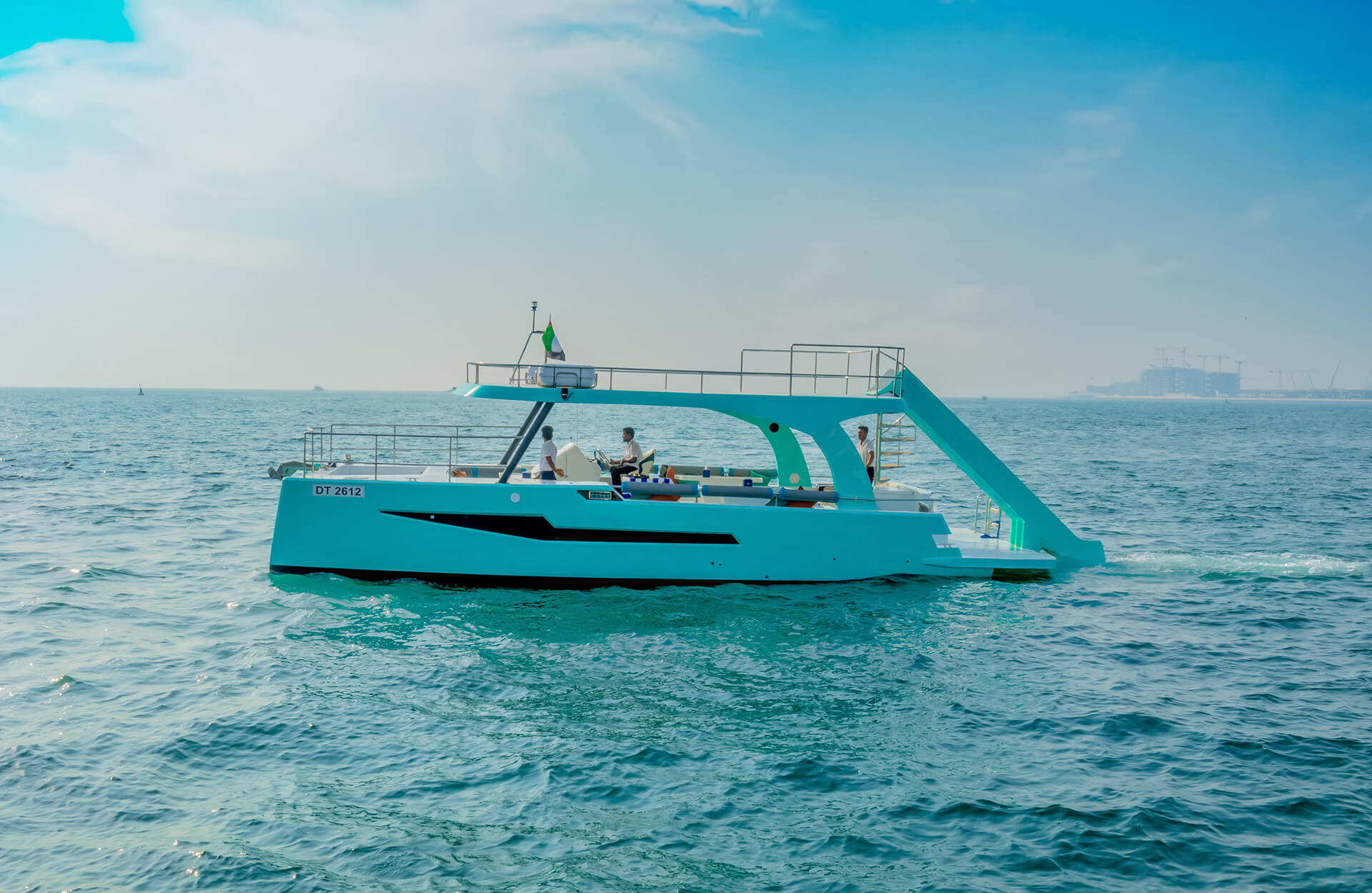 Charter Jump, a premium 56‑ft party yacht in Dubai, ideal for up to 12 guests. Featuring a built‑in slide, ample deck space, and room to mingle, it’s designed for fun, celebrations, or private cruising. Experience an exhilarating, intimate Dubai yacht rental with style and excitement.