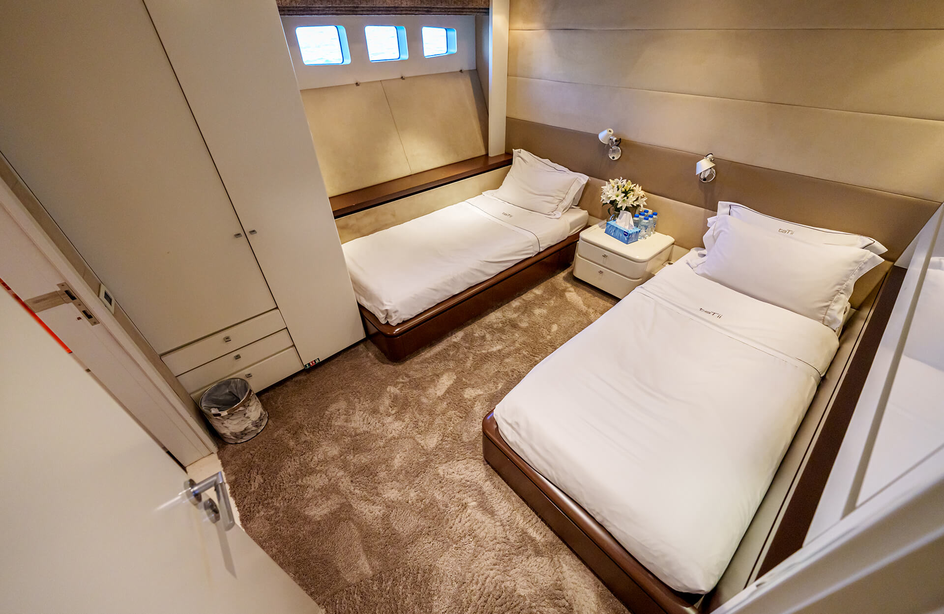 Step aboard the magnificent "Khalilii" yacht, available for rent in Dubai. This luxurious yacht combines elegance with exceptional comfort, offering an ideal setting for both intimate gatherings and grand events. With spacious decks, stylish interiors, and top-tier amenities, "Khalilii" provides the perfect backdrop for an unforgettable yacht rental experience. Whether you're looking for a peaceful retreat or a special celebration, this yacht guarantees an exclusive and memorable experience.