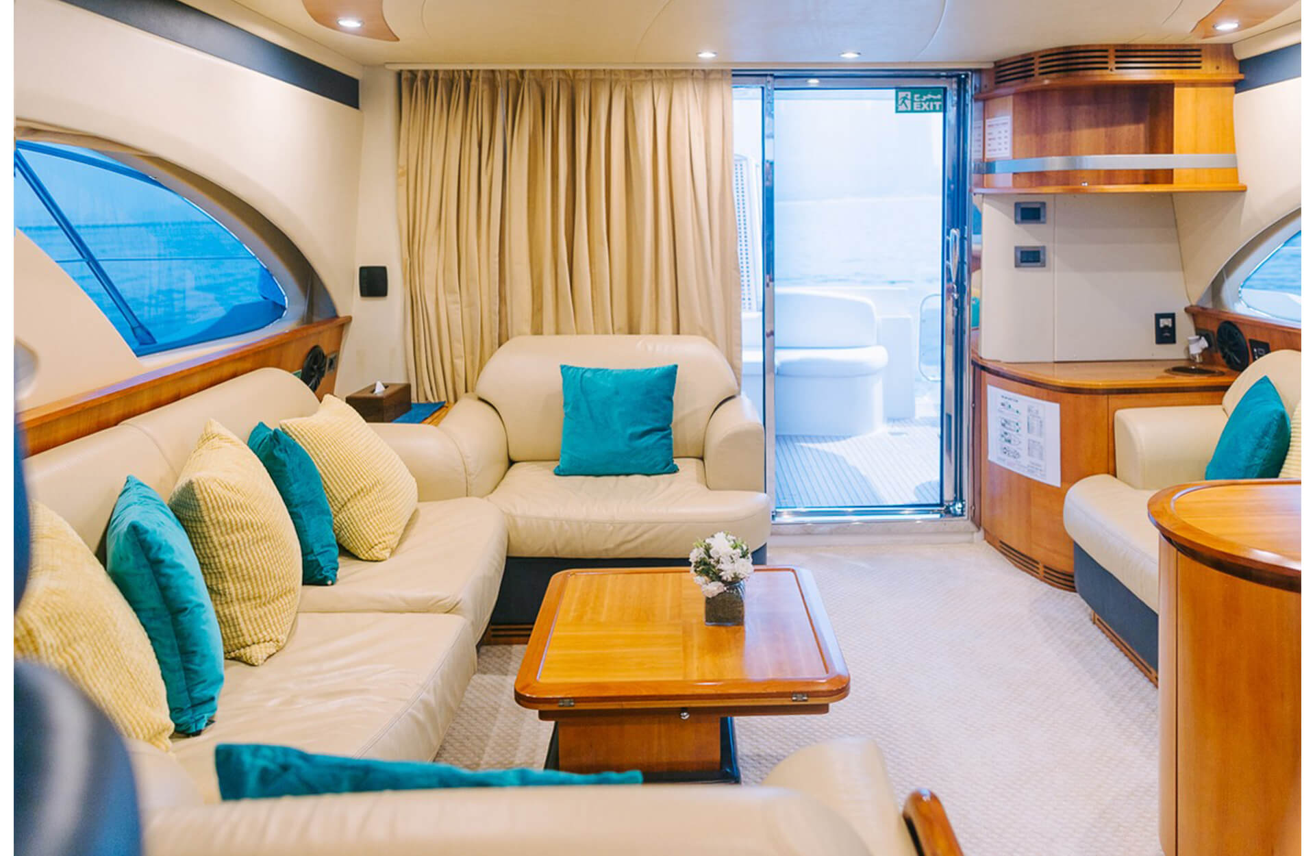 Rent the "Monica" yacht in Dubai, an affordable 50-ft Azimut built to host up to 15 guests in comfortable style. With a flybridge, sun-lounging bow area, and elegant interiors featuring 2 cabins and 2 baths, it’s ideal for intimate day cruises or relaxed celebrations. Enjoy cruising Dubai’s coastline with family or friends. Book through Dubai Yacht Rental today and experience great value aboard the "Monica" yacht.