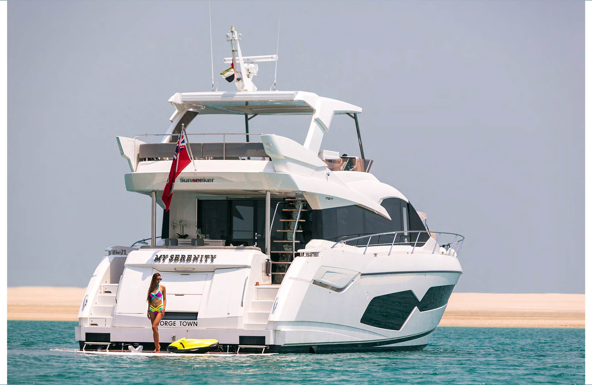 Rent the exquisite "My Serenity" yacht in Dubai, a luxury vessel from the renowned Sunseeker brand, designed for up to 20 guests and featuring a large upper deck perfect for lounging or entertaining. Enjoy panoramic views of Dubai’s coastline while soaking in the relaxed ambiance and premium amenities. Book through Dubai Yacht Rental today and treat yourself to a truly elevated sea experience aboard the "My Serenity" yacht.