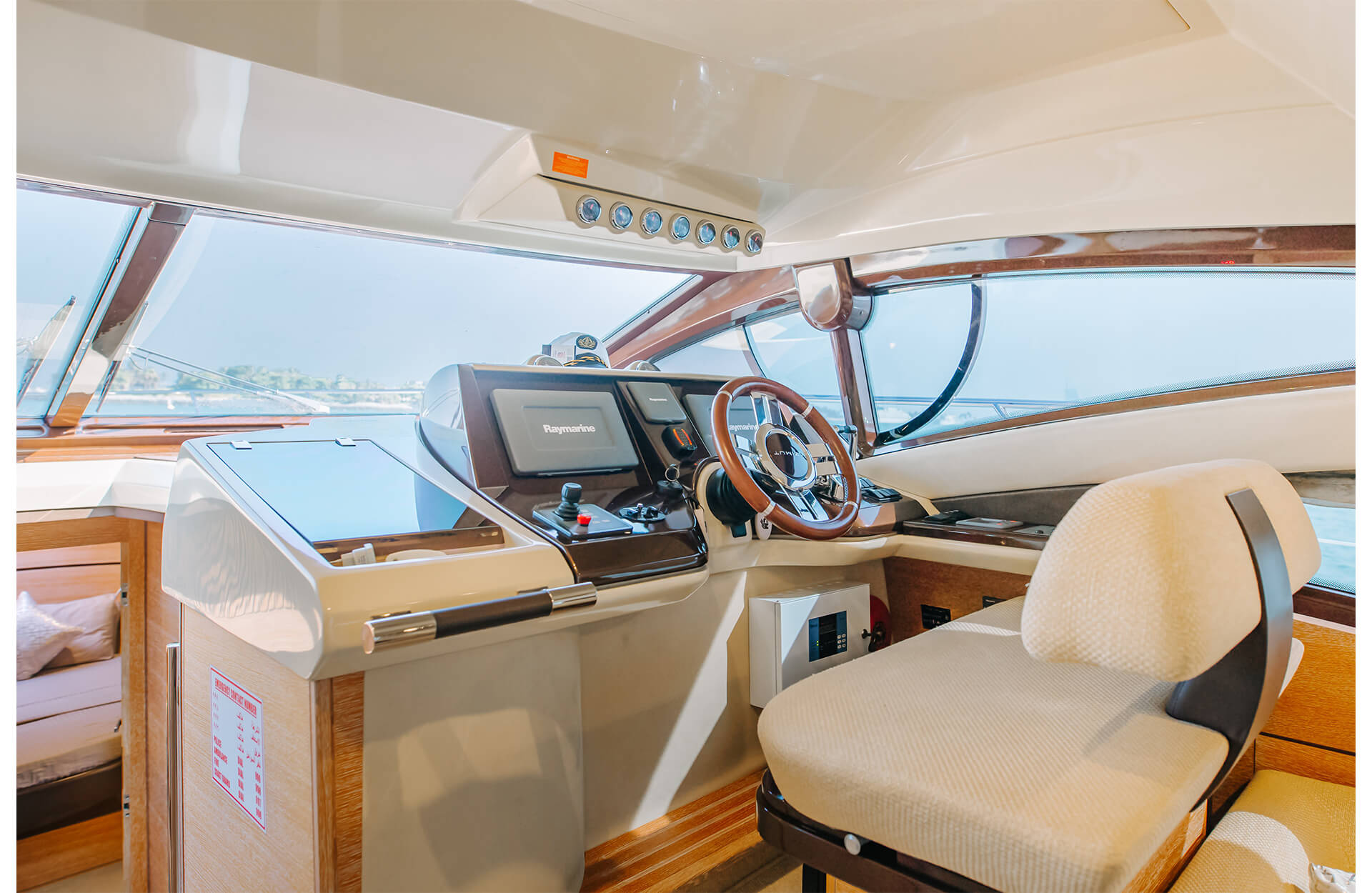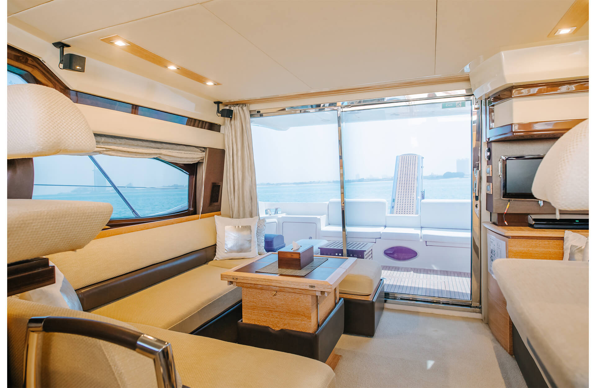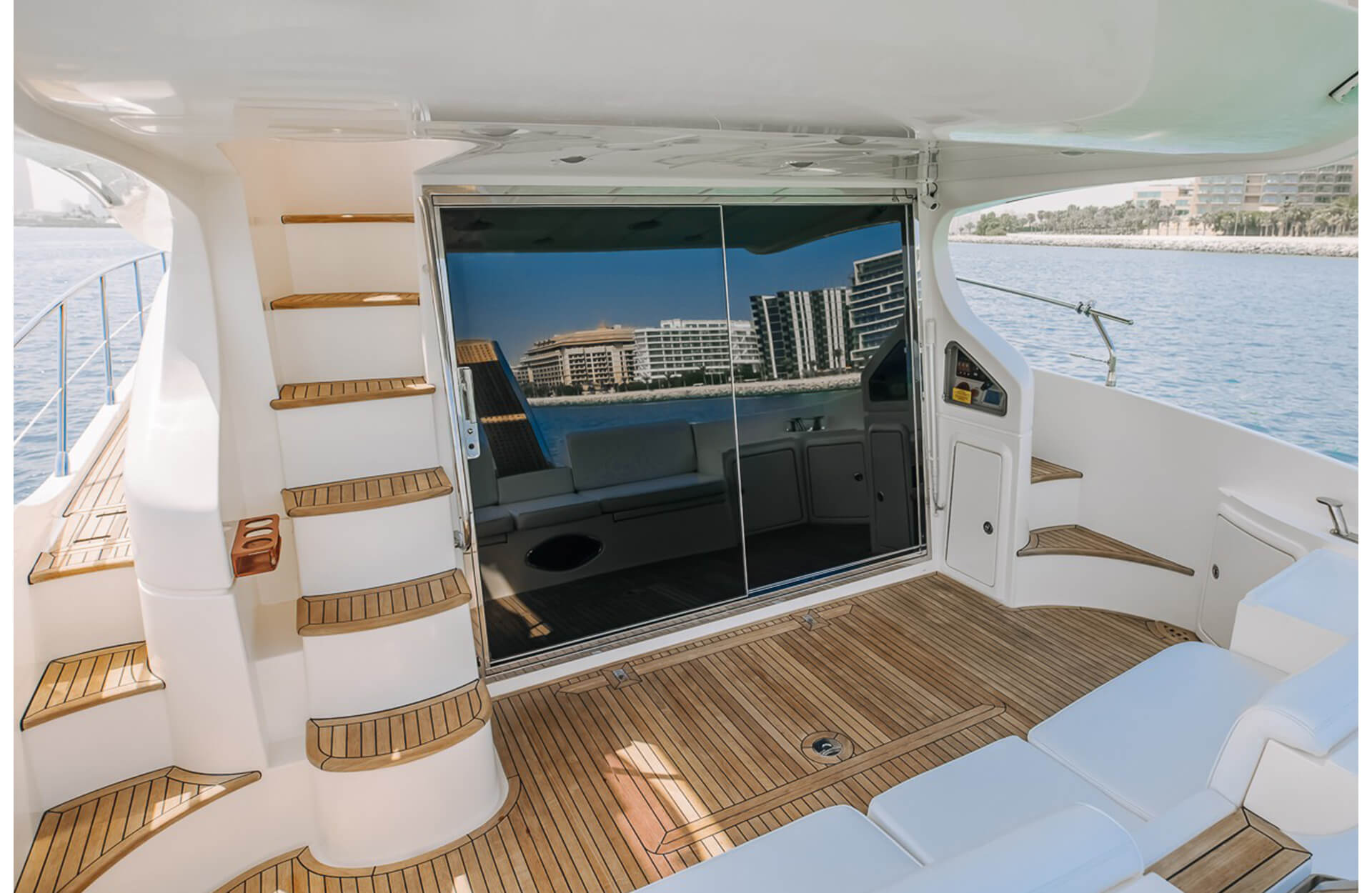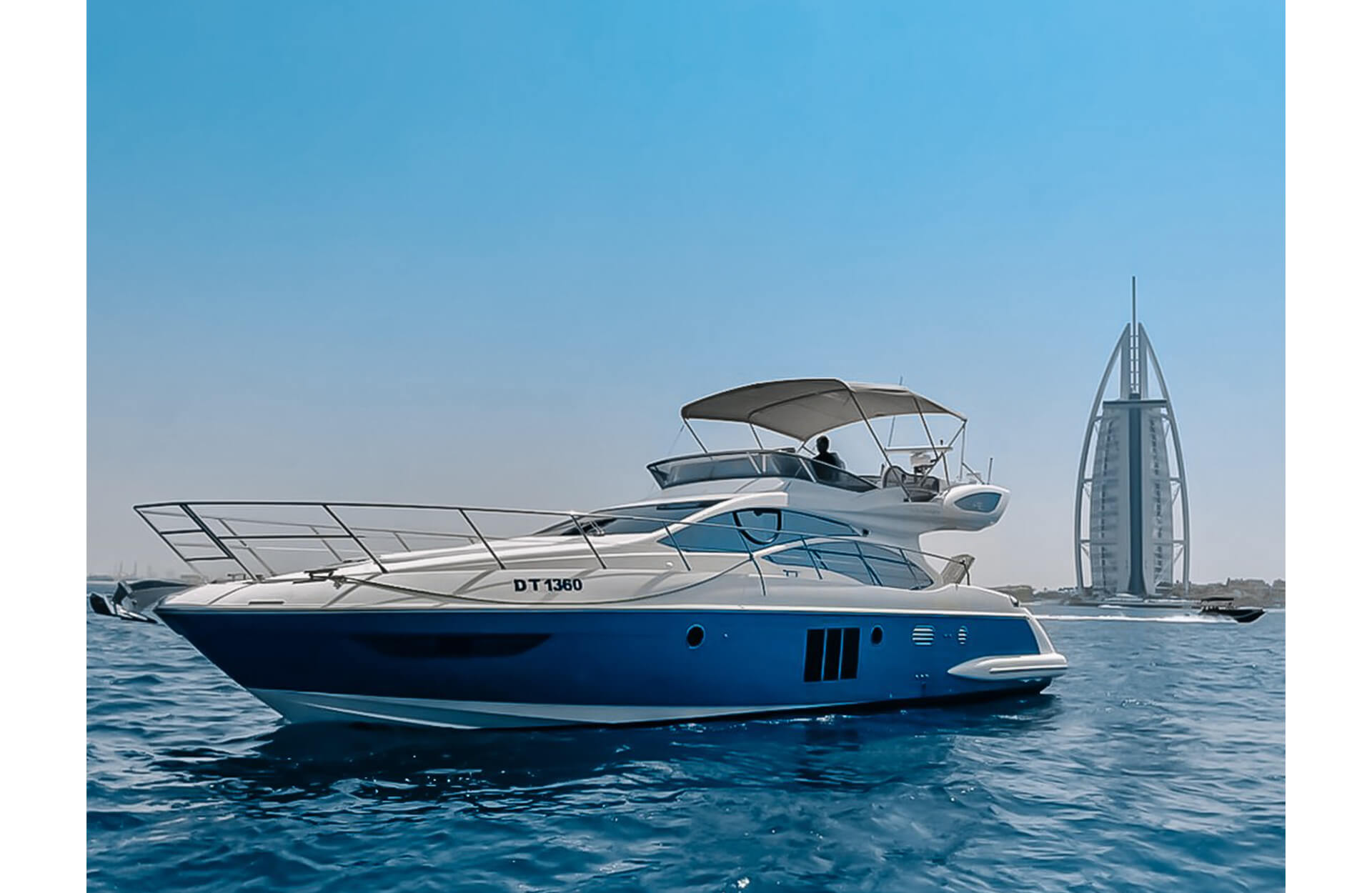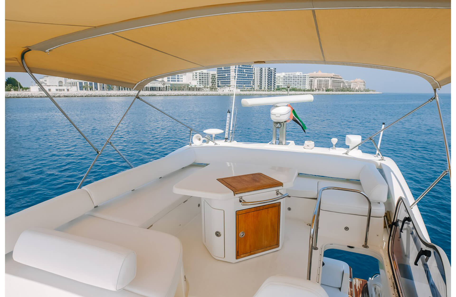 Rent the impressive "No Regrets" yacht in Dubai, an affordable 48-ft vessel accommodating up to 12 guests with modern styling and Italian craftsmanship by Azimut. Recently refitted, it features comfortable cabin space and a laid-back open deck - ideal for group outings, casual celebrations, or a day on the water. Glide along Dubai’s coastline in comfort and style. Book through Dubai Yacht Rental today and enjoy the "No Regrets" yacht.