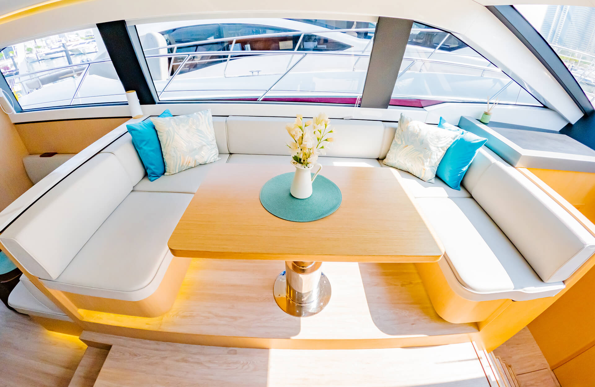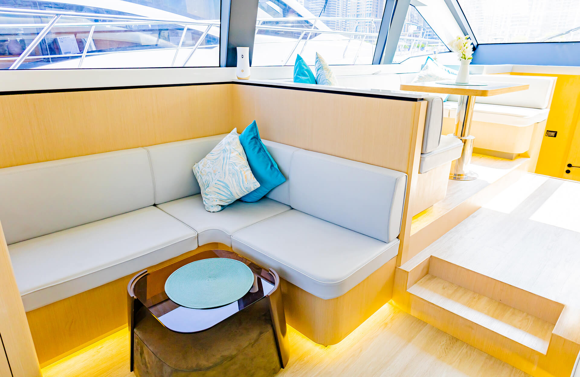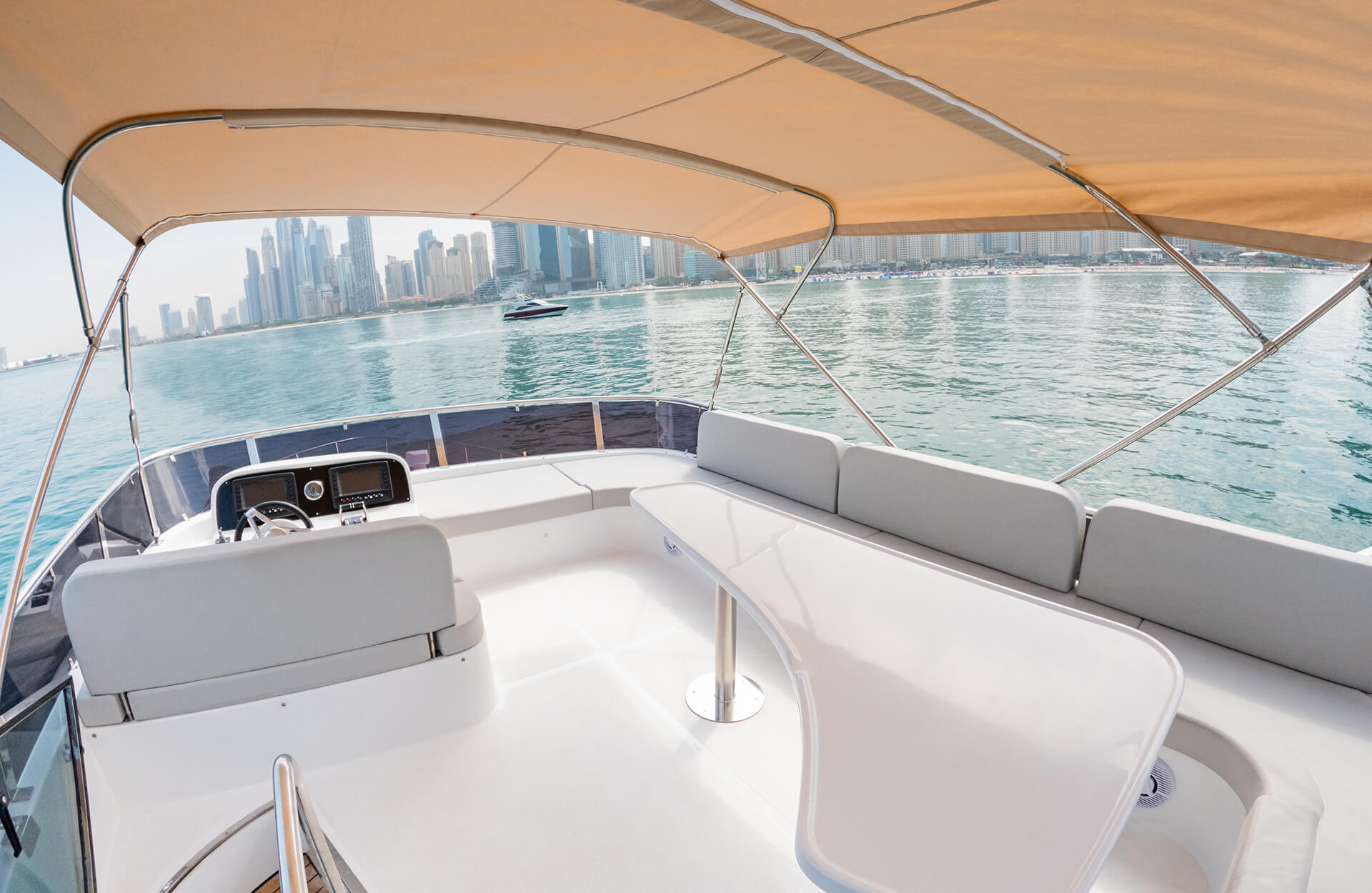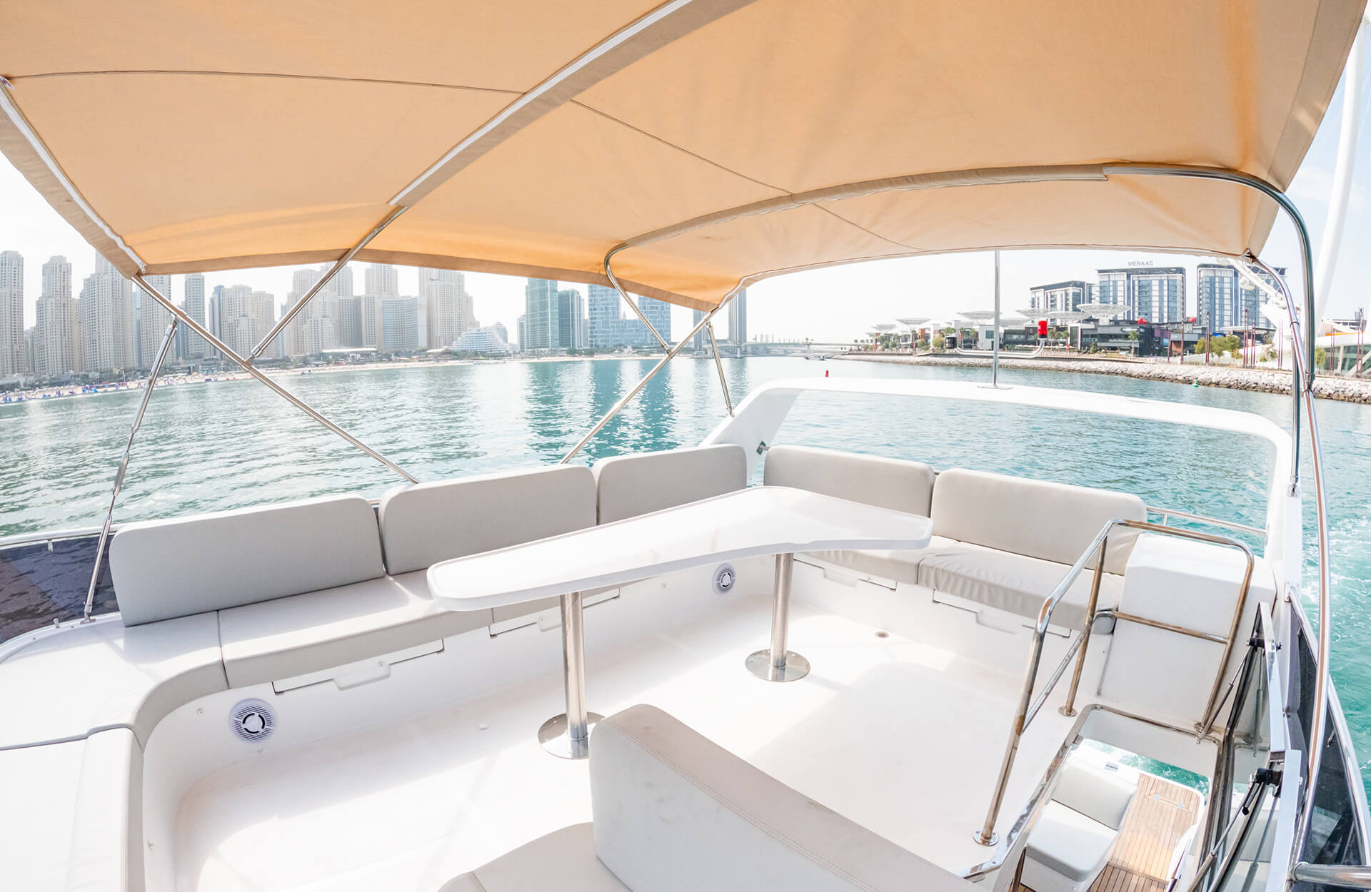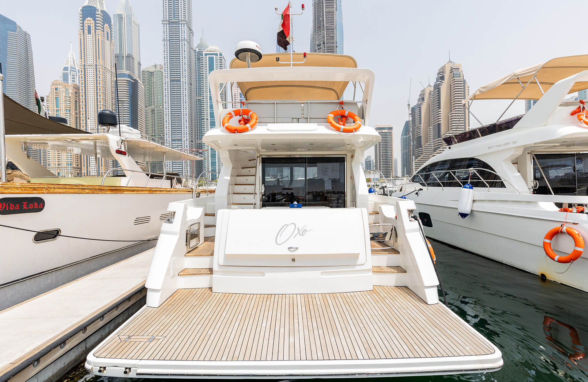 Charter Oxo, a sleek 52‑ft premium yacht in Dubai, with 19 Identical Yachts, this is ideal for smaller groups up to 17 guests. Offering intimate luxury, cozy lounges, and elegant design, it’s perfect for private cruises, couples’ escapes, or intimate events. Discover sophistication and charm aboard this refined Dubai yacht rental.