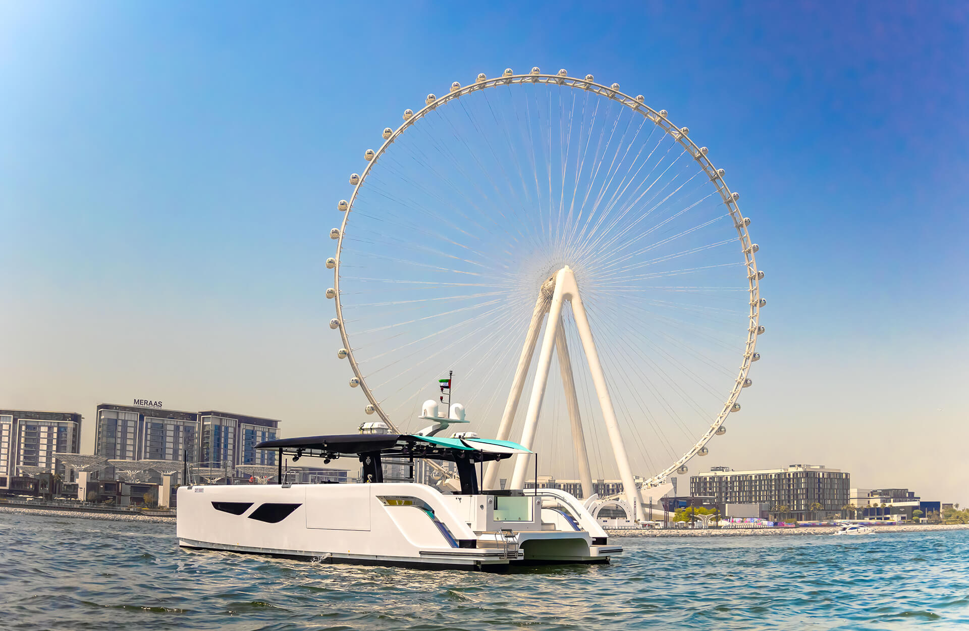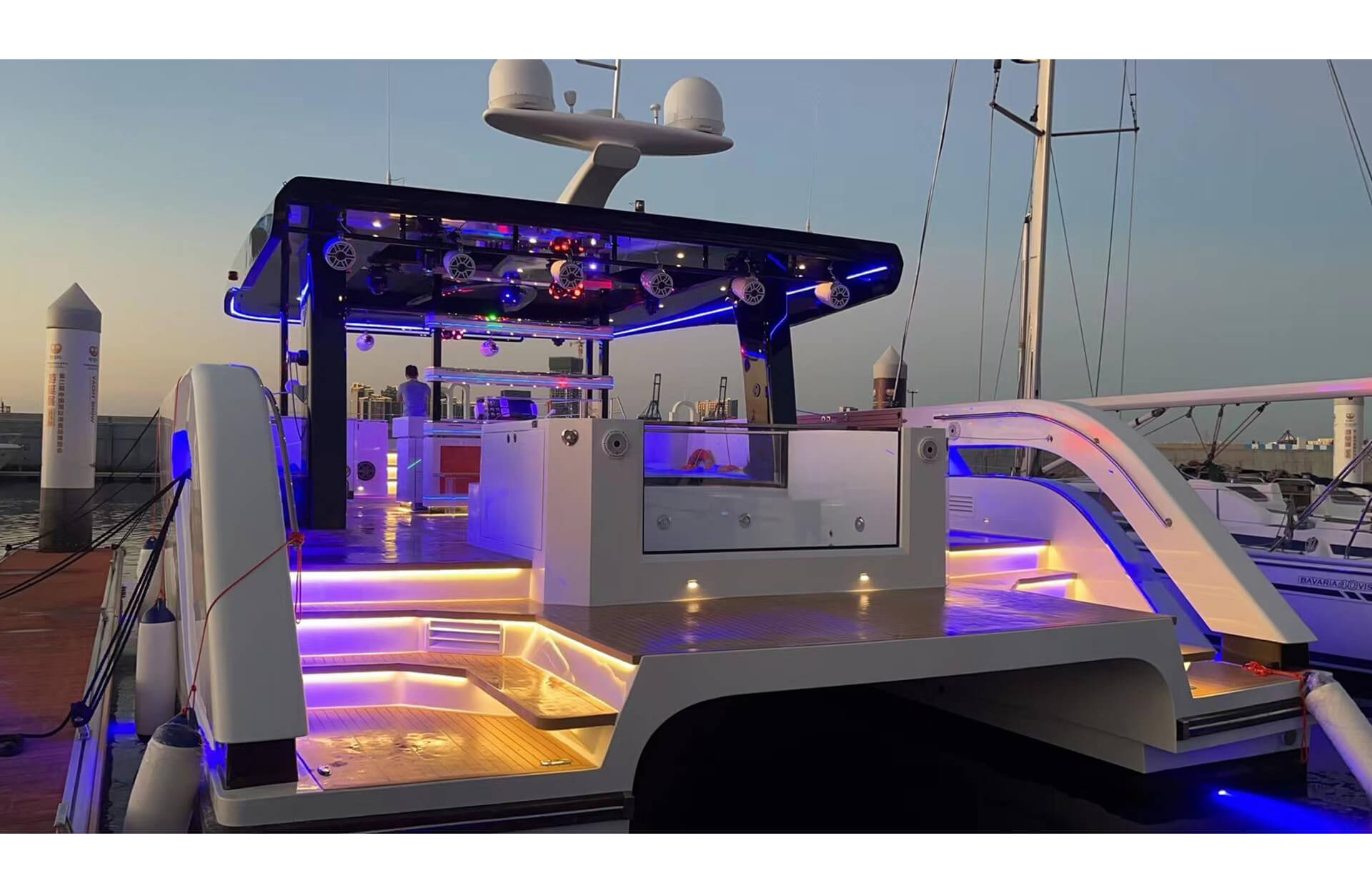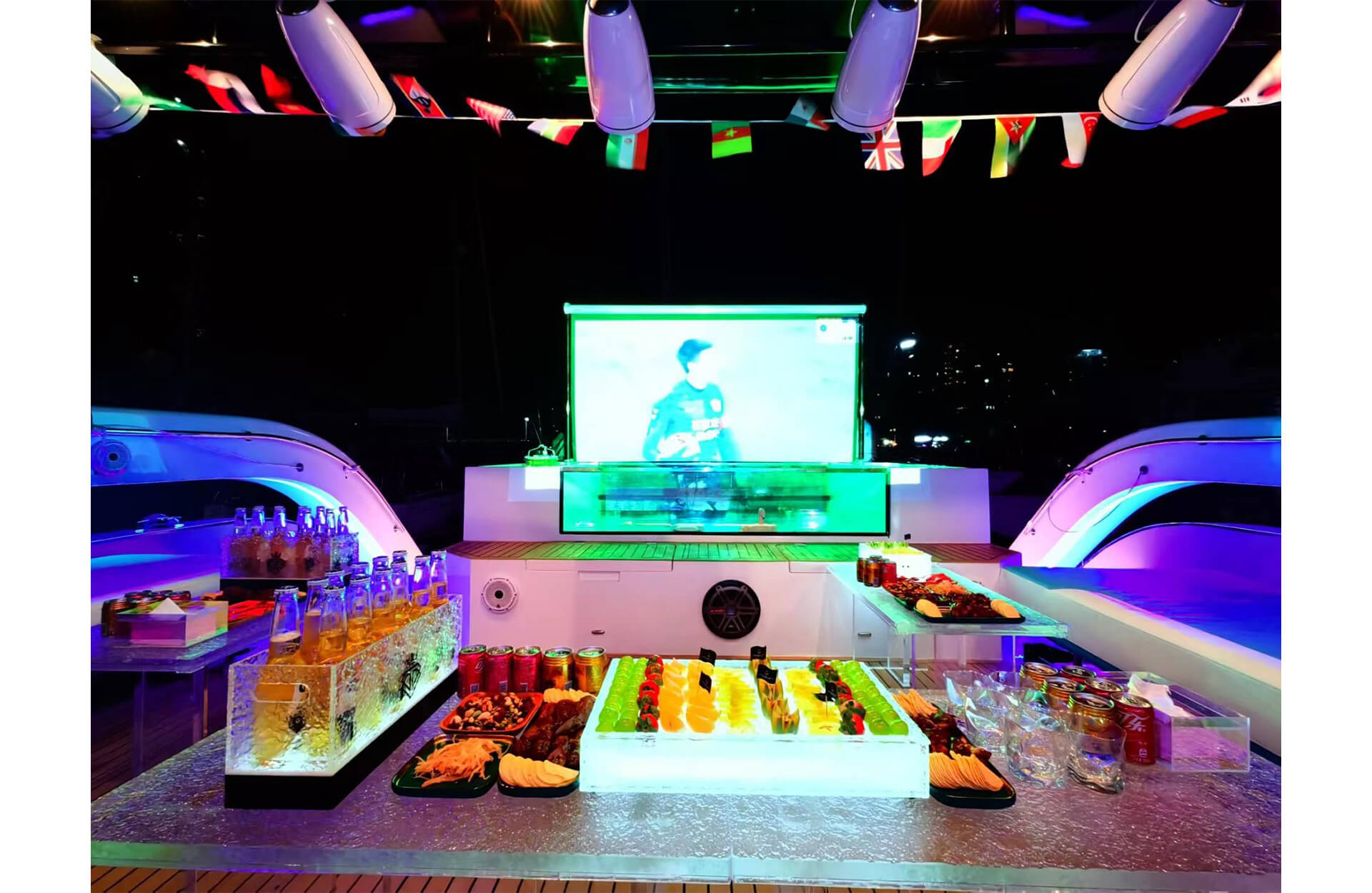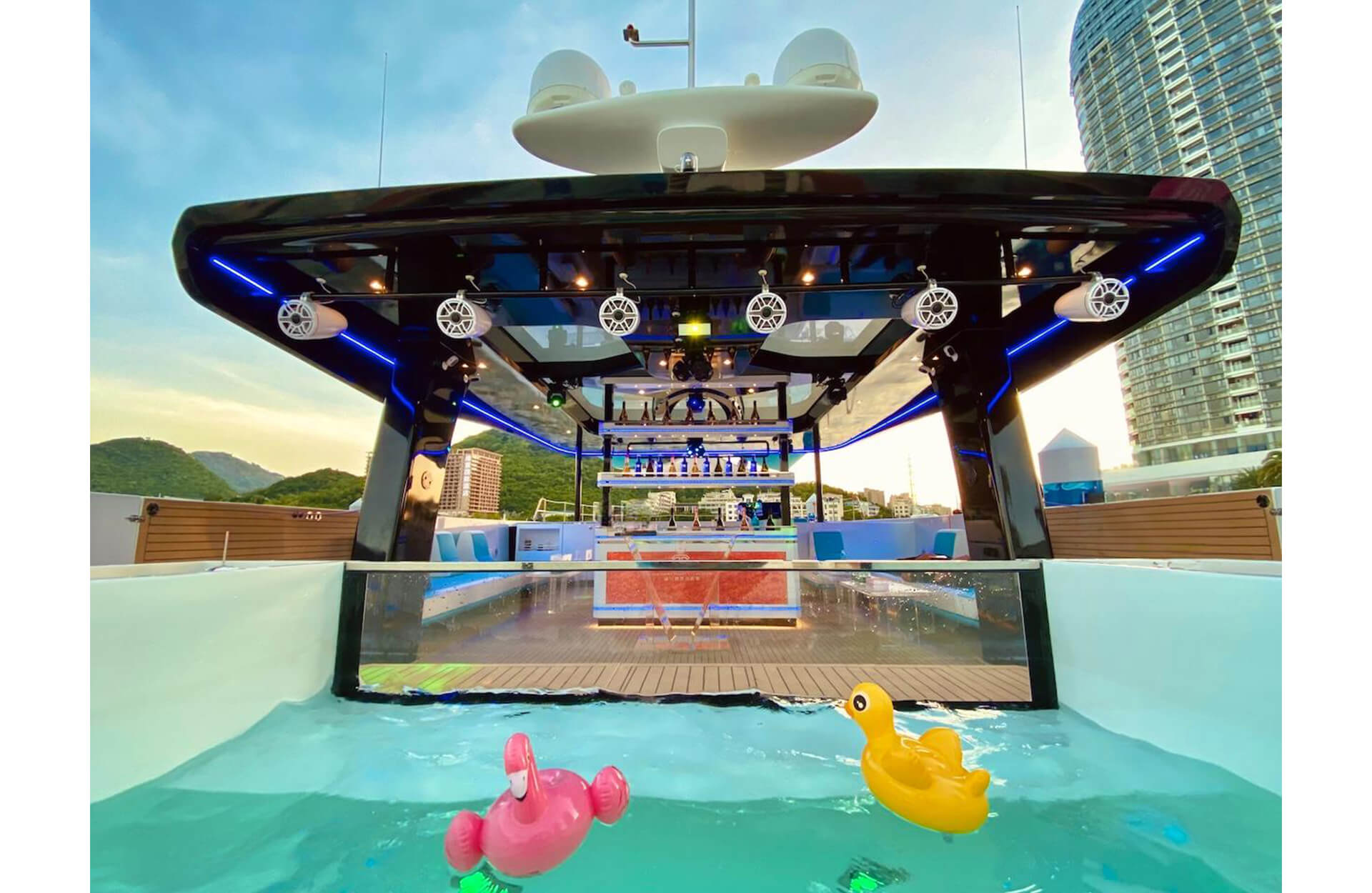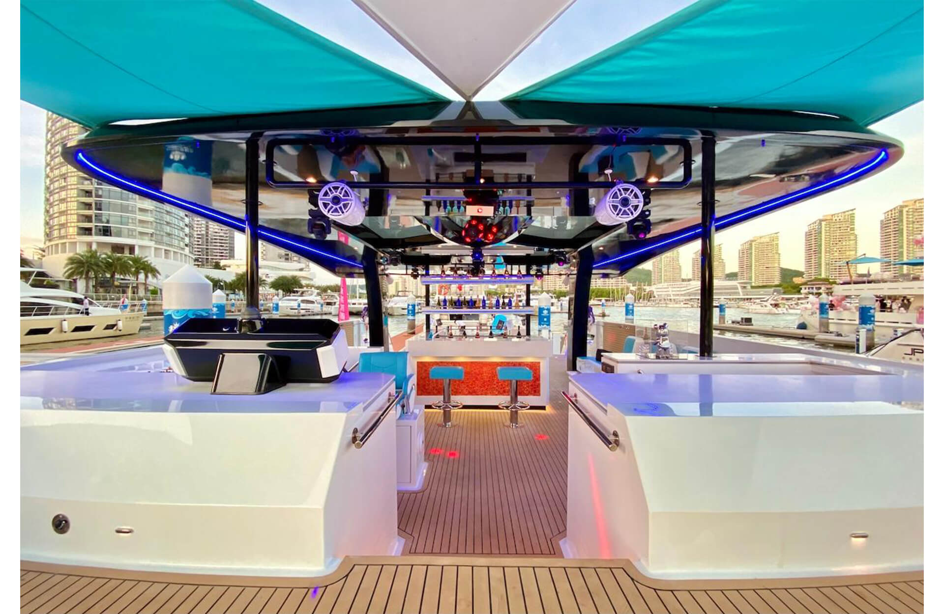 Charter Ozone, a premium party yacht in Dubai for up to 40 guests. Featuring a pool, stylish bar area, expansive open decks, and drop‑down side balconies for seamless sea access. Ideal for vibrant celebrations, sunset parties, or corporate gatherings — Ozone delivers a high‑energy, luxurious Dubai yacht rental experience.