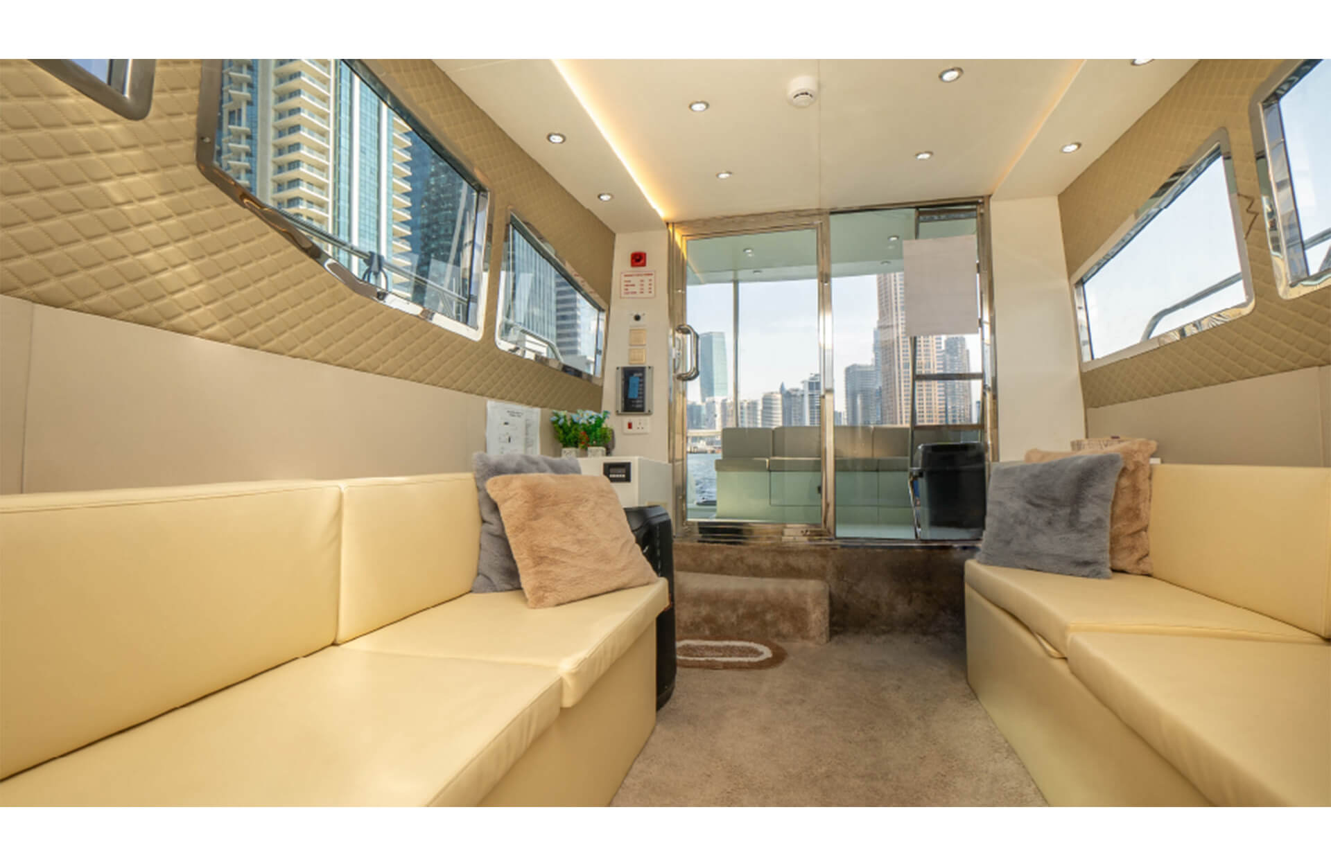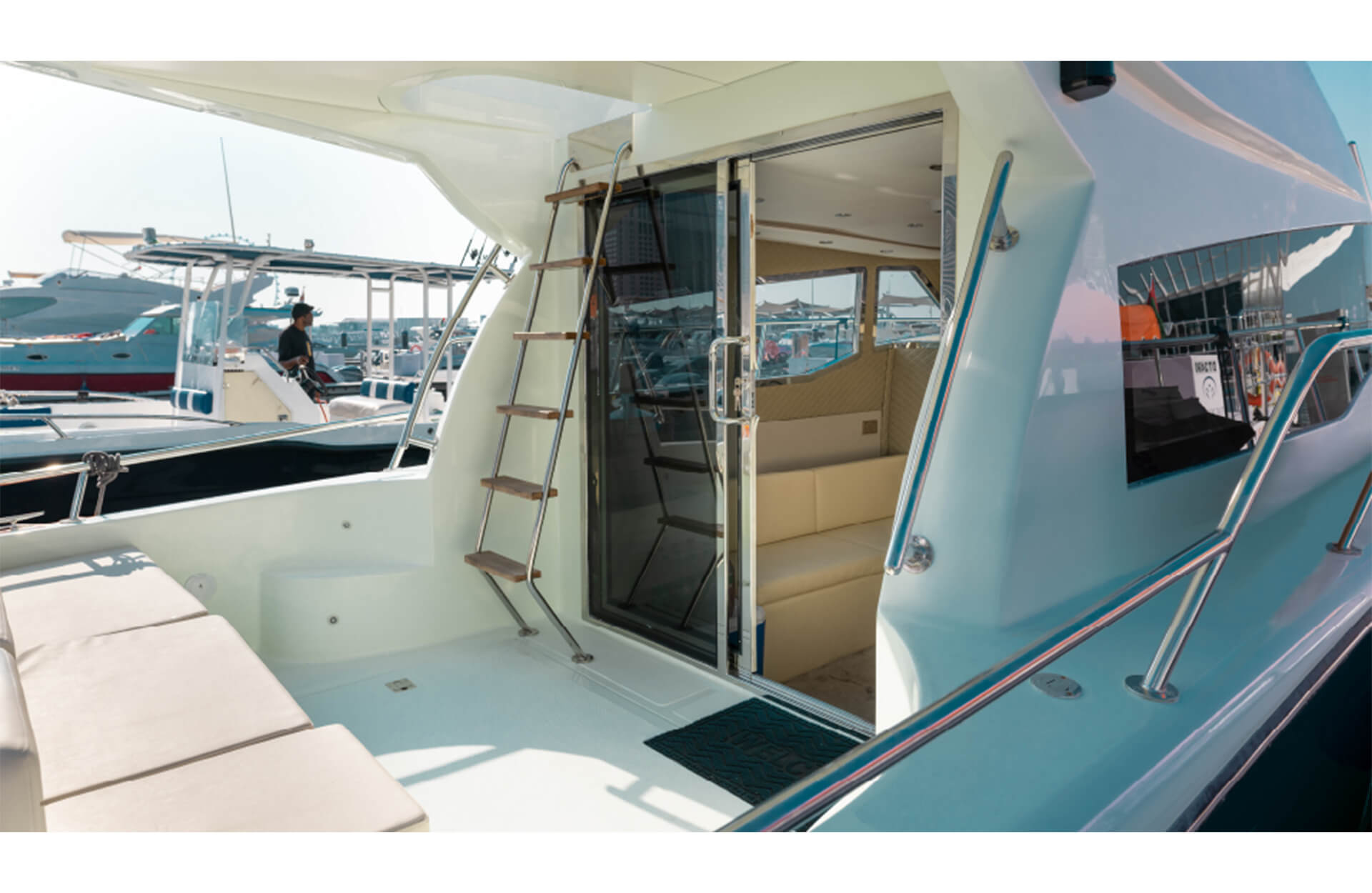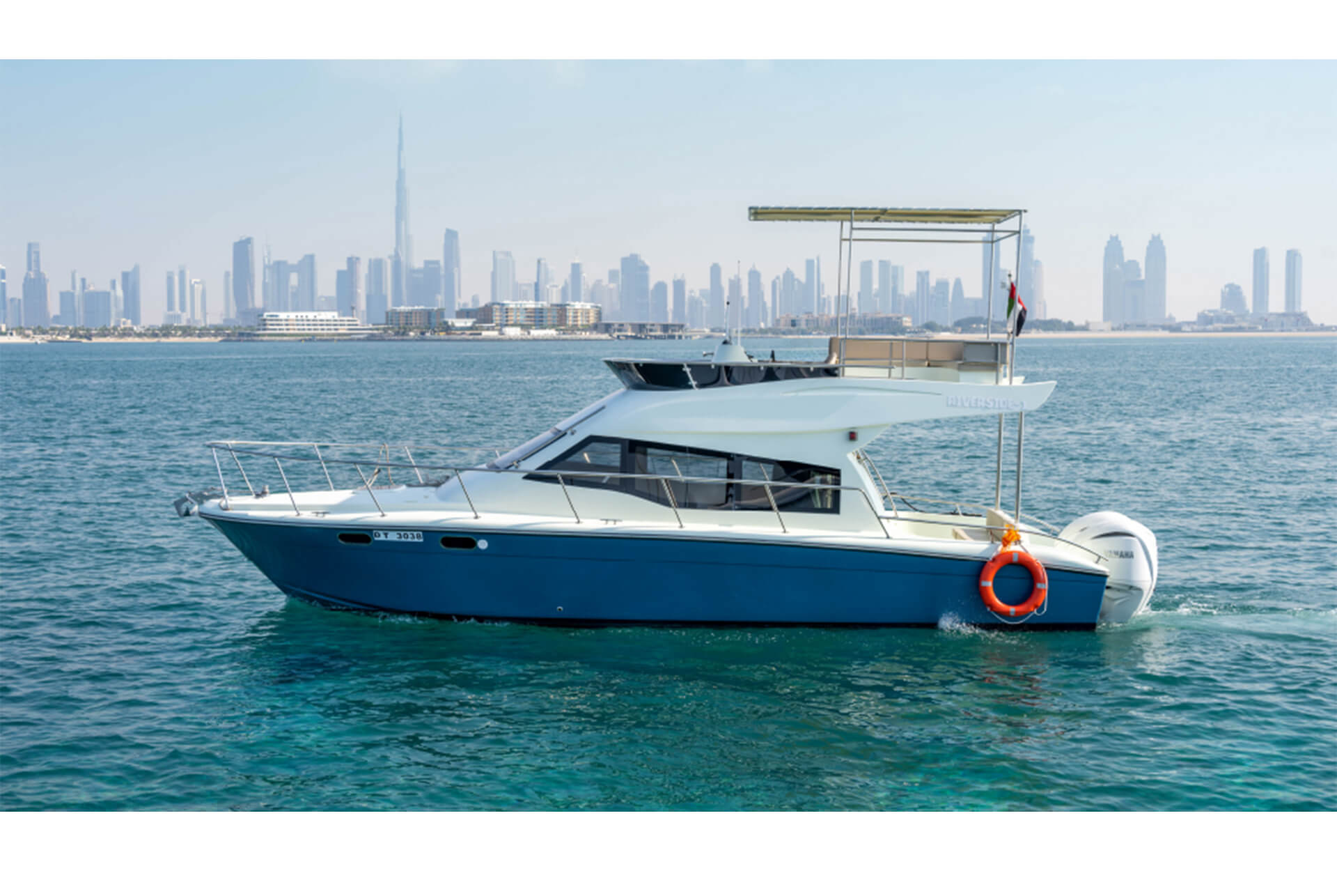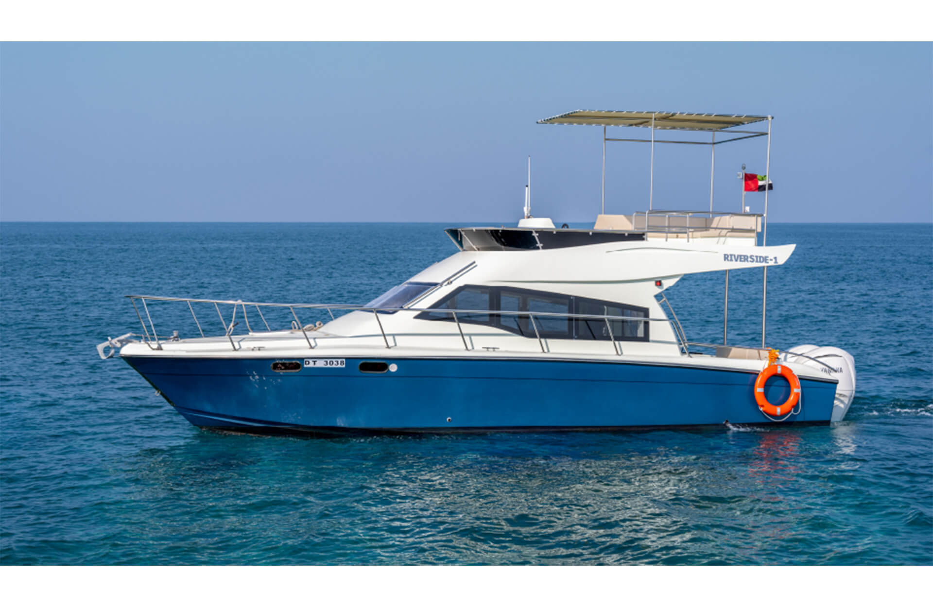 Rent the charming "Riverside" yacht in Dubai, an affordable 40ft vessel perfect for up to 12 guests. Featuring a cozy cabin, spacious upper deck, and sleek design, it’s ideal for intimate gatherings, fishing trips, or scenic cruises along Dubai’s coastline. Enjoy panoramic views and a relaxing atmosphere on the water. Book through Dubai Yacht Rental today and experience a memorable day aboard the "Riverside" yacht.