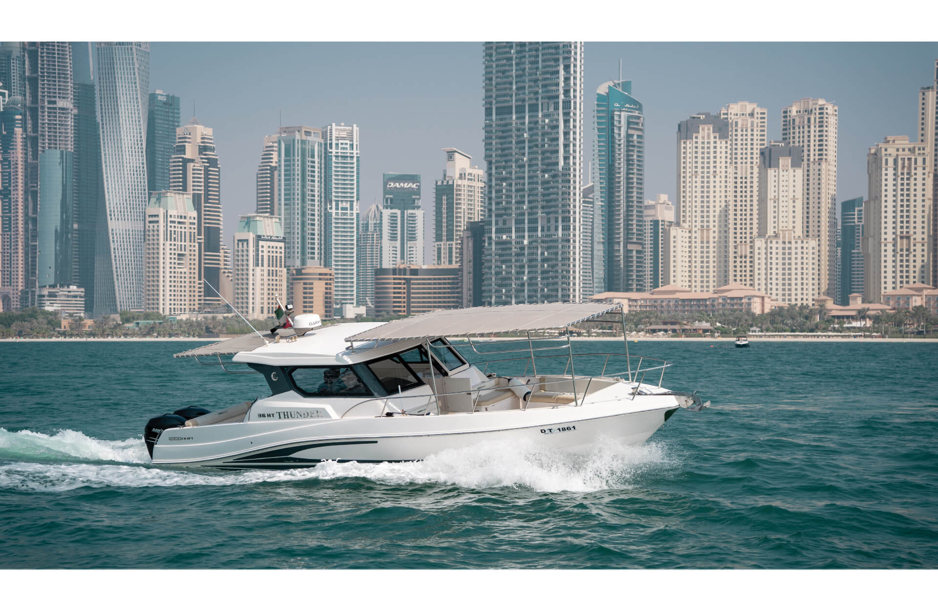 Rent the "Storm 36ft" yacht in Dubai, an affordable speed boat perfect for up to 10 guests. Ideal for a day of fishing or a thrilling ride along Dubai’s coastline, this 36ft yacht combines performance with comfort. Whether you're relaxing or fishing, the "Storm 36ft" offers the perfect experience on the water. Book through Dubai Yacht Rental today for an unforgettable adventure on the "Storm36ft" yacht.
