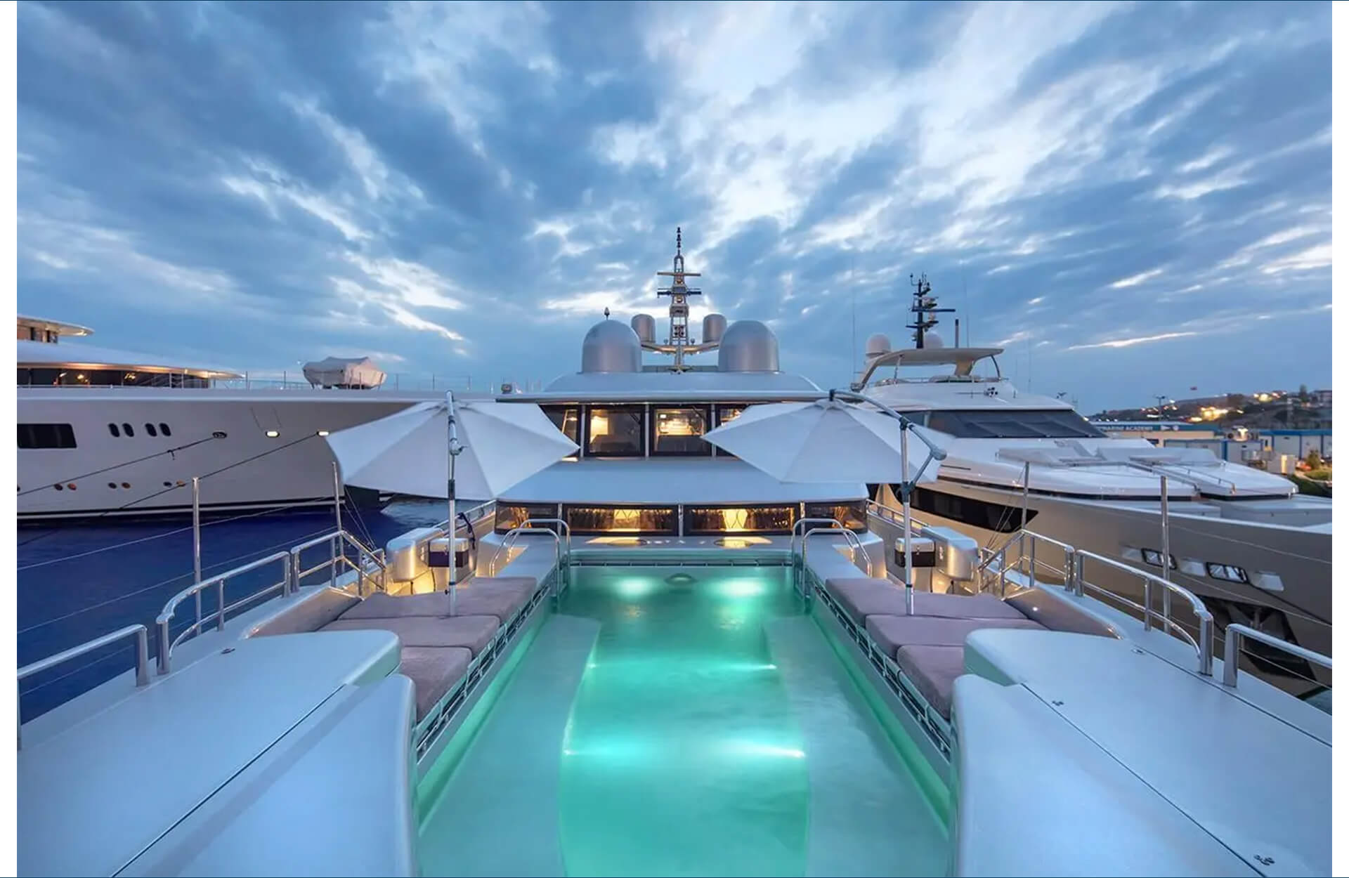 Rent the exceptional "Thunder" yacht in Dubai, a luxury superyacht featuring the largest swimming pool on a yacht in the city and a sleek, unique design that sets it apart. Ideal for VIP gatherings and standout events, this yacht offers expansive deck space and premium amenities for an unforgettable experience. Book through Dubai Yacht Rental today and cruise Dubai’s coastline in true standout style aboard the "Thunder" yacht.