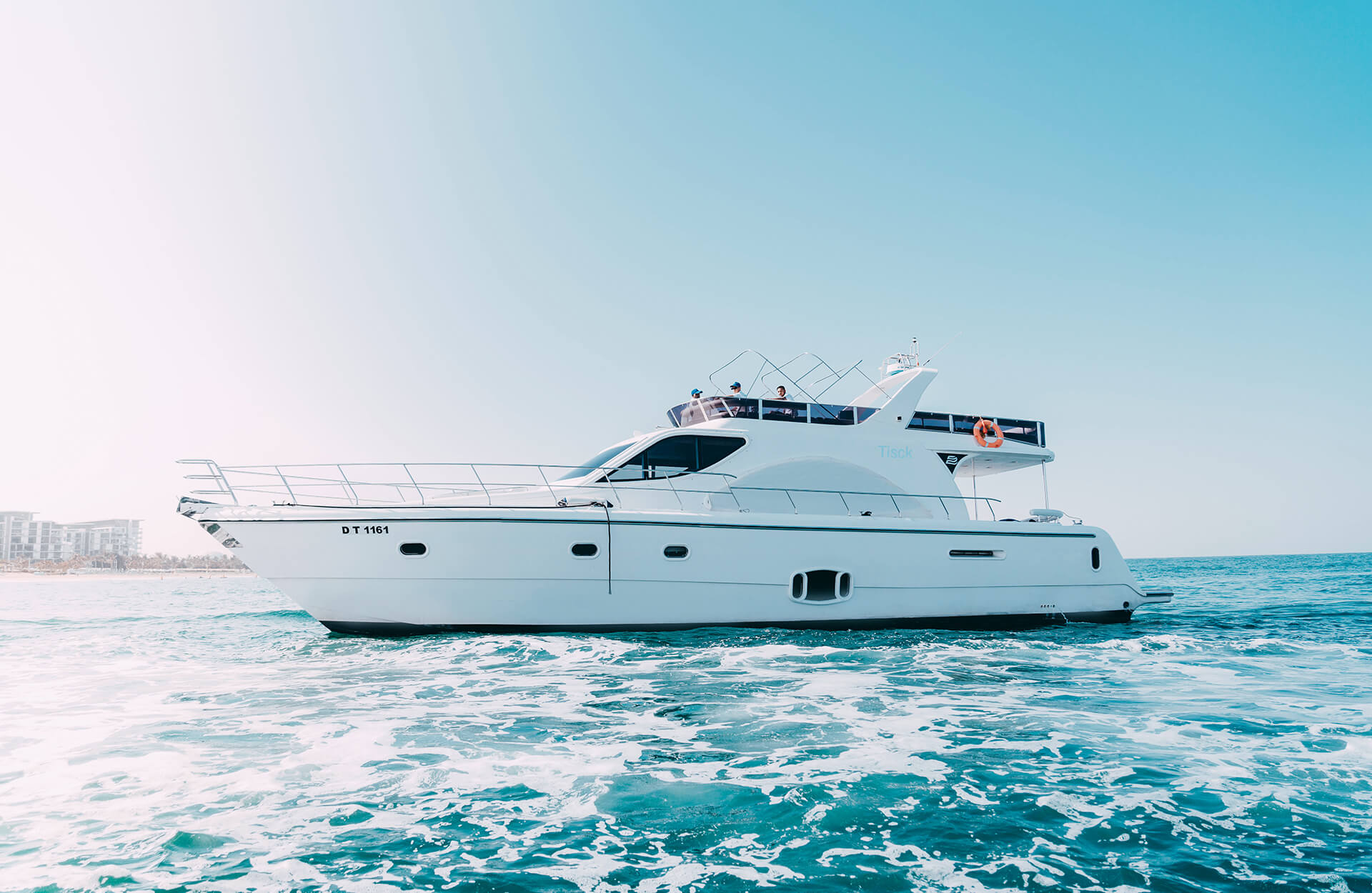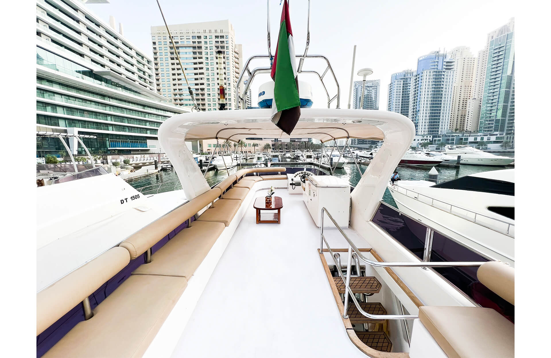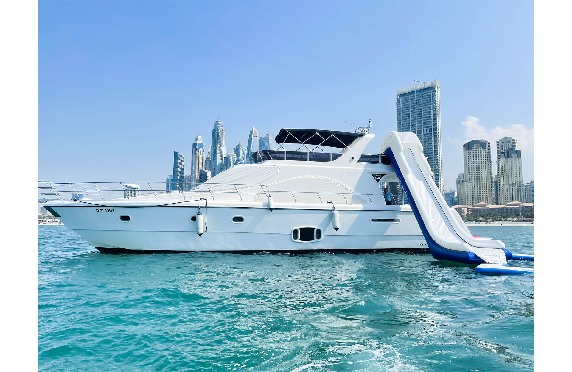 Charter Tisck, a spacious and affordable 75‑ft yacht in Dubai, perfect for groups of up to 30 guests. With ample seating, generous deck space, and an optional water slide, it's ideal for casual gatherings, birthday parties, or relaxed cruises along the Dubai coastline. Whether you're celebrating with friends or hosting a laid-back event, Tisck offers a comfortable and fun yacht rental experience in Dubai—without compromising on space or enjoyment.