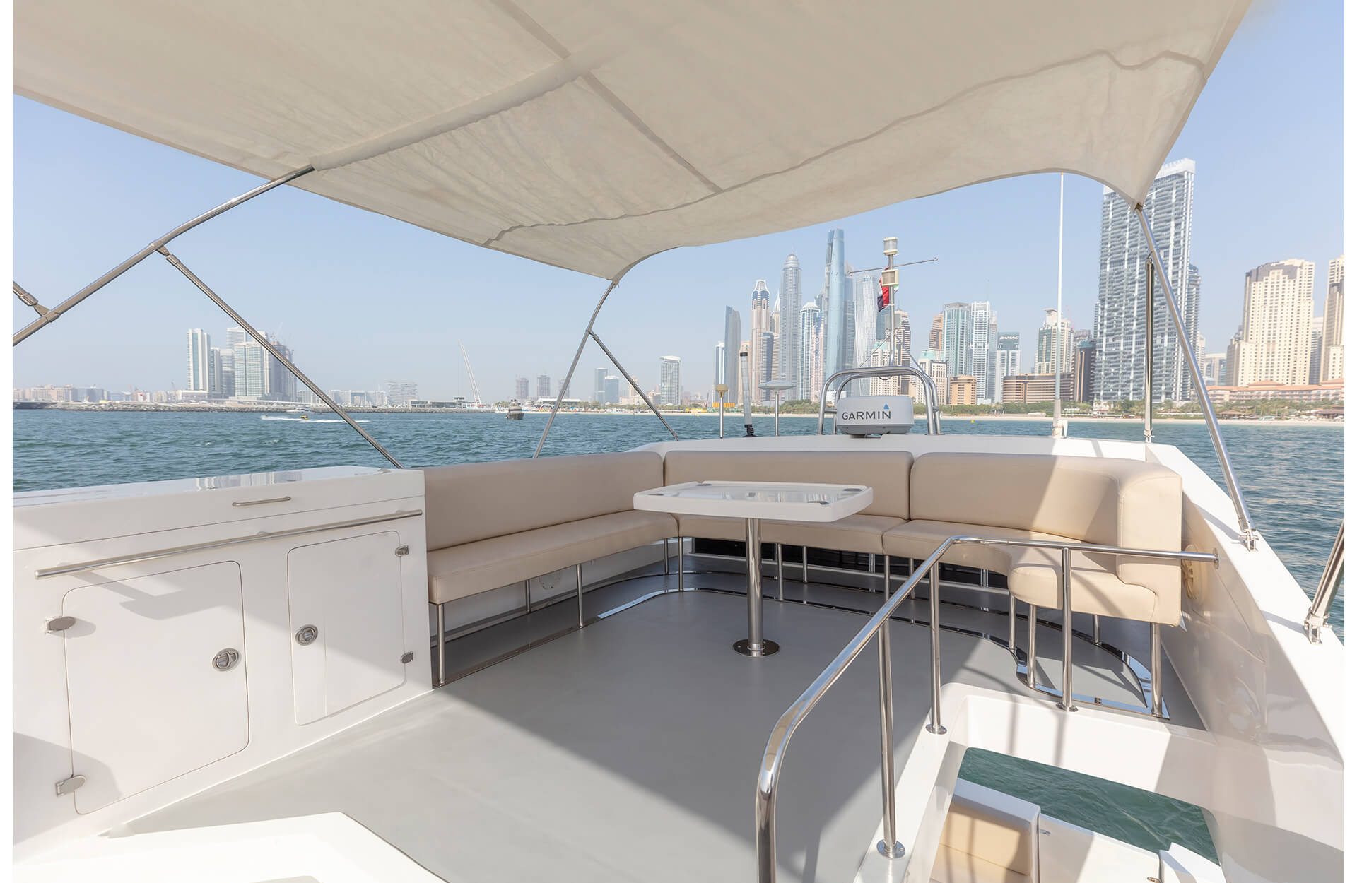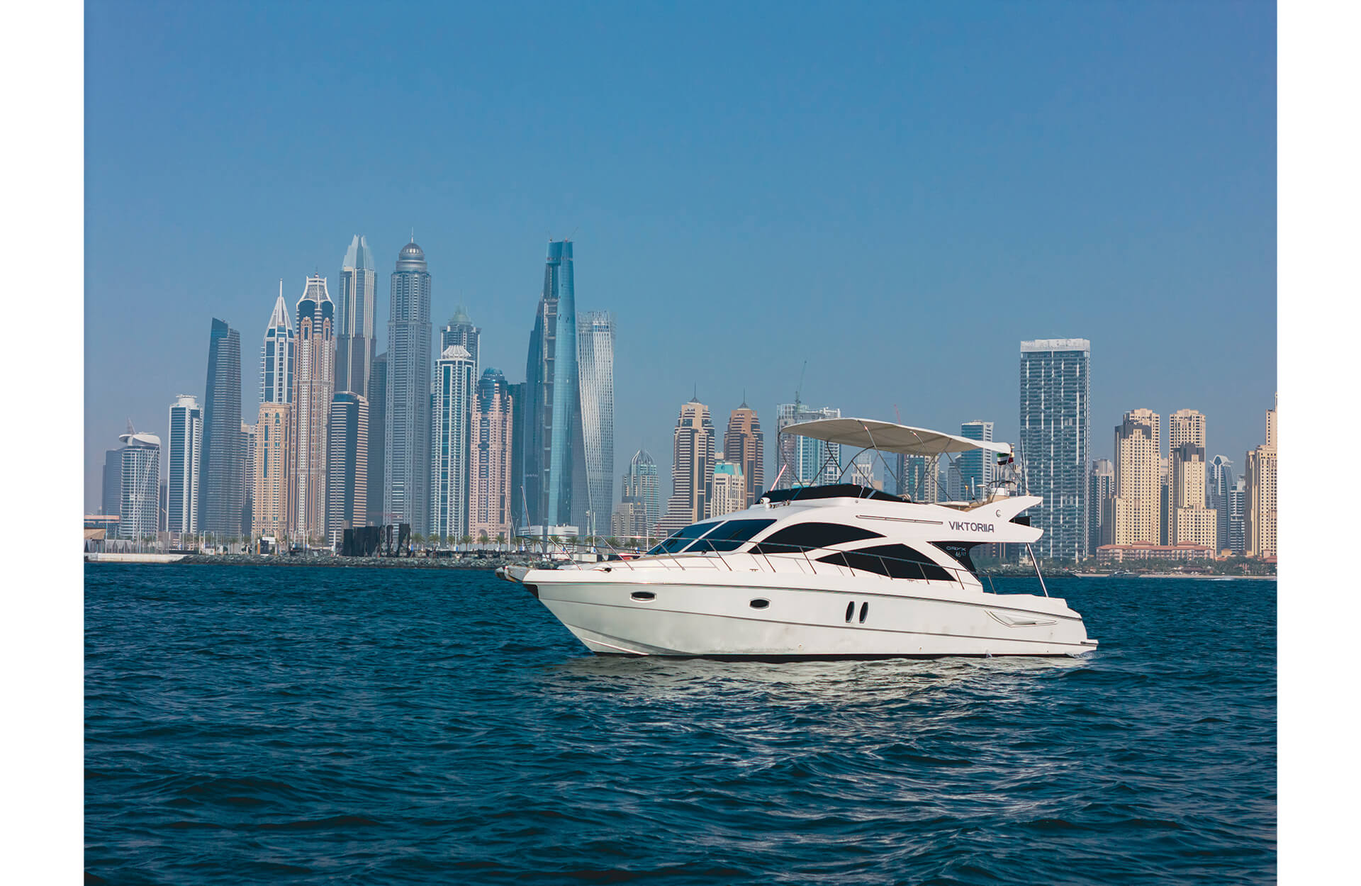 Rent the refined "Viktoriia" yacht in Dubai, an affordable 46 ft vessel boasting an open-layout flybridge and space for up to 12 guests. Ideal for intimate get-togethers, relaxed day cruises or a scenic voyage along the city’s iconic waterfront. With easy access and stylish comfort, the Viktoriia offers a private escape from the everyday. Book through Dubai Yacht Rental today and make your time on the water distinctly memorable aboard the "Viktoriia" yacht.