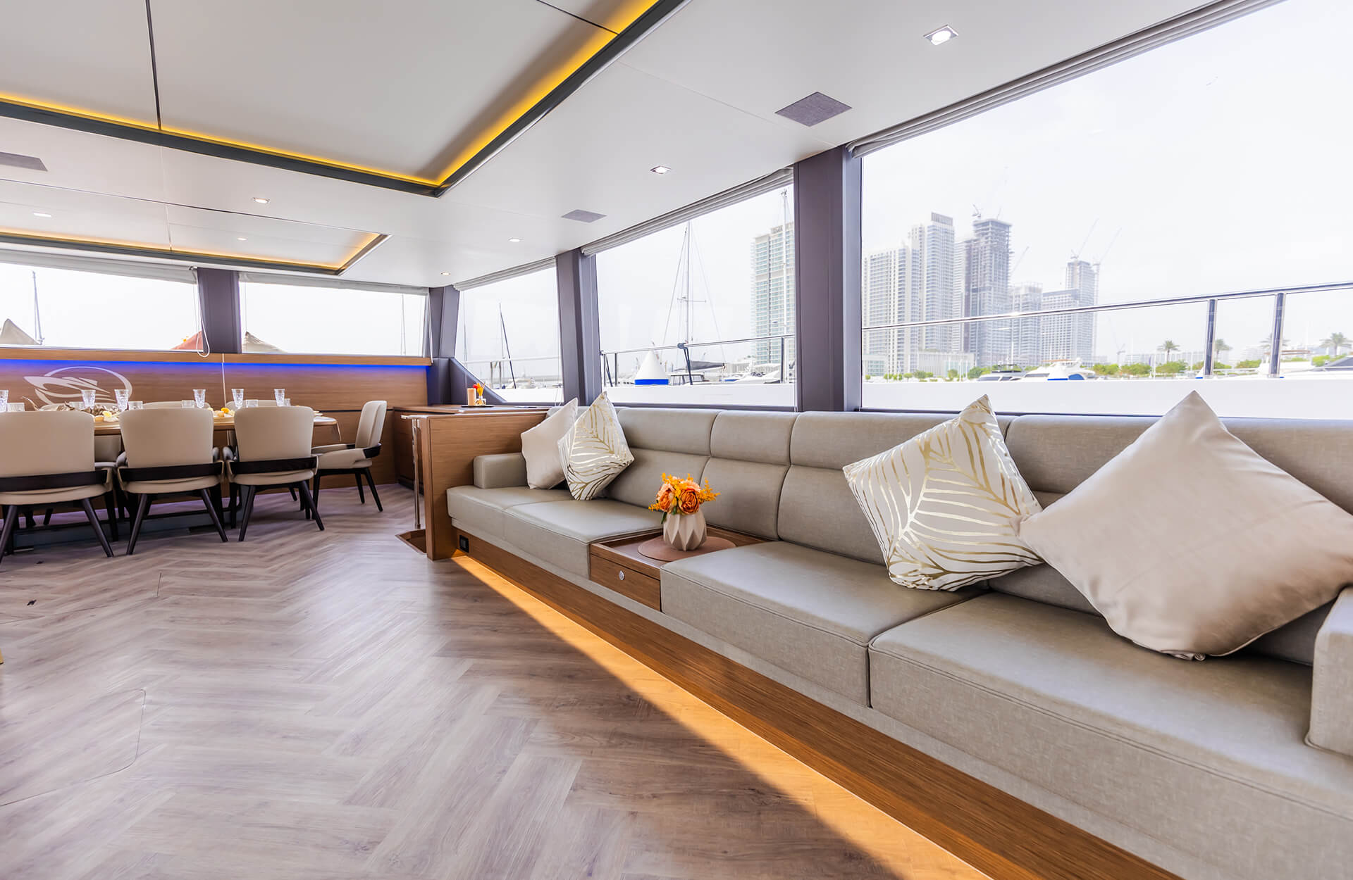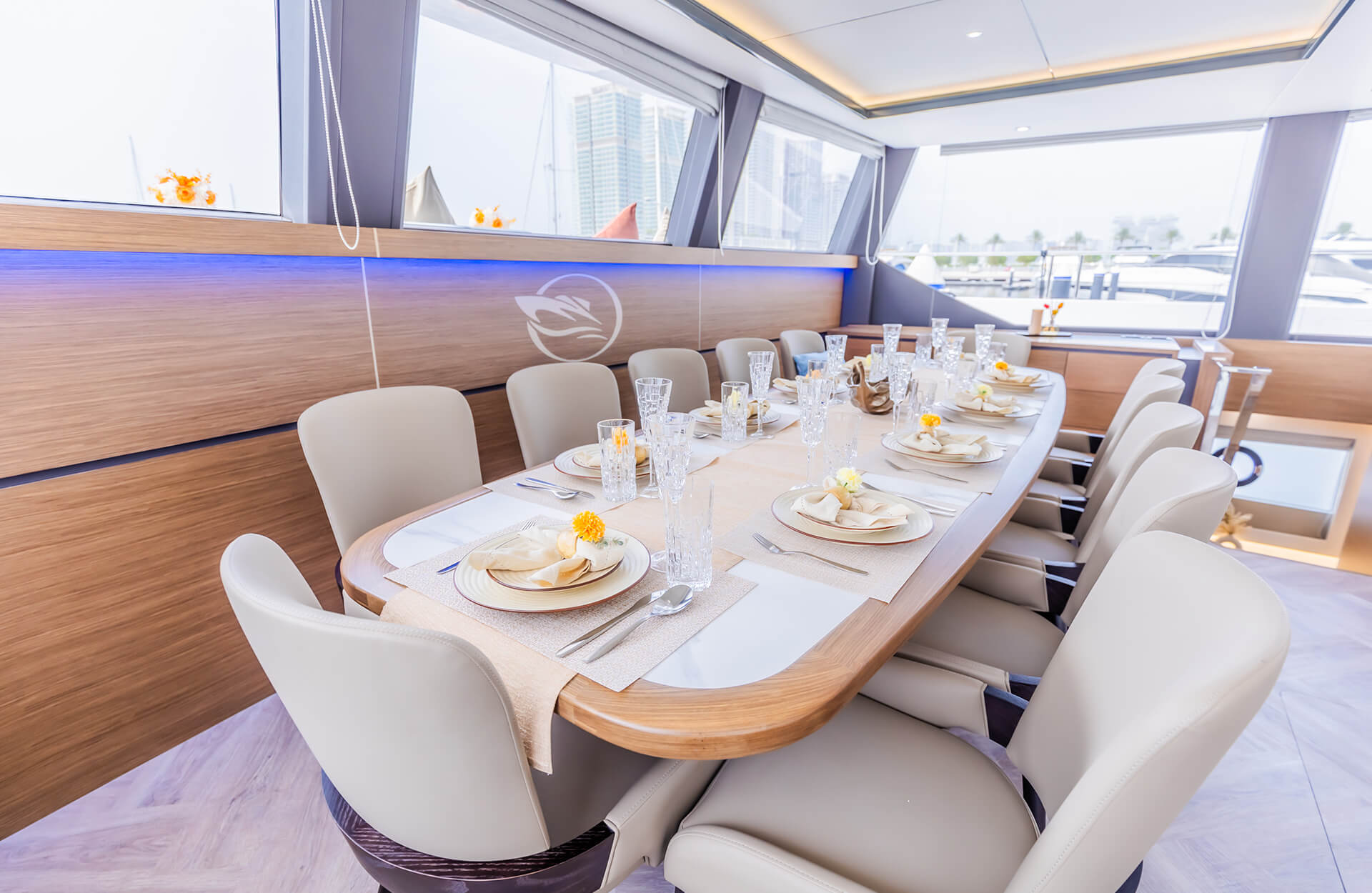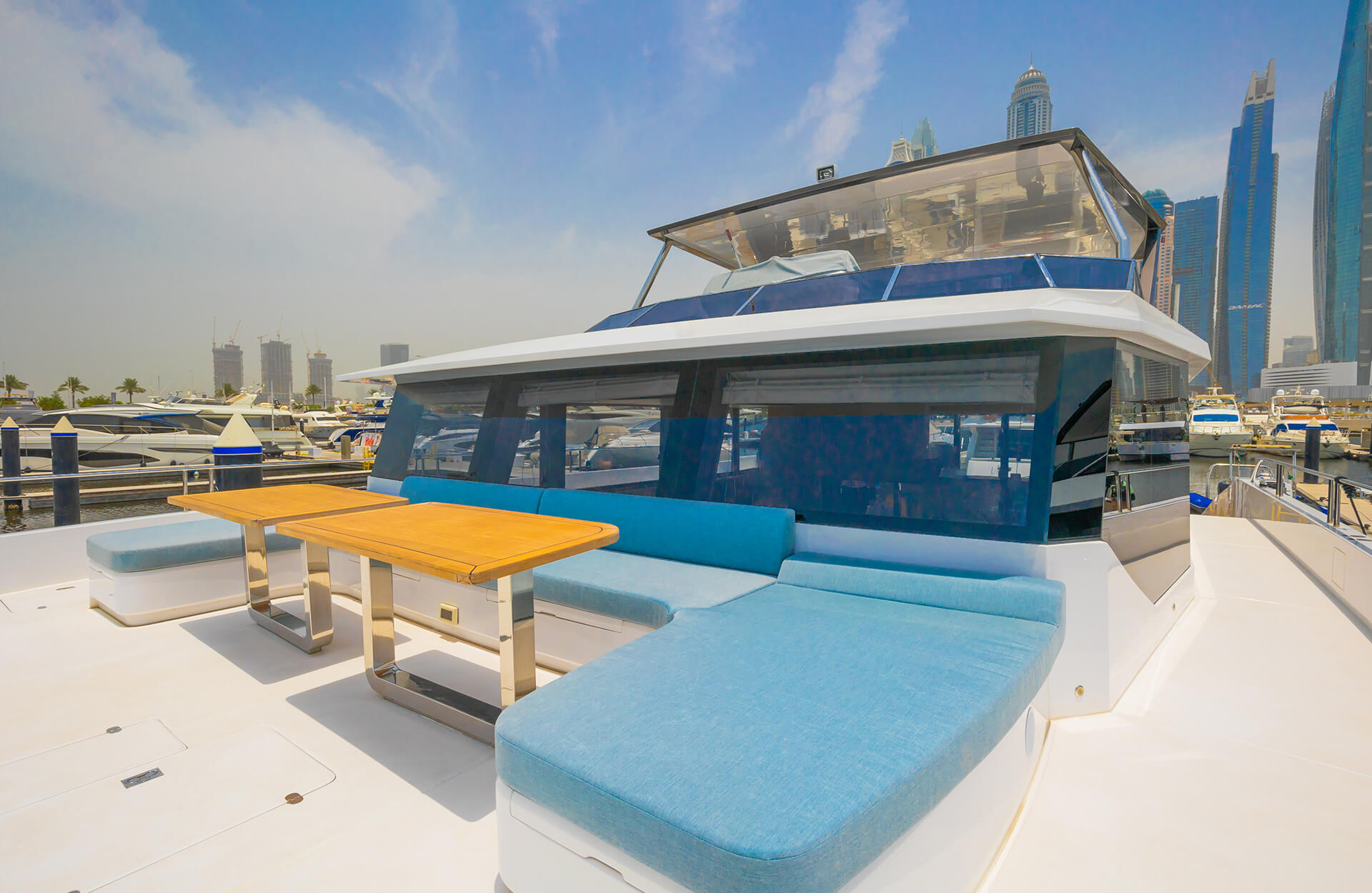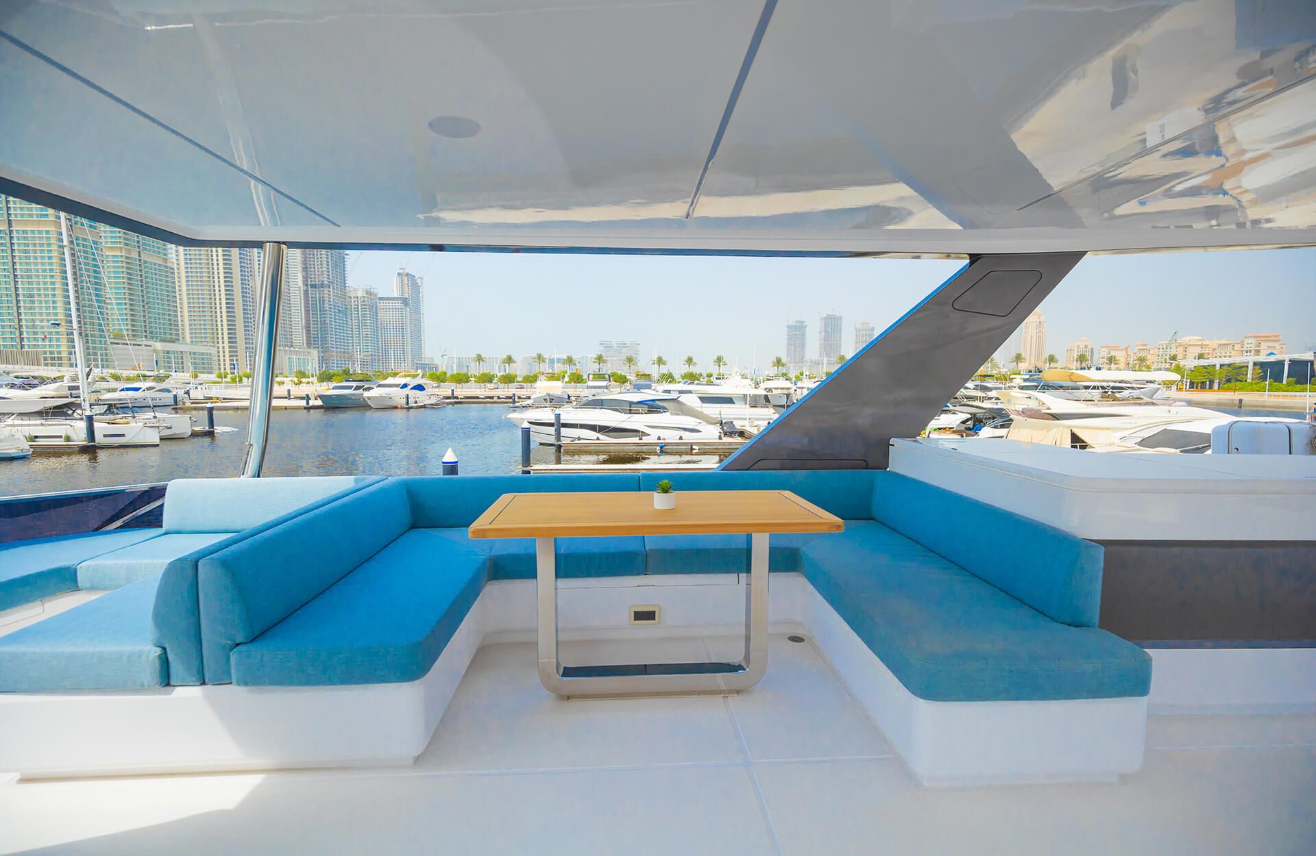 Charter Aquila Cat, a premium 60‑ft catamaran yacht in Dubai, perfect for groups up to 40 guests. With a bar area, expansive deck space, and the stability of a catamaran, it’s ideal for parties, corporate events, or leisurely cruises. Enjoy a unique Dubai yacht rental experience - relaxed, spacious, and unforgettable.