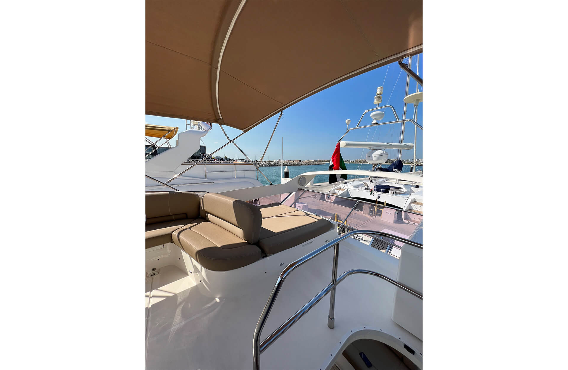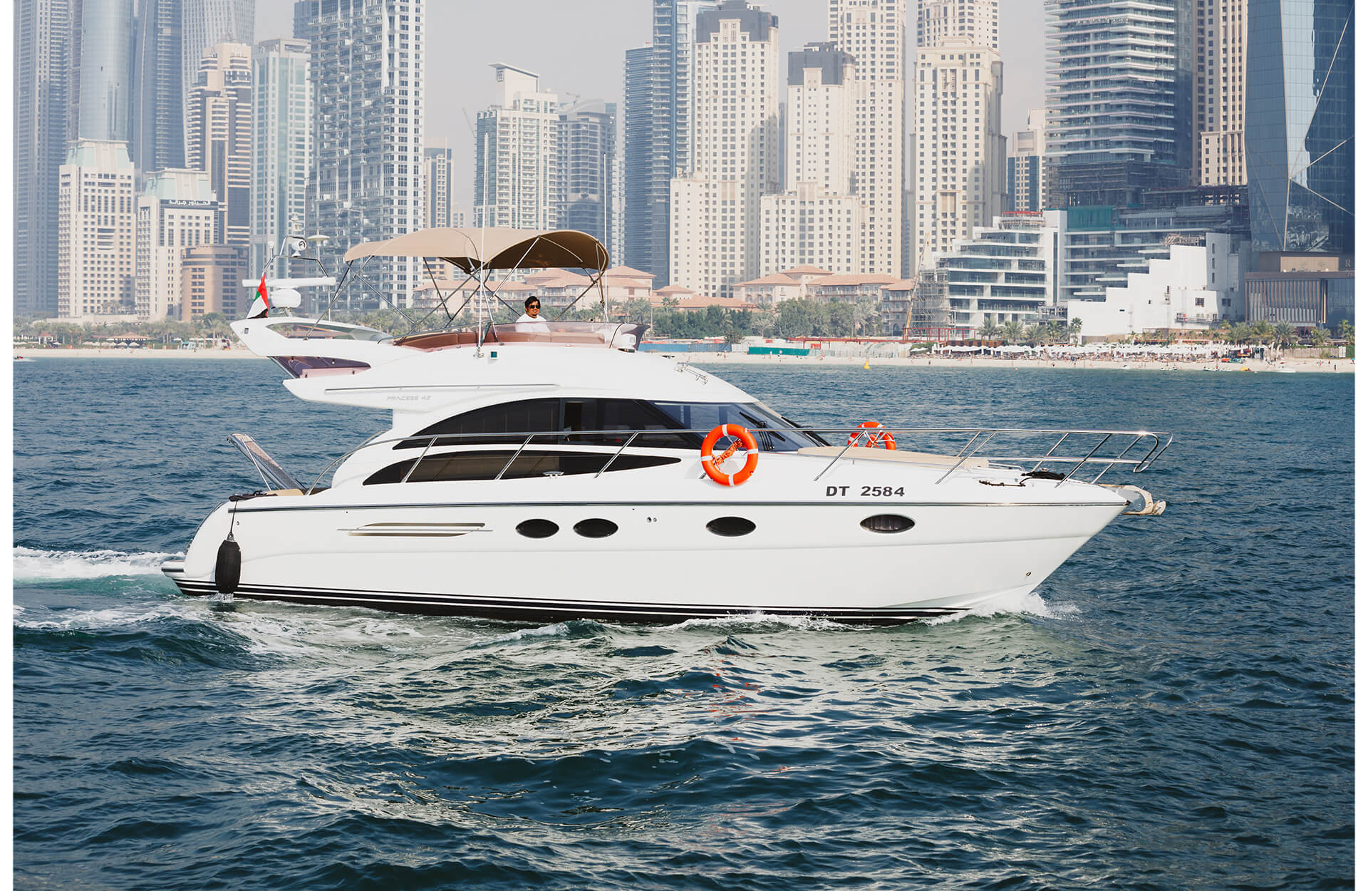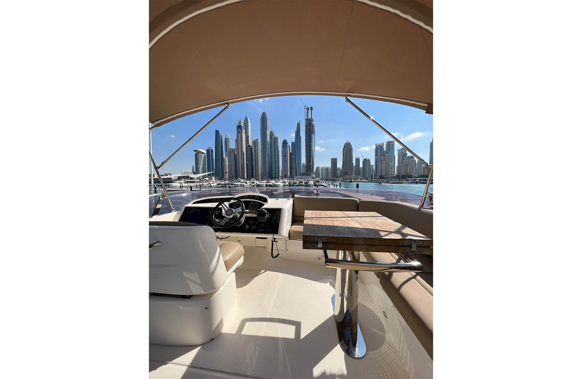 Rent the elegant "Arya" yacht in Dubai, a Premium vessel that departs from the prestigious Dubai Harbour. With space for up to 10 guests, this yacht offers the perfect setting for intimate private events or a luxurious day on the water. Enjoy the best of Dubai’s coastline with top-tier amenities and stunning views. Book through Dubai Yacht Rental today and experience luxury aboard the "Arya" yacht.