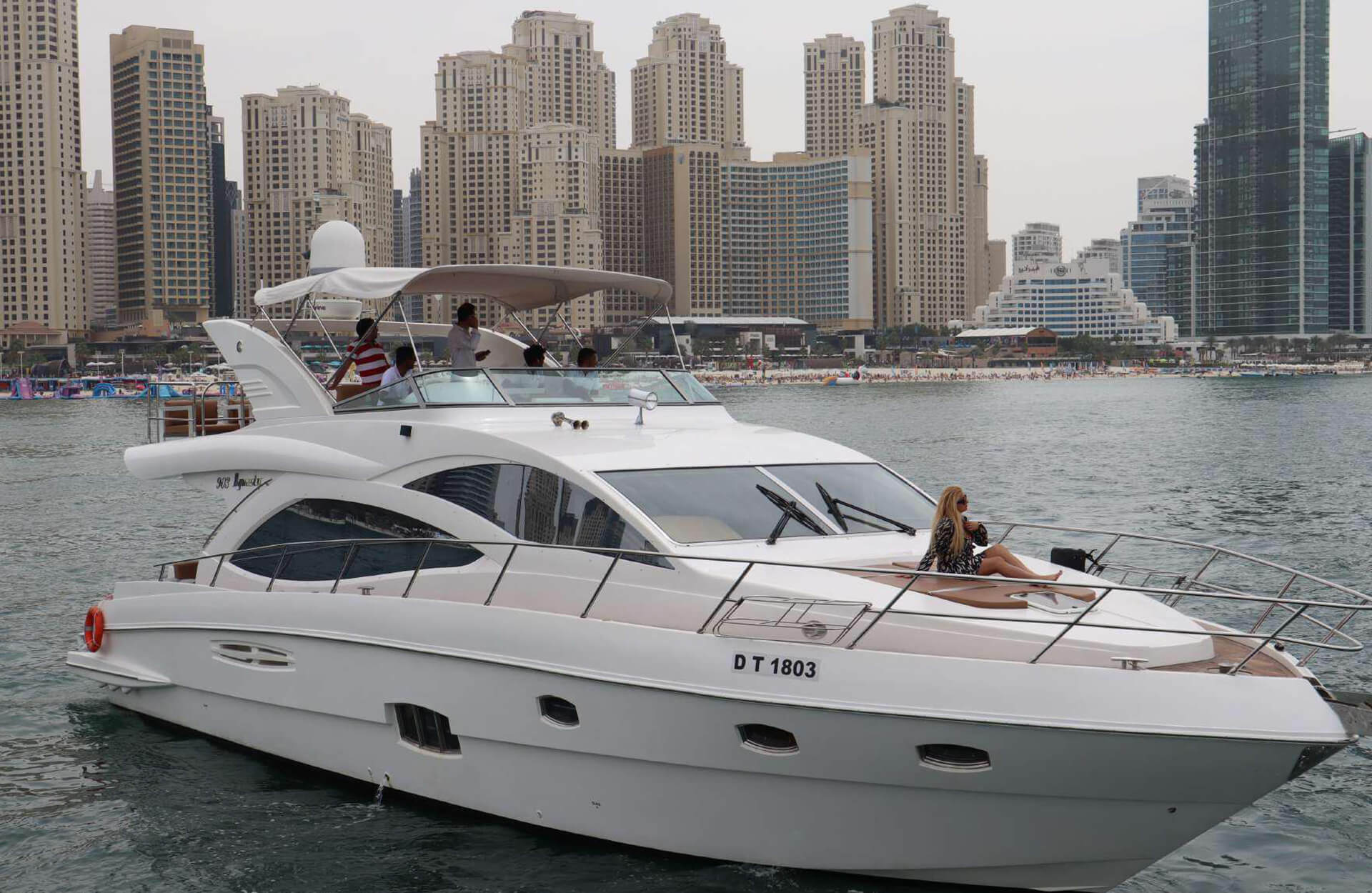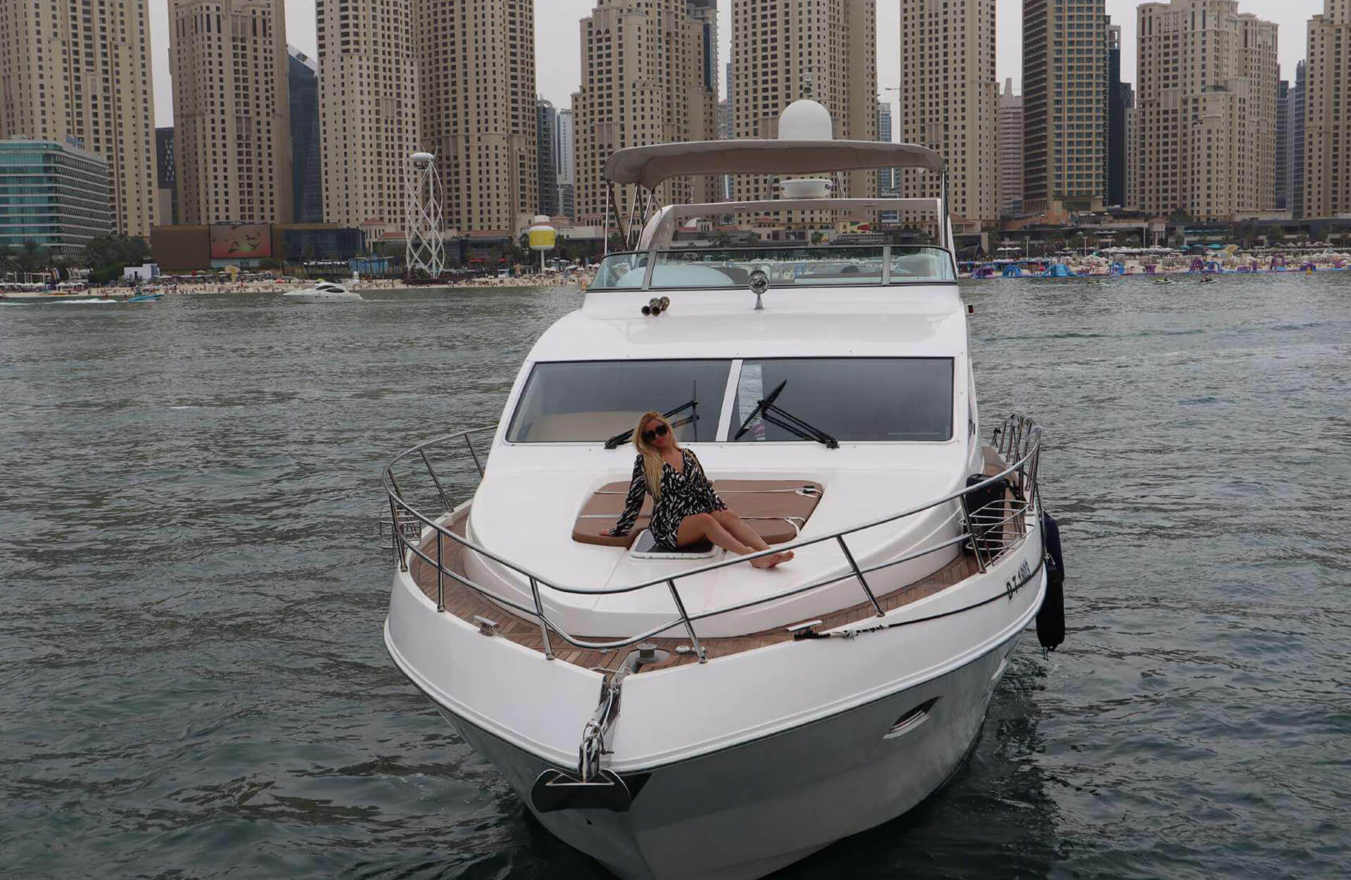 Rent the comfortable "Asfar Majesty 56" yacht in Dubai, offering ample space and the option to add a slide for extra excitement. Perfect for smaller groups or casual outings, this yacht is ideal for a relaxed day on the water. Enjoy modern amenities and a spacious deck while cruising along Dubai’s coastline. Book through Dubai Yacht Rental today and enjoy the best of Dubai’s waters on the "Asfar Majesty 56" yacht.