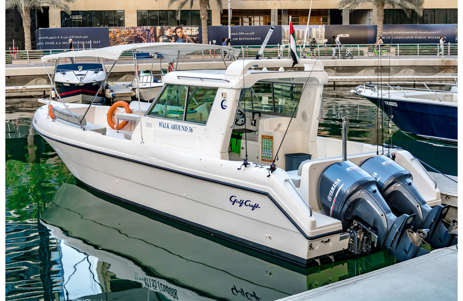 Rent the "Cruise Master 36ft" boat in Dubai, ideal for fishing trips or a day on the water with smaller groups. This day boat offers a compact yet comfortable experience, perfect for enjoying Dubai's waters without the need for a large yacht. Equipped with top-tier amenities, it’s perfect for those seeking an intimate, relaxing cruise or a fun fishing adventure. Book through Dubai Yacht Rental today for a memorable experience on the "Cruise Master 36ft" yacht.