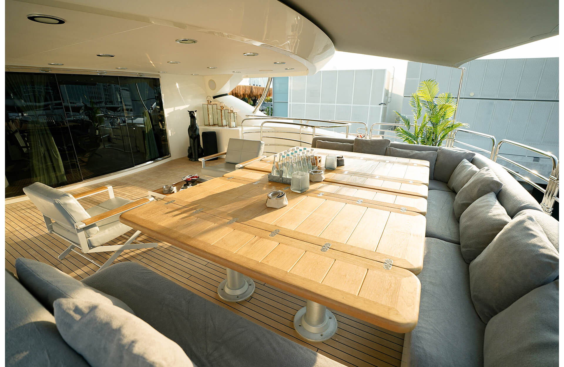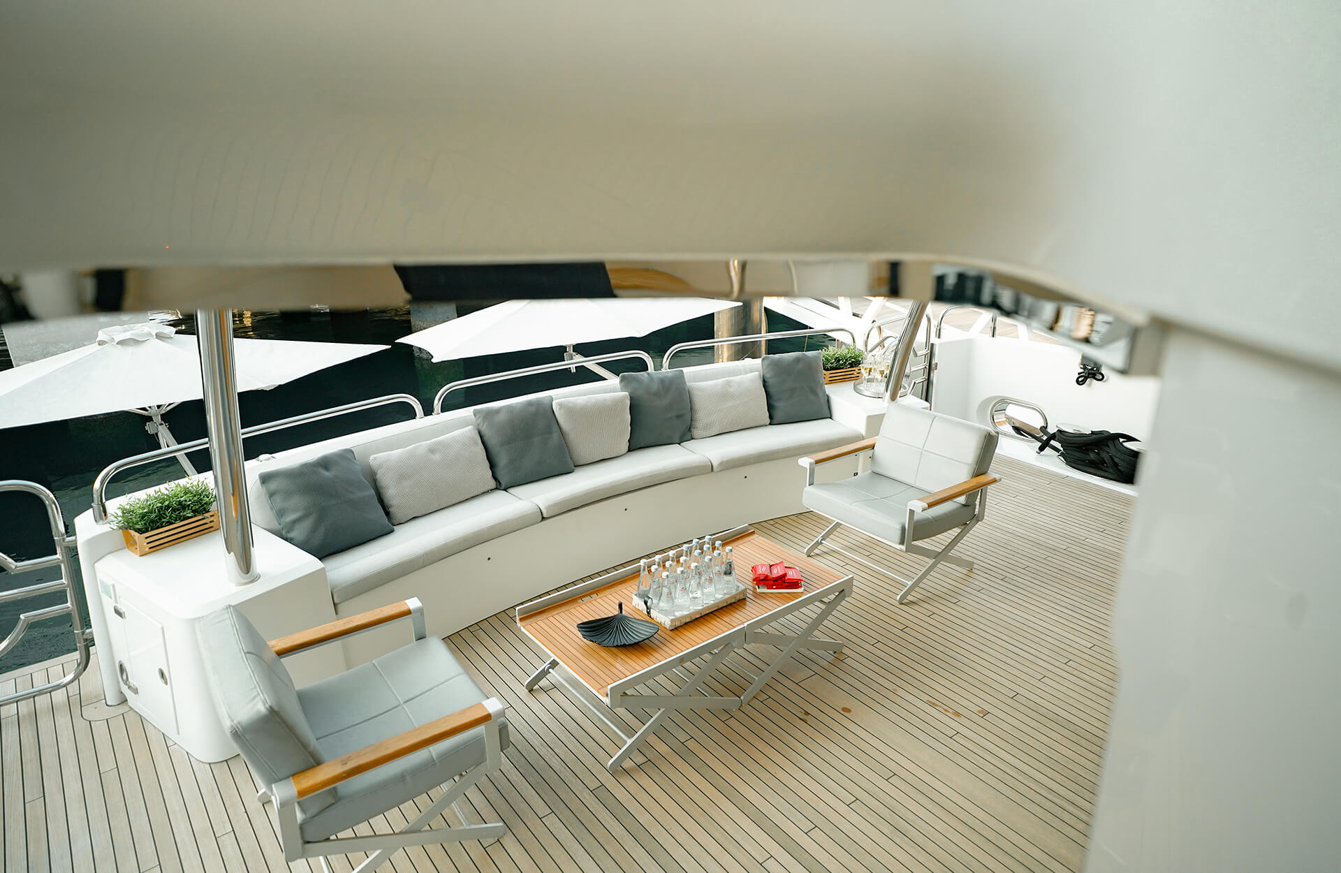 Charter Encore, a luxurious 3‑deck superyacht in Dubai accommodating up to 50 guests. Revel in elegance with a jacuzzi, spacious bar area, and generous deck space across all three levels. With an experienced crew managing every detail, Encore is perfect for sophisticated private cruises, parties, or corporate events. Experience the ultimate Dubai yacht rental - style, comfort, and unforgettable views