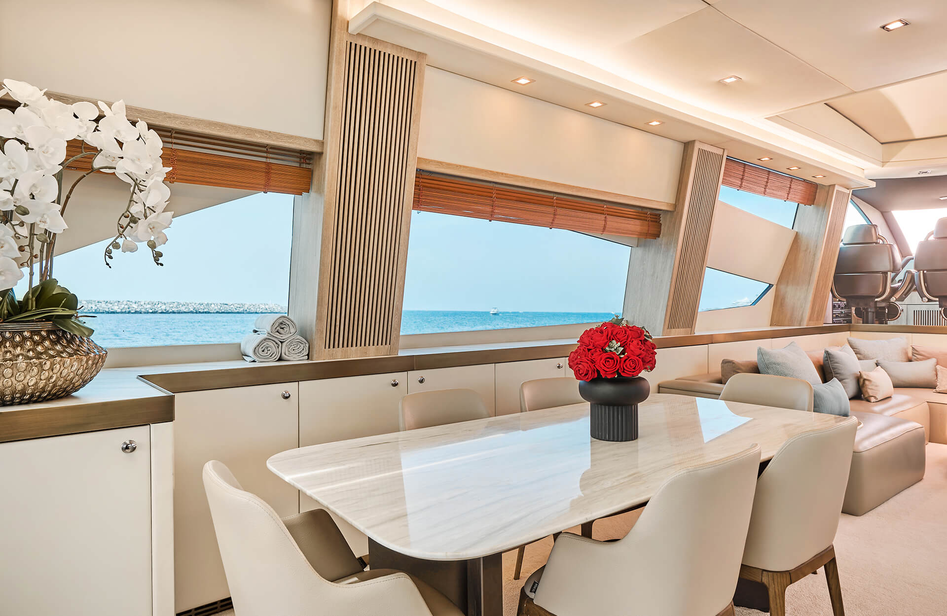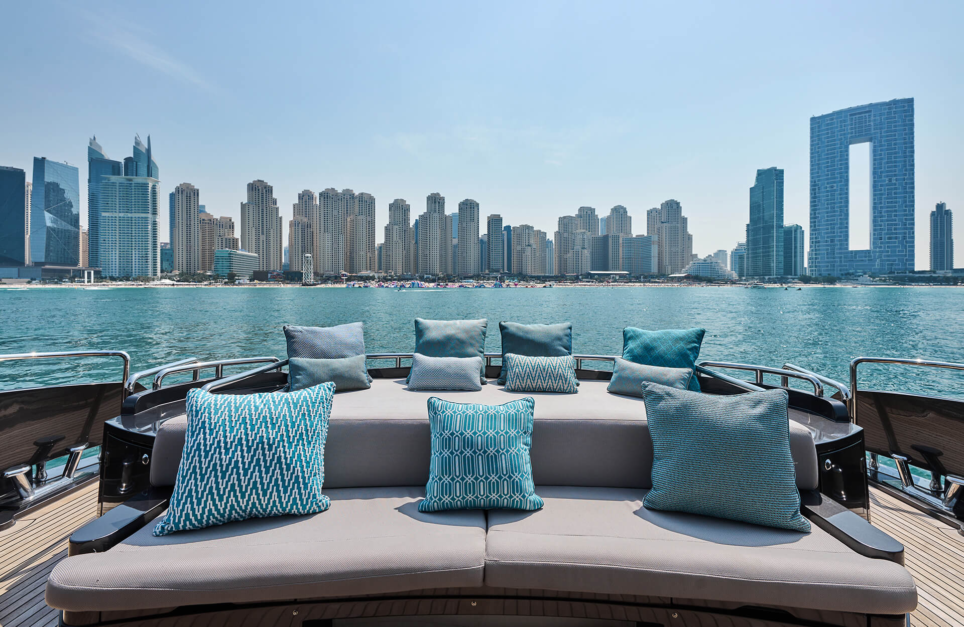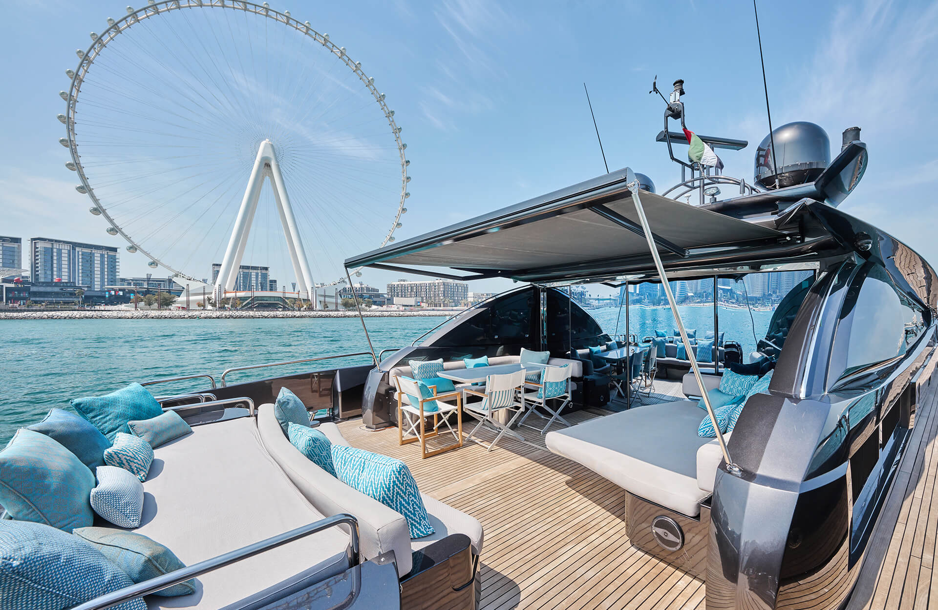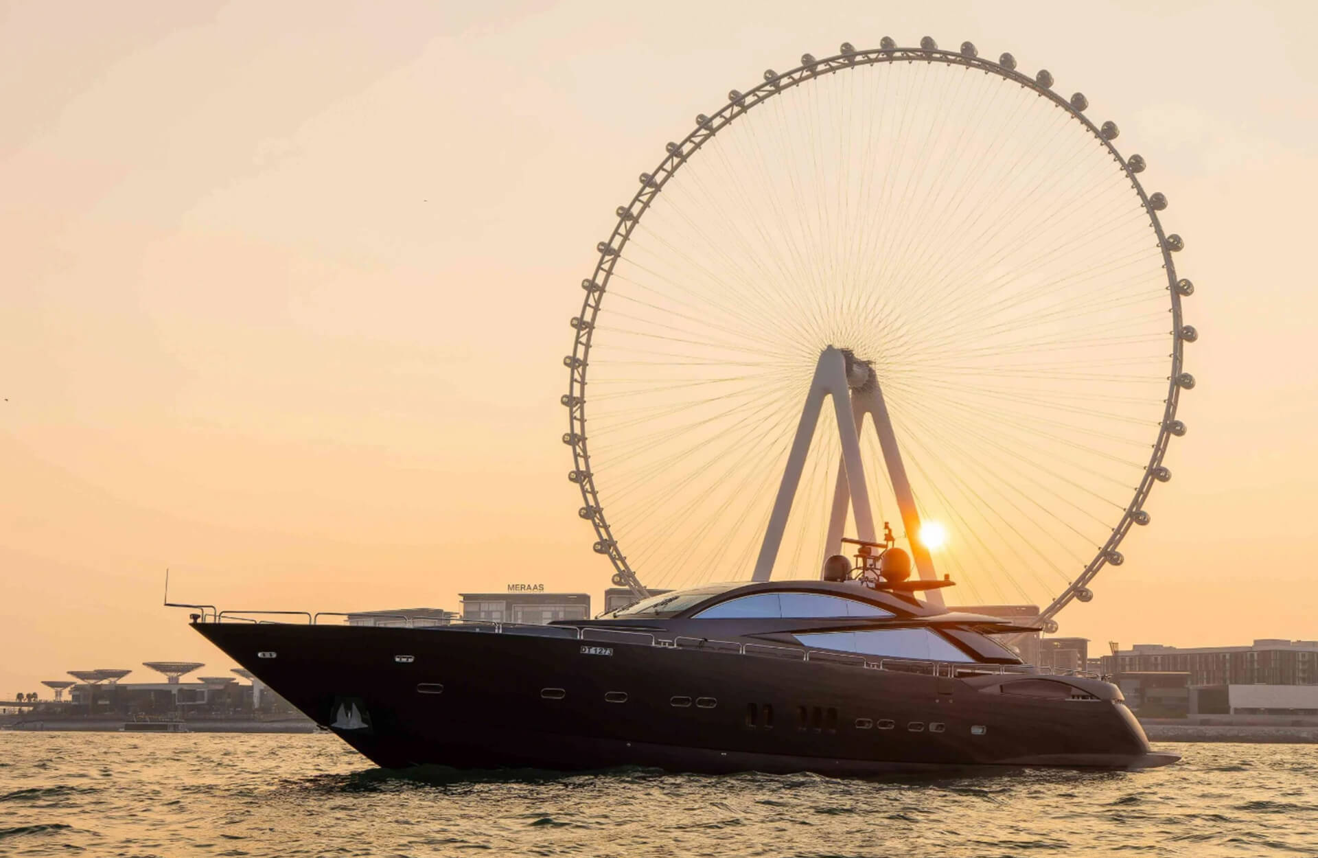 Rent the striking "Eye" yacht in Dubai, featuring a sleek black design and a luxurious jacuzzi for ultimate relaxation. This yacht combines modern elegance with premium amenities, offering a perfect setting for private events or leisurely cruises. Soak in the jacuzzi while enjoying the stunning views of Dubai. Book your Dubai yacht for rent today and experience luxury on the water with the Eye yacht.