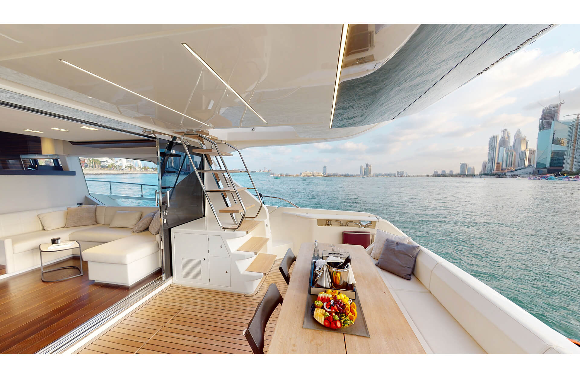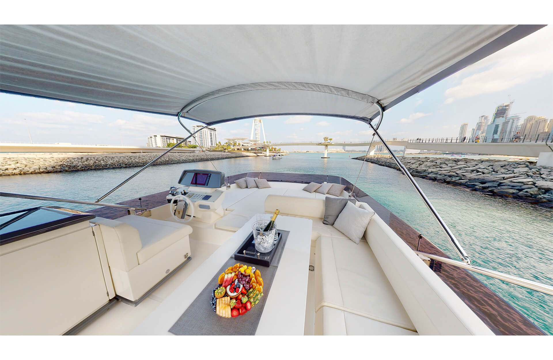 Rent the elegant "Ferretti 670" yacht in Dubai, a luxury 67-ft vessel from the renowned Ferretti brand. Built with precision Italian craftsmanship, this yacht comfortably accommodates up to 15 guests across its three cabins and features a spacious deck for days on the water. Ideal for private day charters, small celebrations or relaxed cruising, the Ferretti 670 blends performance with sophistication. Book through Dubai Yacht Rental today and set sail aboard the "Ferretti 670" yacht for an exceptional experience on Dubai’s coastline.