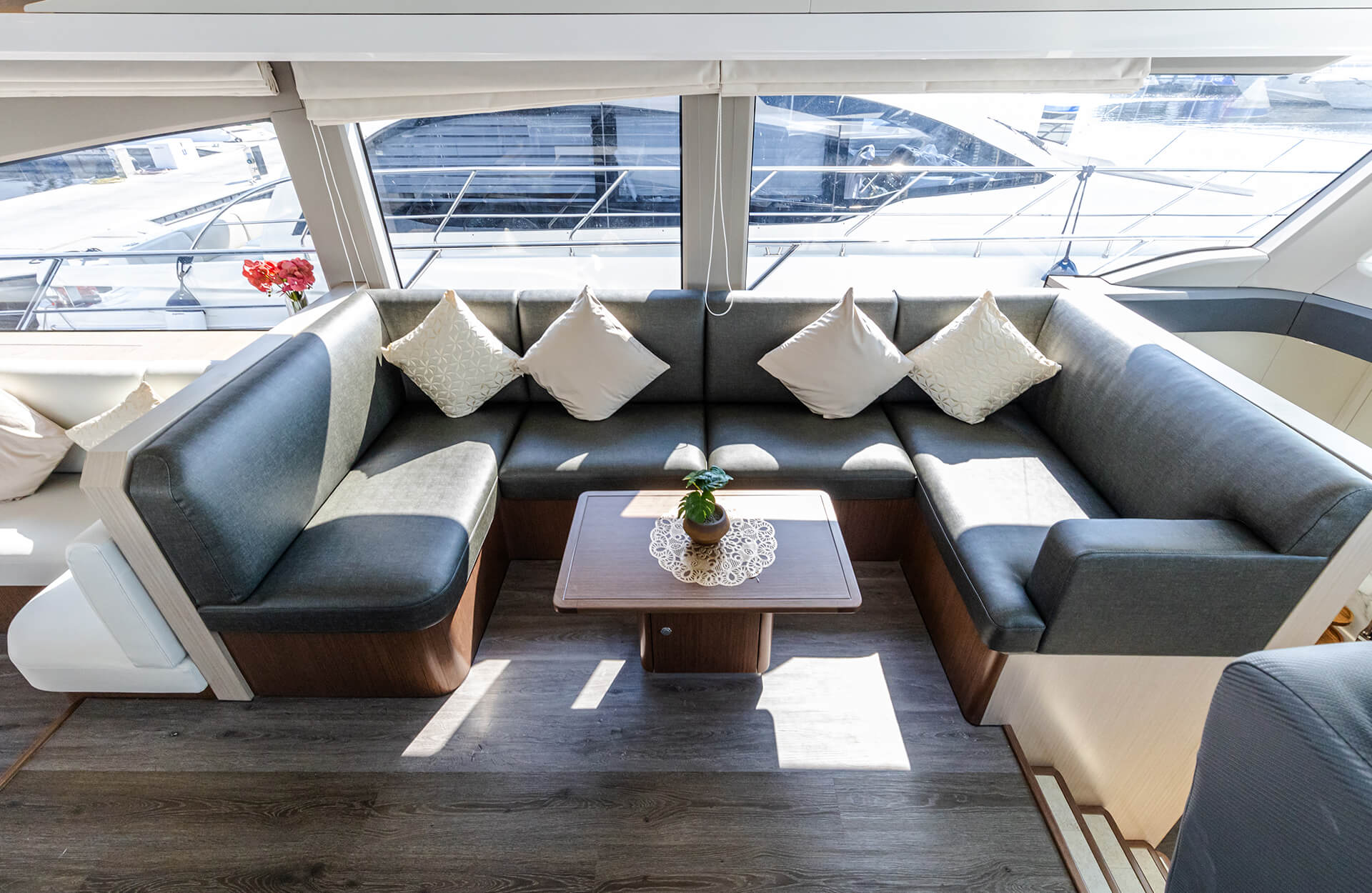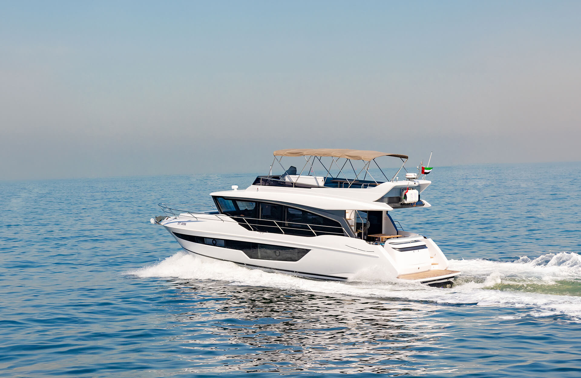 Charter Fly, a sleek 56‑ft premium yacht in Dubai, perfect for groups of up to 20 guests. With generous seating areas and elegant design, it’s ideal for relaxed private cruises, intimate parties, or sunset escapes. Experience refined comfort and style aboard this boutique yacht.
