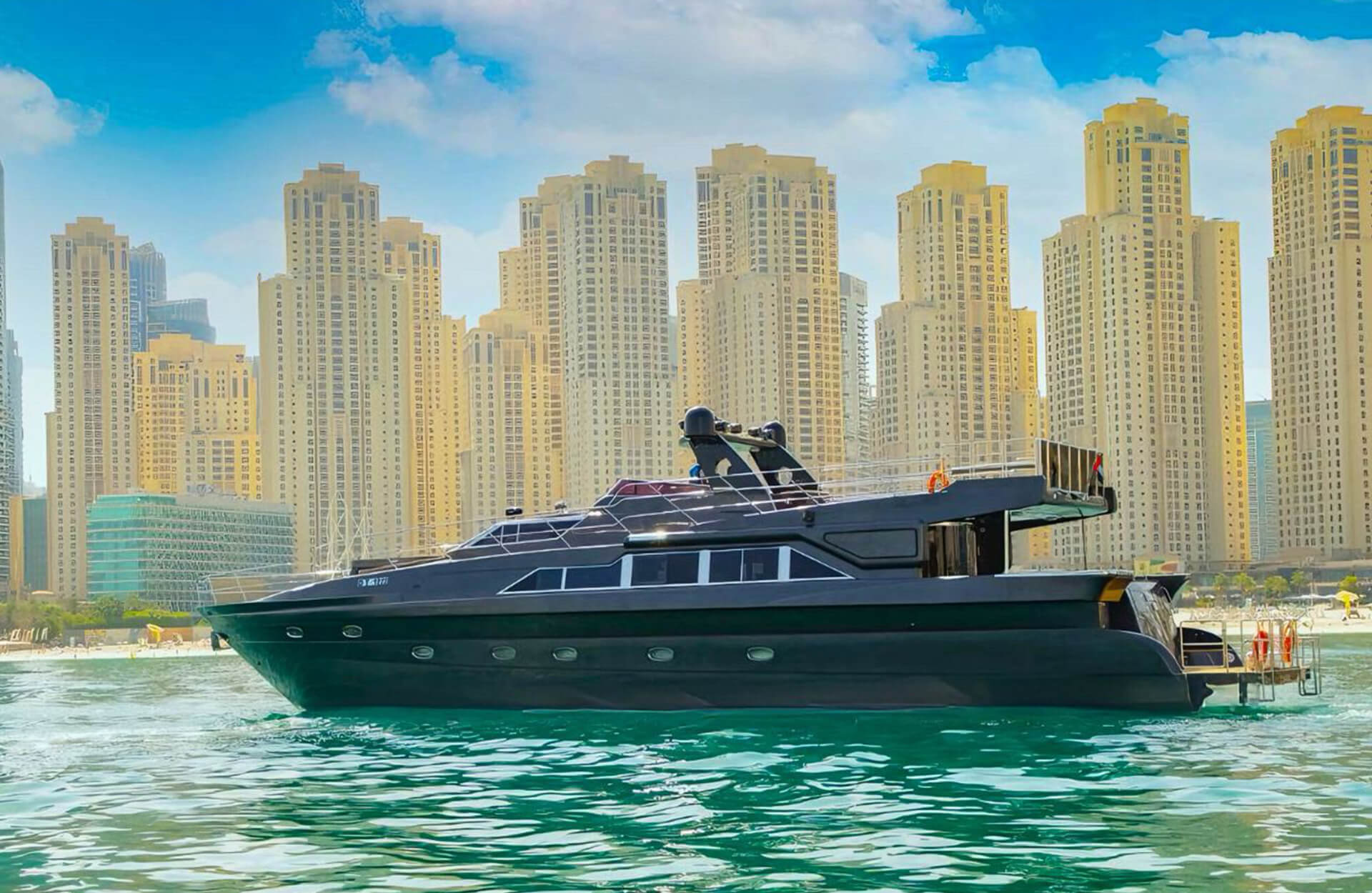 Rent the impressive "Gulf Craft 95 ft" yacht in Dubai, an affordable 95-foot vessel offering space for up to 56 guests and packed with features like a sizable jacuzzi and large upper deck - a standout choice for parties, corporate gatherings, or vibrant events. Designed for both comfort and celebration, it’s perfect for hosting and cruising along Dubai’s iconic coastline in style. Book through Dubai Yacht Rental today and make your next event aboard the "Gulf Craft 95 ft" yacht truly memorable.