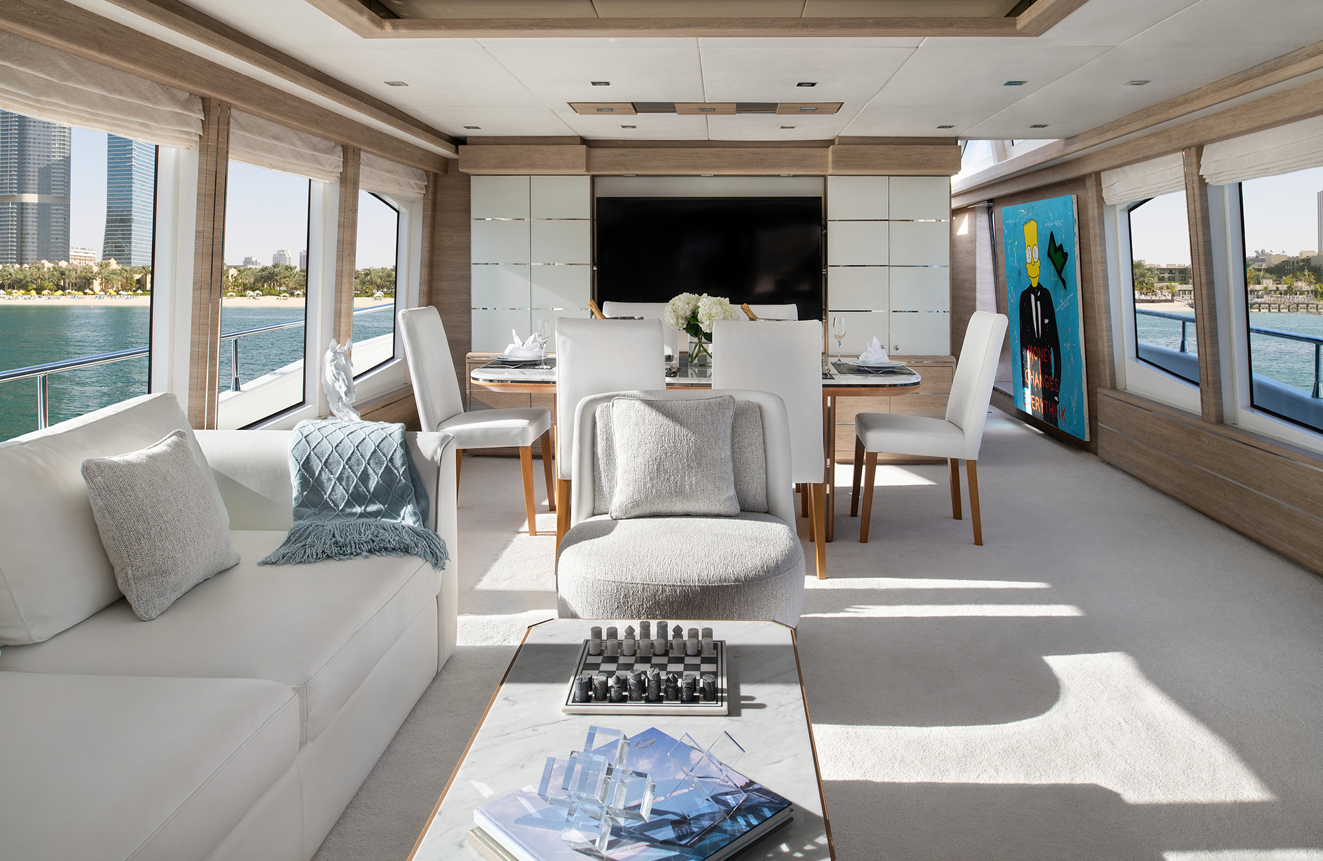 Rent the luxurious Haigan yacht in Dubai for an unforgettable experience. Featuring a spacious jacuzzi, elegant interiors, and top-tier amenities, this yacht is perfect for relaxing, entertaining, or private getaways. Enjoy stunning views of Dubai's coastline while soaking in the jacuzzi or cruising the waters in style. Book Haigan today and experience the ultimate in luxury and comfort.