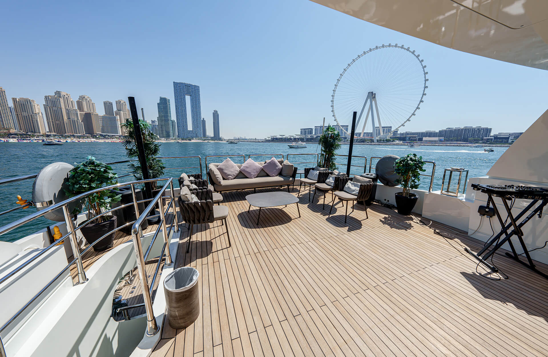 Step aboard the magnificent "Khalilii" yacht, available for rent in Dubai. This luxurious yacht combines elegance with exceptional comfort, offering an ideal setting for both intimate gatherings and grand events. With spacious decks, stylish interiors, and top-tier amenities, "Khalilii" provides the perfect backdrop for an unforgettable yacht rental experience. Whether you're looking for a peaceful retreat or a special celebration, this yacht guarantees an exclusive and memorable experience.