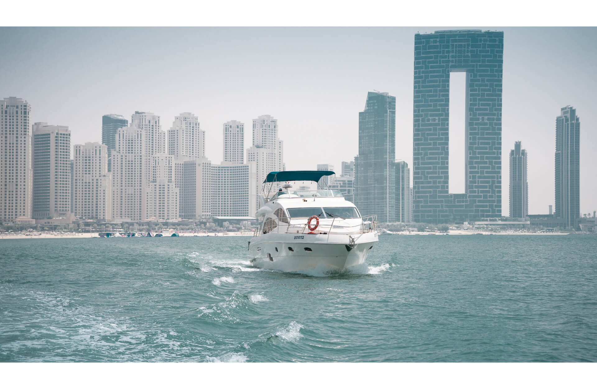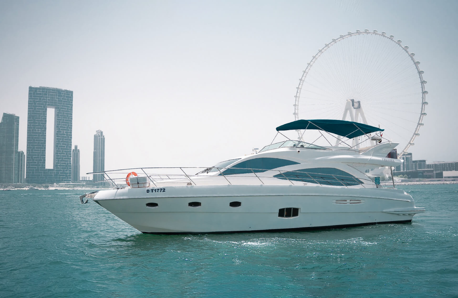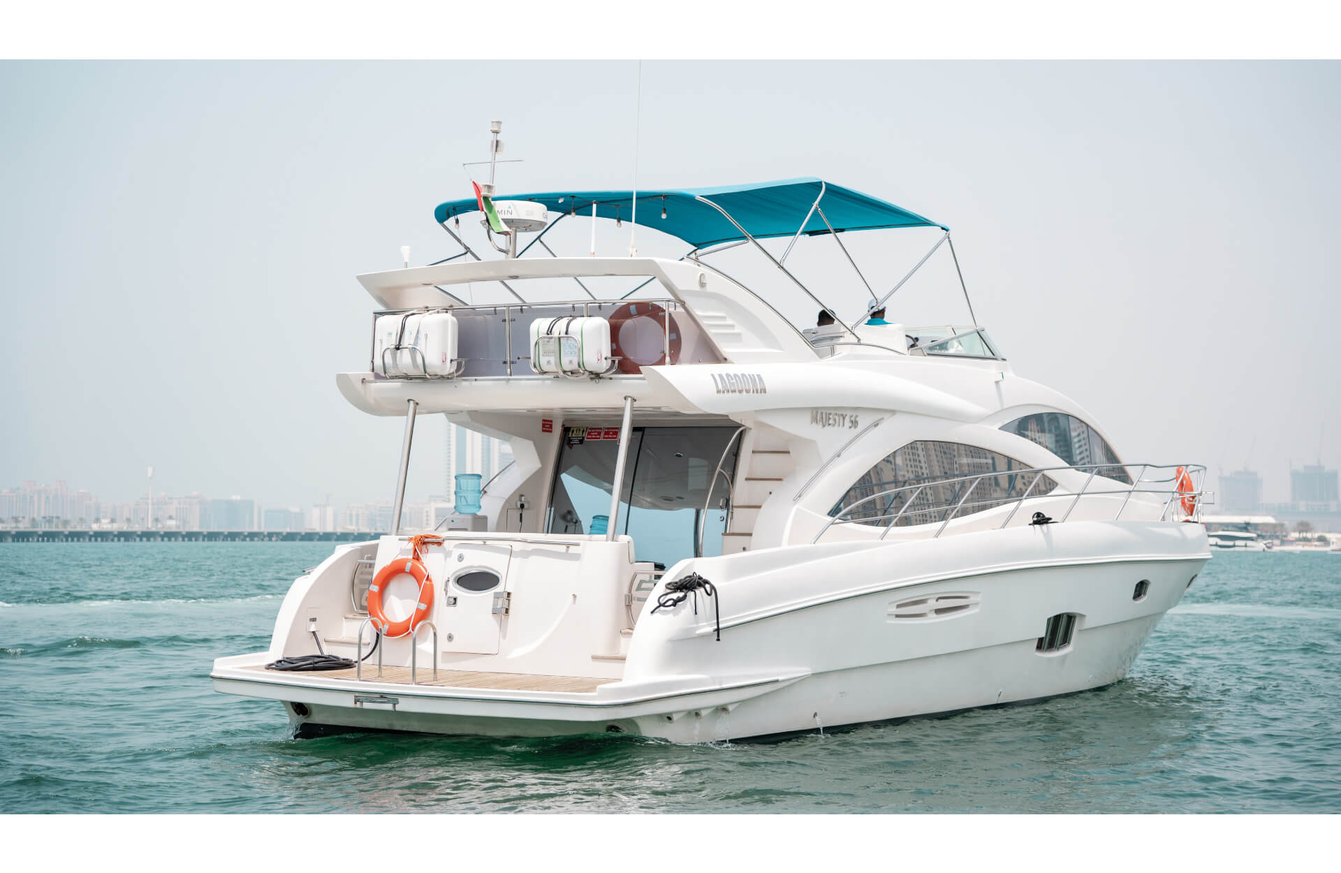 Rent the stunning "Lagoona" yacht in Dubai, a spacious 56-ft vessel built by Majesty that comfortably accommodates up to 24 guests. With two decks, stylish interiors, a social saloon, and sun-lounging areas, it’s perfect for lively celebrations or chilled day-time cruises. Departing from Dubai Harbour, this yacht offers the perfect backdrop of the coastline and skyline. Book through Dubai Yacht Rental today and enjoy a memorable experience aboard the "Lagoona" yacht.