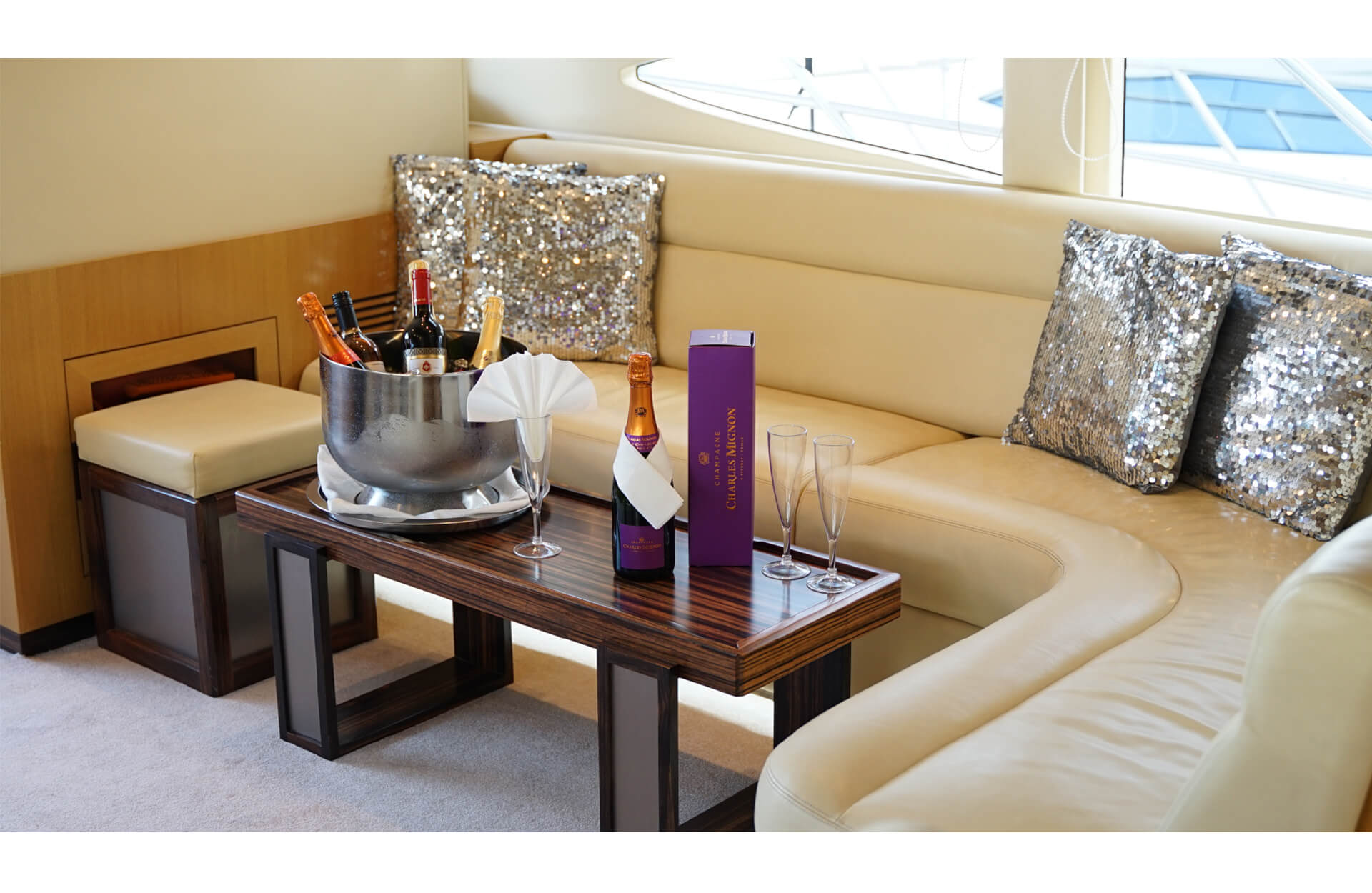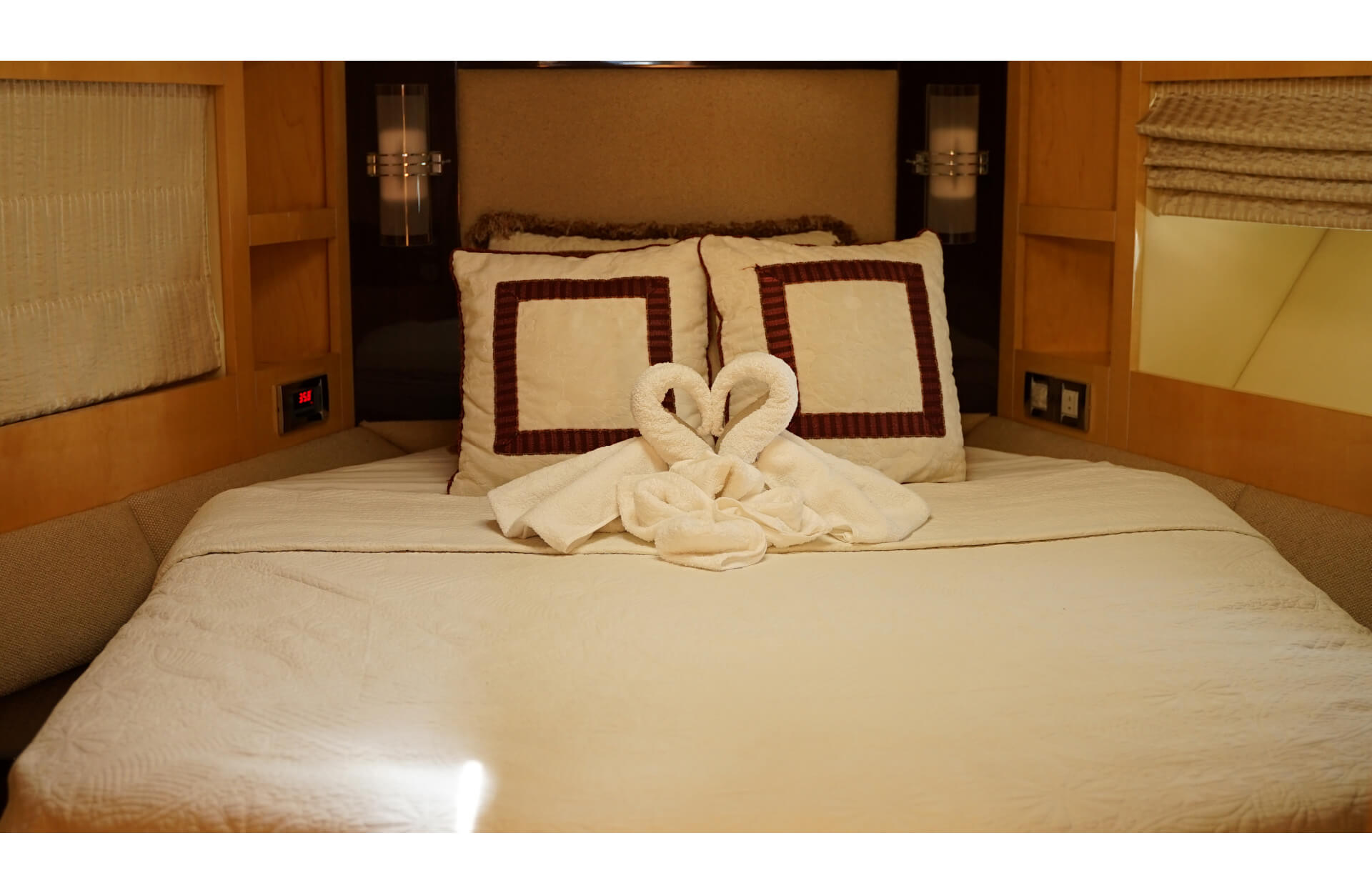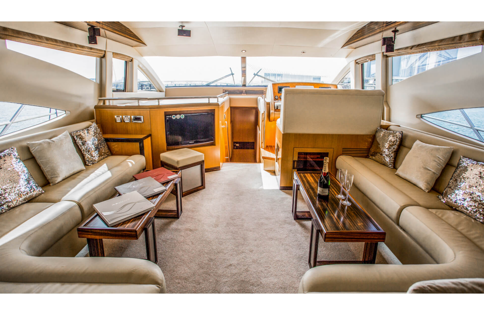 Rent the stunning "Lagoona" yacht in Dubai, a spacious 56-ft vessel built by Majesty that comfortably accommodates up to 24 guests. With two decks, stylish interiors, a social saloon, and sun-lounging areas, it’s perfect for lively celebrations or chilled day-time cruises. Departing from Dubai Harbour, this yacht offers the perfect backdrop of the coastline and skyline. Book through Dubai Yacht Rental today and enjoy a memorable experience aboard the "Lagoona" yacht.