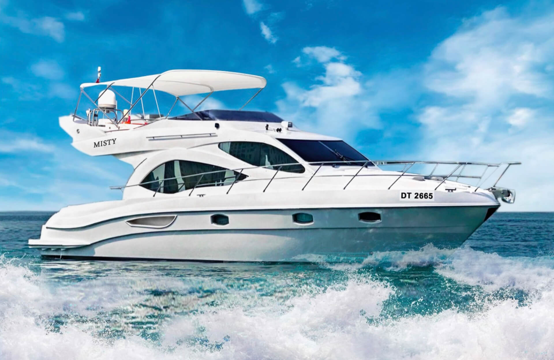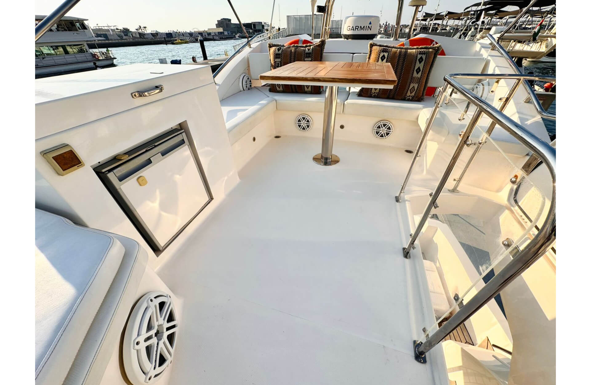 Rent the refined "Majesty 44 ft" yacht in Dubai, an affordable 44-ft vessel built by the esteemed Majesty brand. Designed for up to 12 guests, it features two cabins and modern comforts perfect for private outings or small-group events. Whether you’re planning a laid-back cruise or an elegant day on the water, the “Majesty 44 ft” offers a stylish and accessible yachting experience. Book through Dubai Yacht Rental today and enjoy a memorable time aboard the "Majesty 44 ft" yacht.