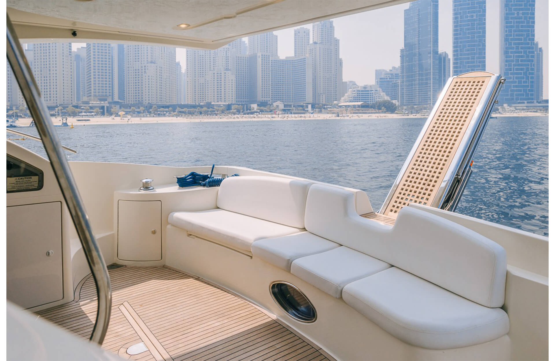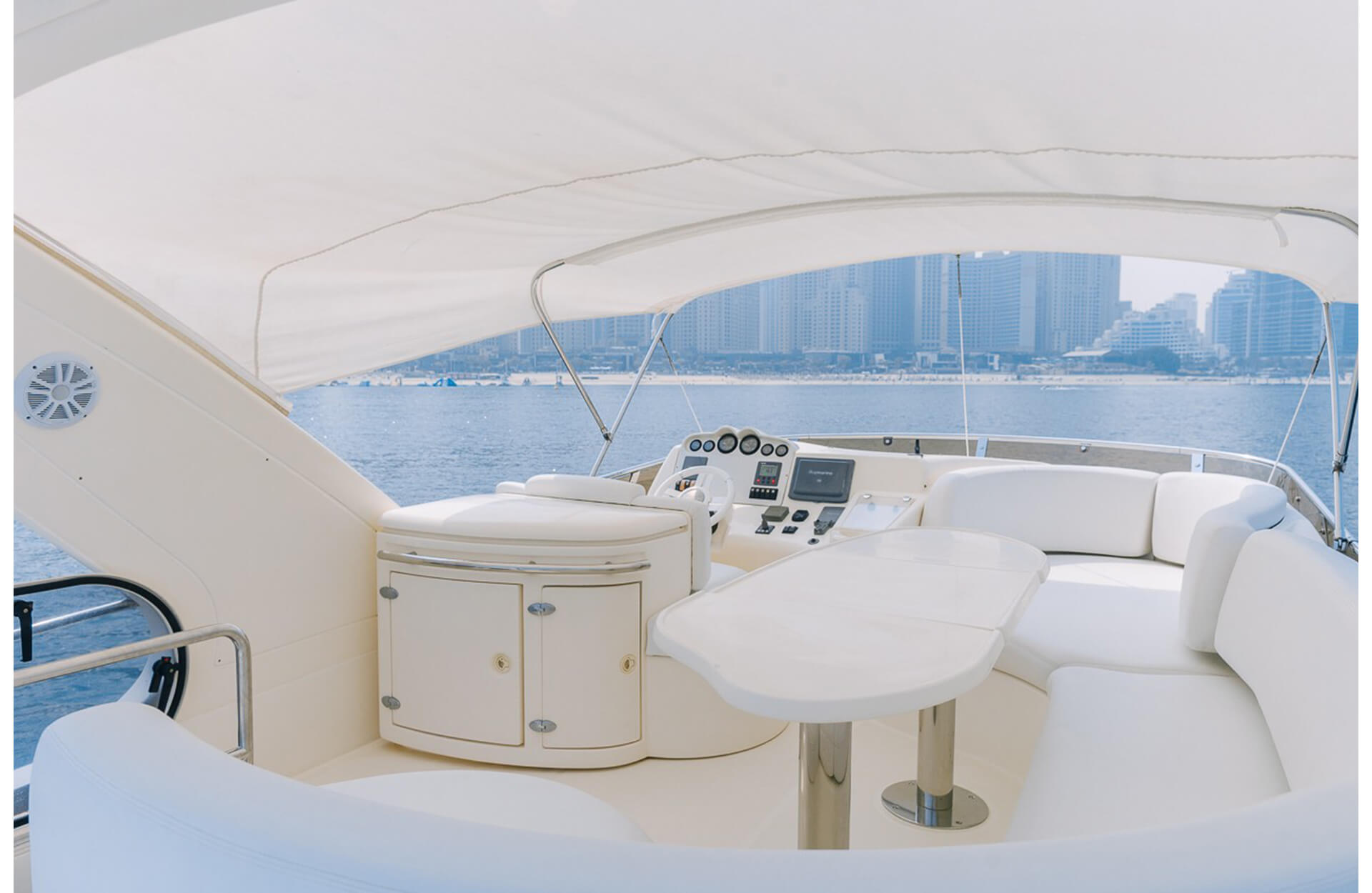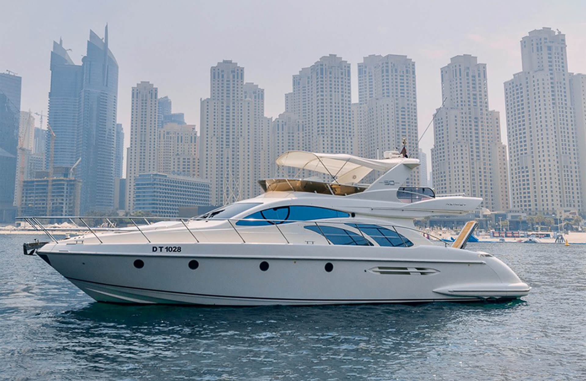 Rent the "Monica" yacht in Dubai, an affordable 50-ft Azimut built to host up to 15 guests in comfortable style. With a flybridge, sun-lounging bow area, and elegant interiors featuring 2 cabins and 2 baths, it’s ideal for intimate day cruises or relaxed celebrations. Enjoy cruising Dubai’s coastline with family or friends. Book through Dubai Yacht Rental today and experience great value aboard the "Monica" yacht.