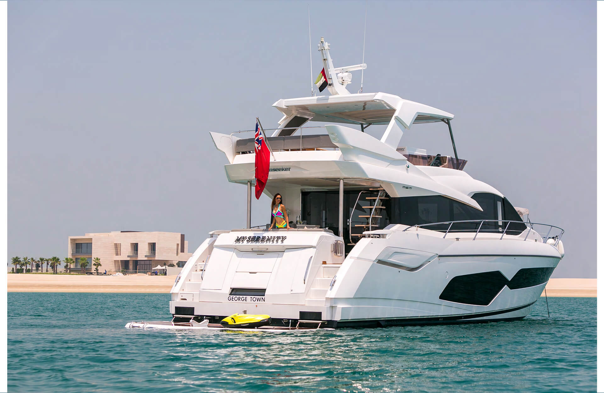 Rent the exquisite "My Serenity" yacht in Dubai, a luxury vessel from the renowned Sunseeker brand, designed for up to 20 guests and featuring a large upper deck perfect for lounging or entertaining. Enjoy panoramic views of Dubai’s coastline while soaking in the relaxed ambiance and premium amenities. Book through Dubai Yacht Rental today and treat yourself to a truly elevated sea experience aboard the "My Serenity" yacht.