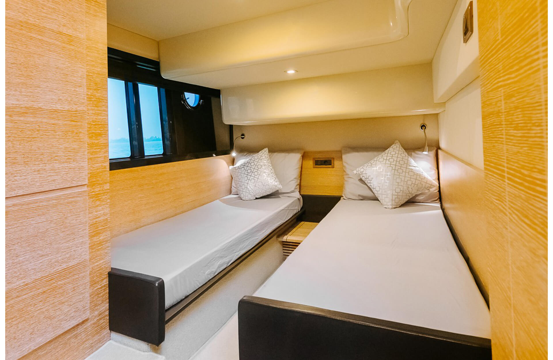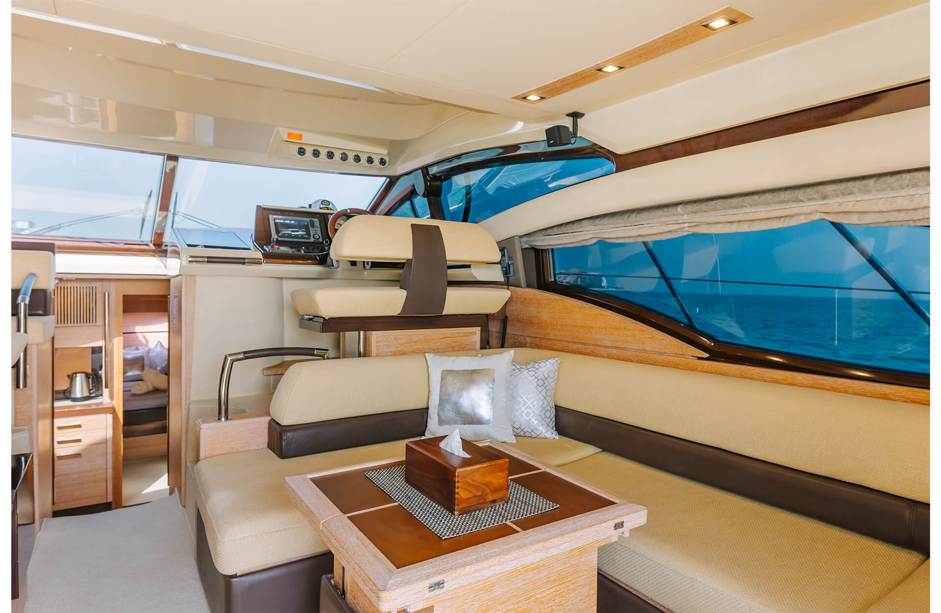 Rent the impressive "No Regrets" yacht in Dubai, an affordable 48-ft vessel accommodating up to 12 guests with modern styling and Italian craftsmanship by Azimut. Recently refitted, it features comfortable cabin space and a laid-back open deck - ideal for group outings, casual celebrations, or a day on the water. Glide along Dubai’s coastline in comfort and style. Book through Dubai Yacht Rental today and enjoy the "No Regrets" yacht.