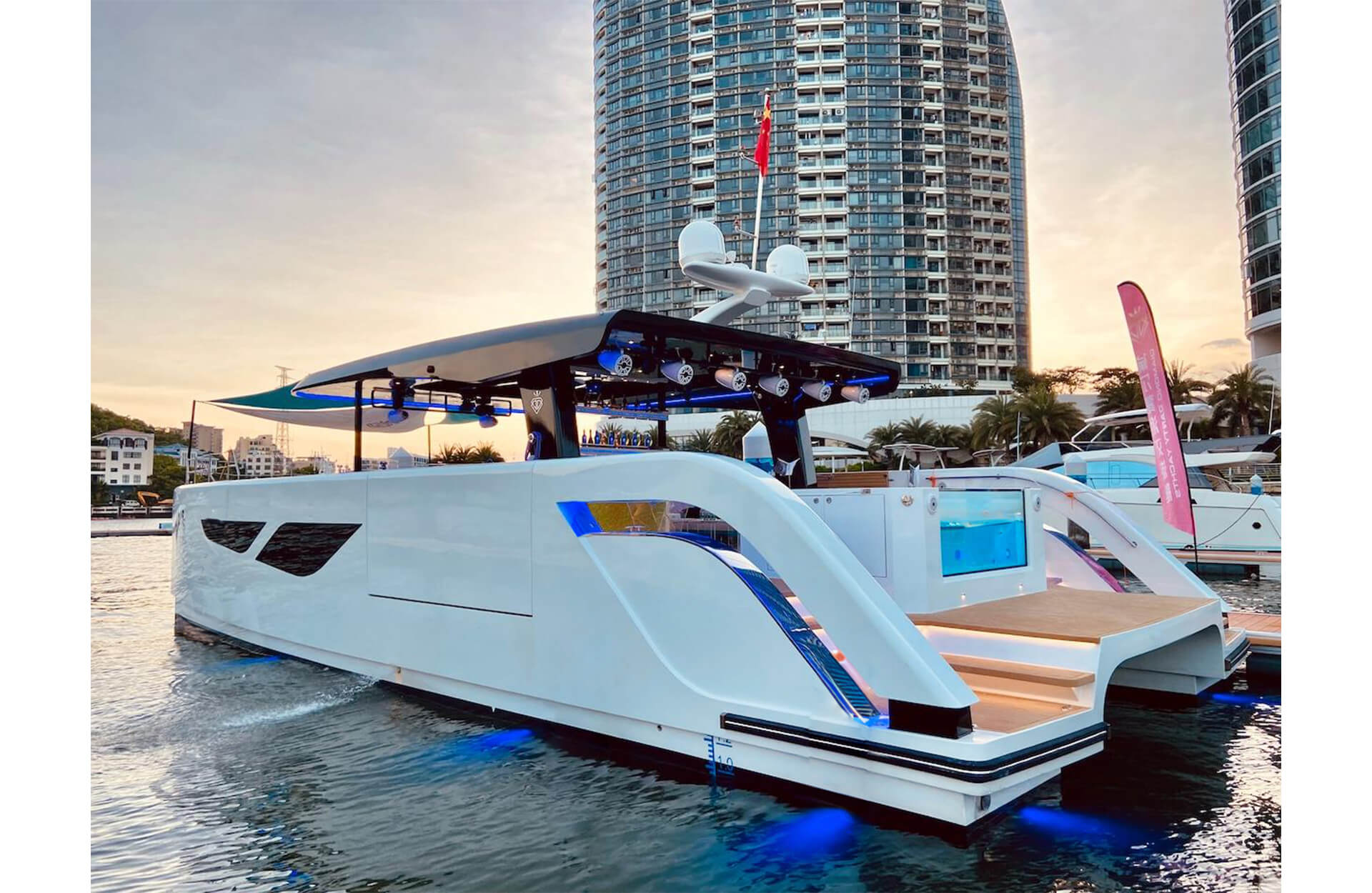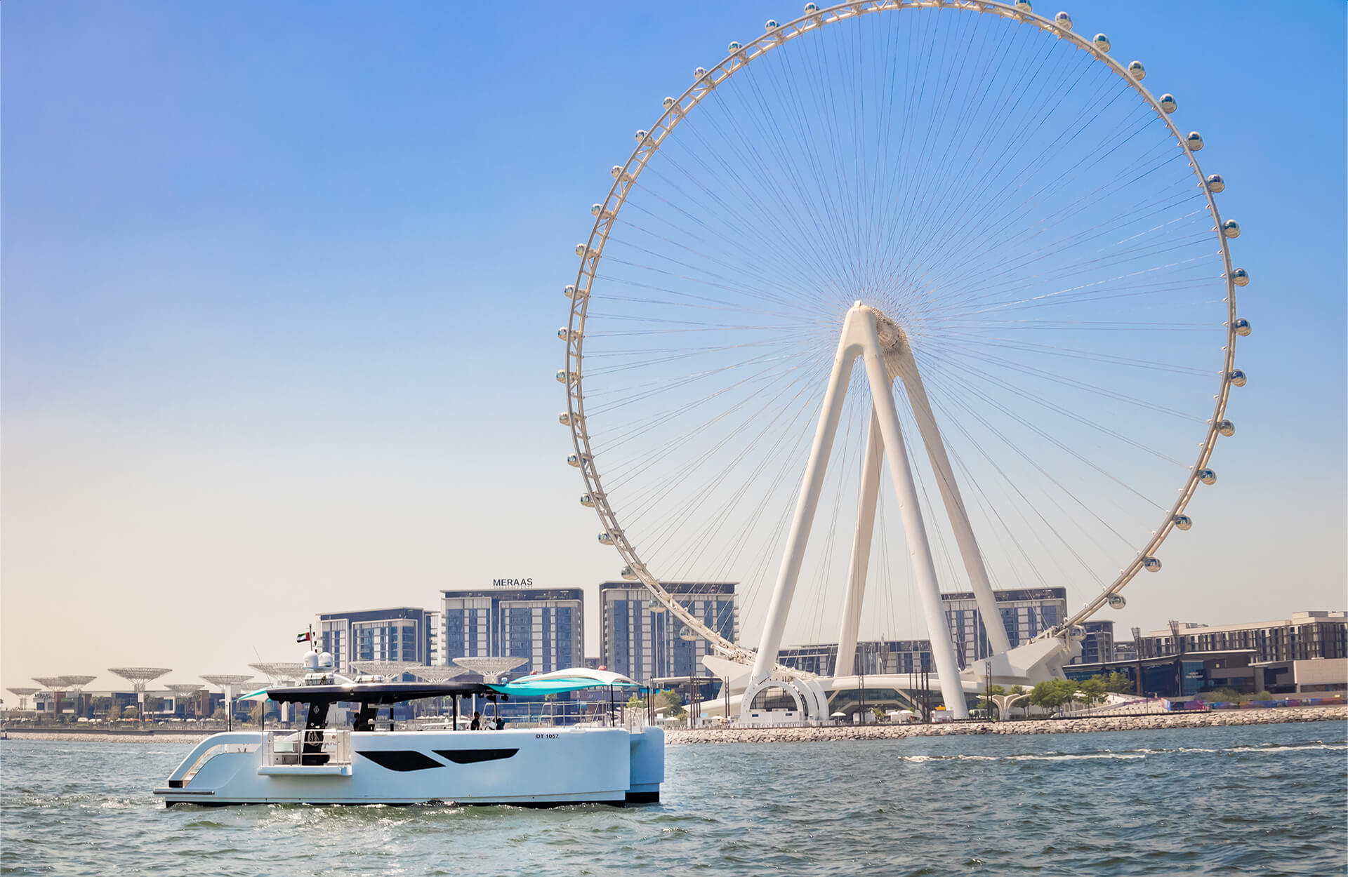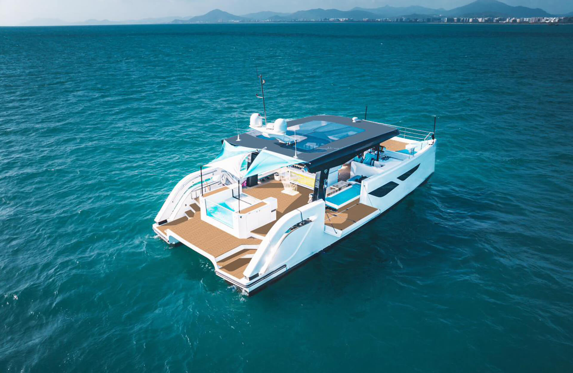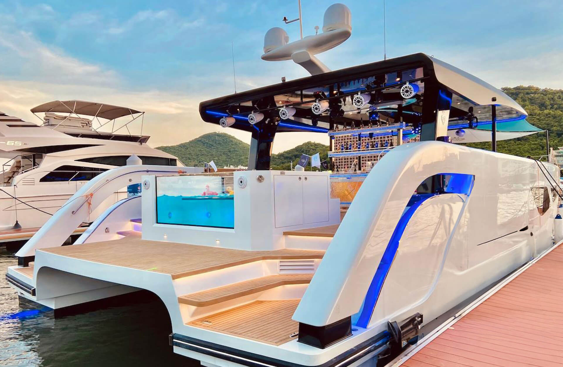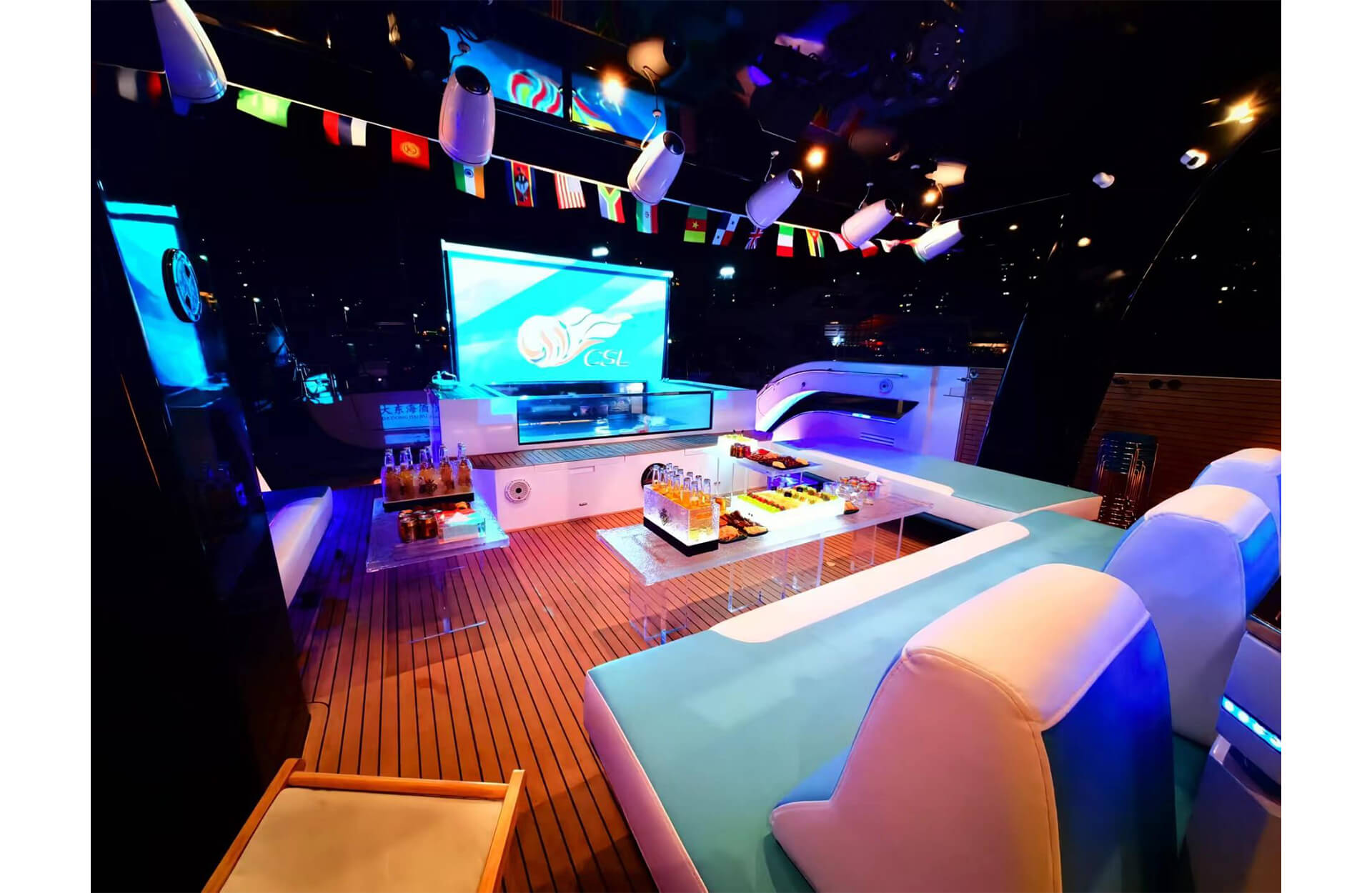 Charter Ozone, a premium party yacht in Dubai for up to 40 guests. Featuring a pool, stylish bar area, expansive open decks, and drop‑down side balconies for seamless sea access. Ideal for vibrant celebrations, sunset parties, or corporate gatherings — Ozone delivers a high‑energy, luxurious Dubai yacht rental experience.