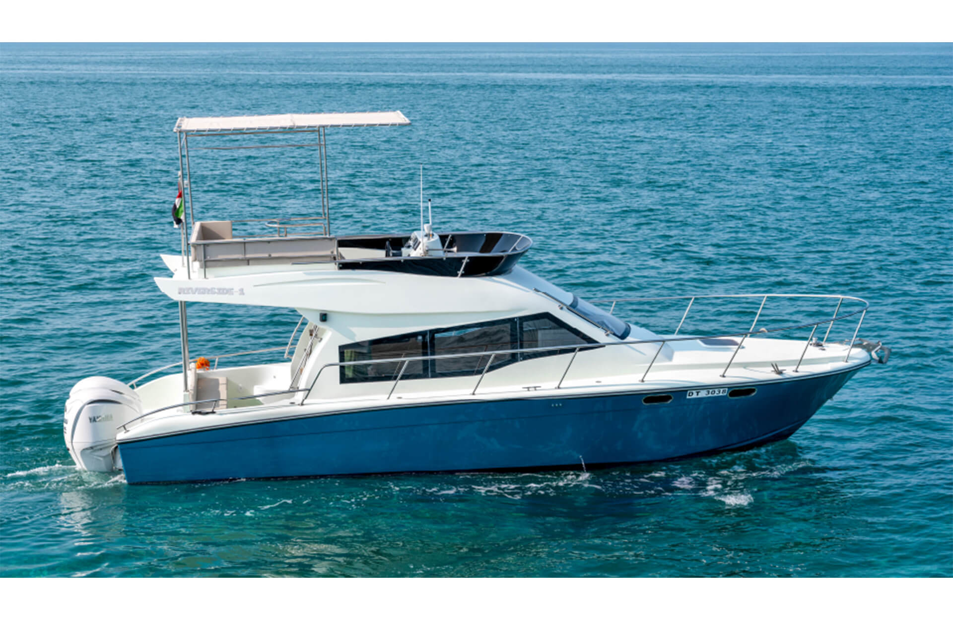 Rent the charming "Riverside" yacht in Dubai, an affordable 40ft vessel perfect for up to 12 guests. Featuring a cozy cabin, spacious upper deck, and sleek design, it’s ideal for intimate gatherings, fishing trips, or scenic cruises along Dubai’s coastline. Enjoy panoramic views and a relaxing atmosphere on the water. Book through Dubai Yacht Rental today and experience a memorable day aboard the "Riverside" yacht.