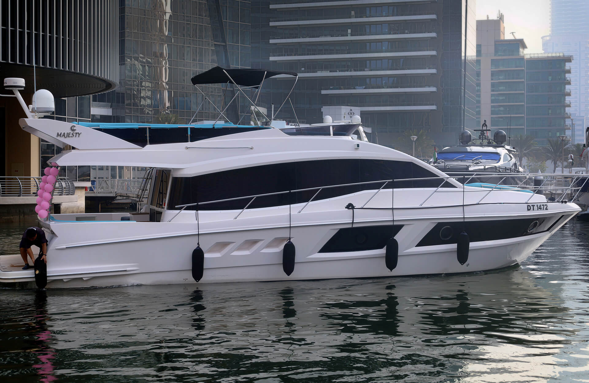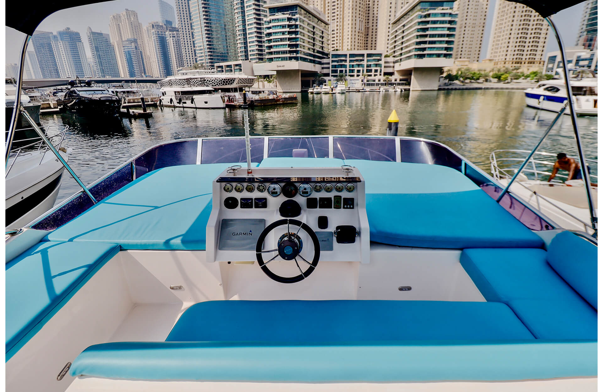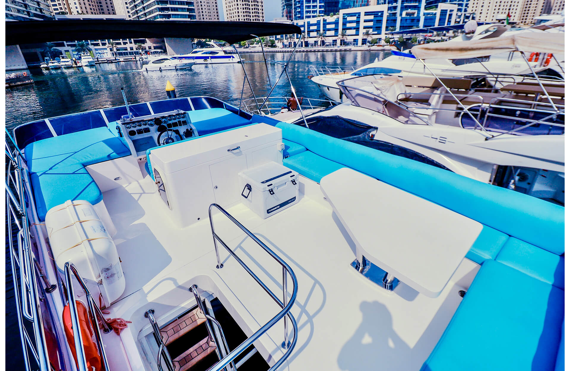 Set sail aboard the stylish "Serena 48ft" yacht, available for rent in Dubai. Designed by the renowned Majesty brand, this yacht combines elegance and comfort, making it perfect for both private celebrations and leisurely cruises. With expansive decks and modern facilities, it offers an unforgettable experience on the water. Book through Dubai yacht rental today and explore the stunning coastline in style aboard the "Serena 48ft".