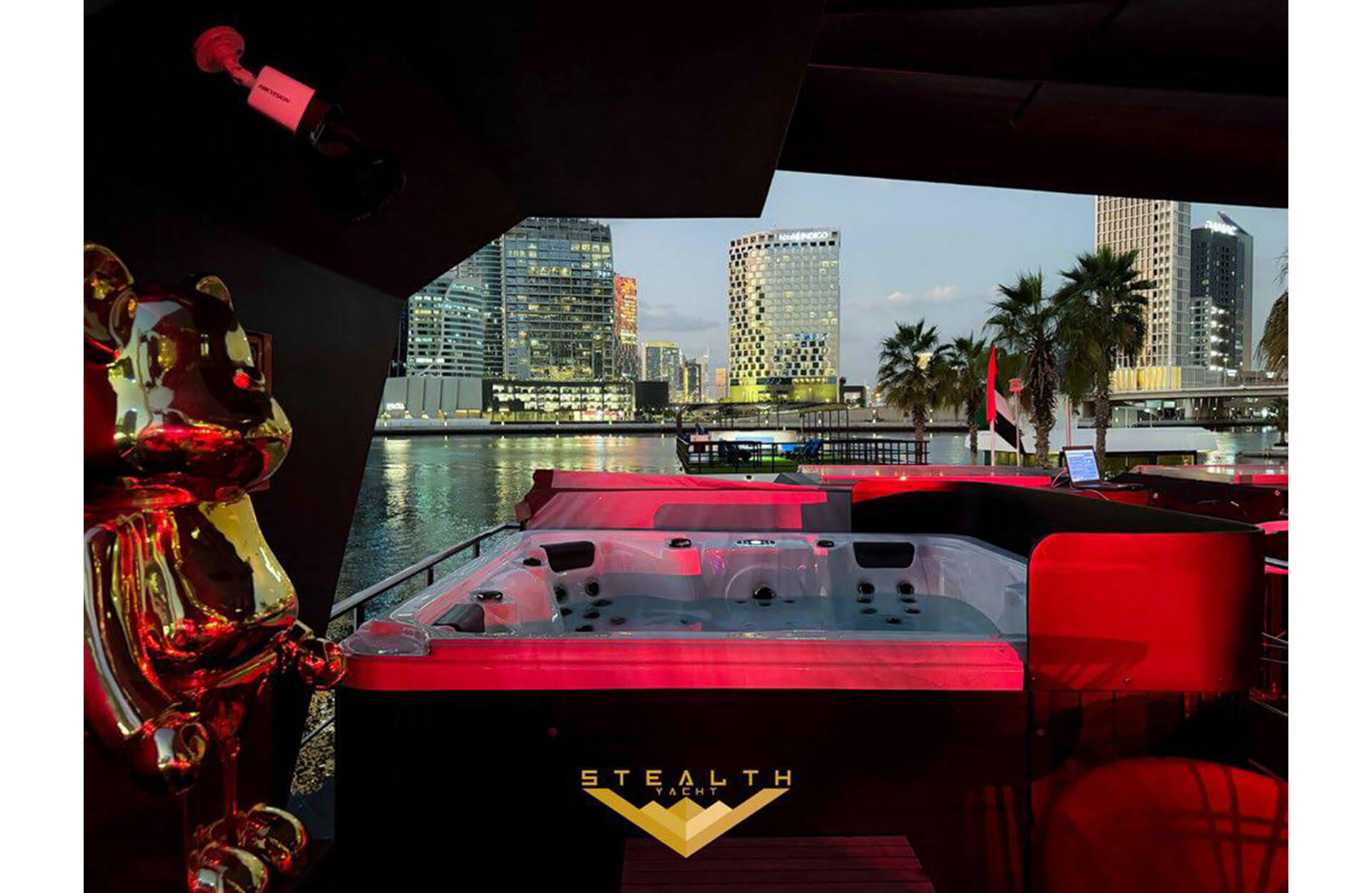 Rent the extraordinary "Stealth" yacht in Dubai, a Luxury yacht that redefines style and comfort. With a sleek black design, a DJ booth, and a relaxing jacuzzi, this yacht is perfect for hosting unforgettable parties or private events. Enjoy the spacious decks, premium amenities, and stunning views of Dubai’s coastline. Whether you’re planning a celebration or a luxurious day at sea, "Stealth" offers an unmatched yacht rental experience. Book through Dubai Yacht Rental today for a day of pure luxury.