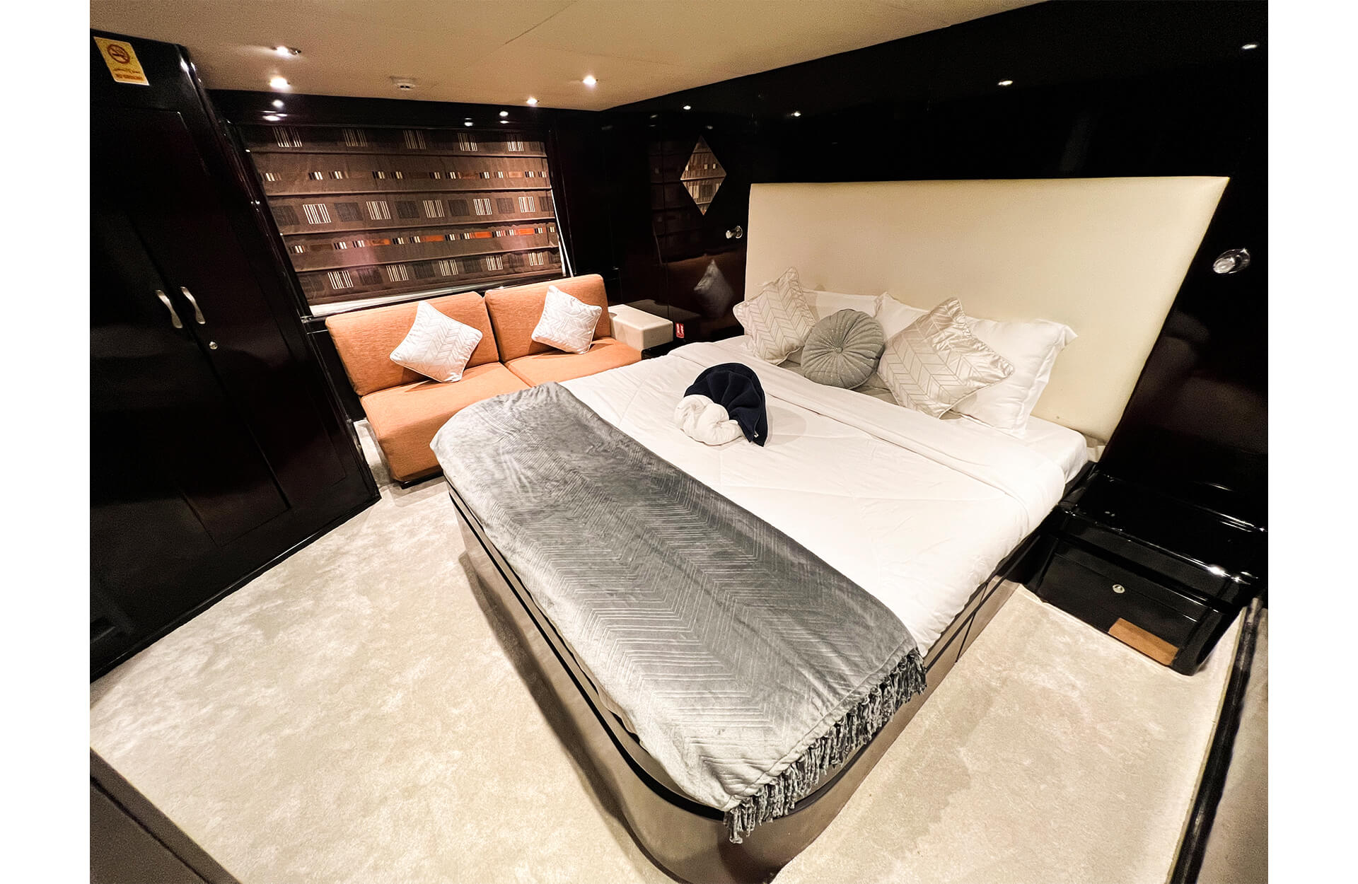 Charter Tisck, a spacious and affordable 75‑ft yacht in Dubai, perfect for groups of up to 30 guests. With ample seating, generous deck space, and an optional water slide, it's ideal for casual gatherings, birthday parties, or relaxed cruises along the Dubai coastline. Whether you're celebrating with friends or hosting a laid-back event, Tisck offers a comfortable and fun yacht rental experience in Dubai—without compromising on space or enjoyment.