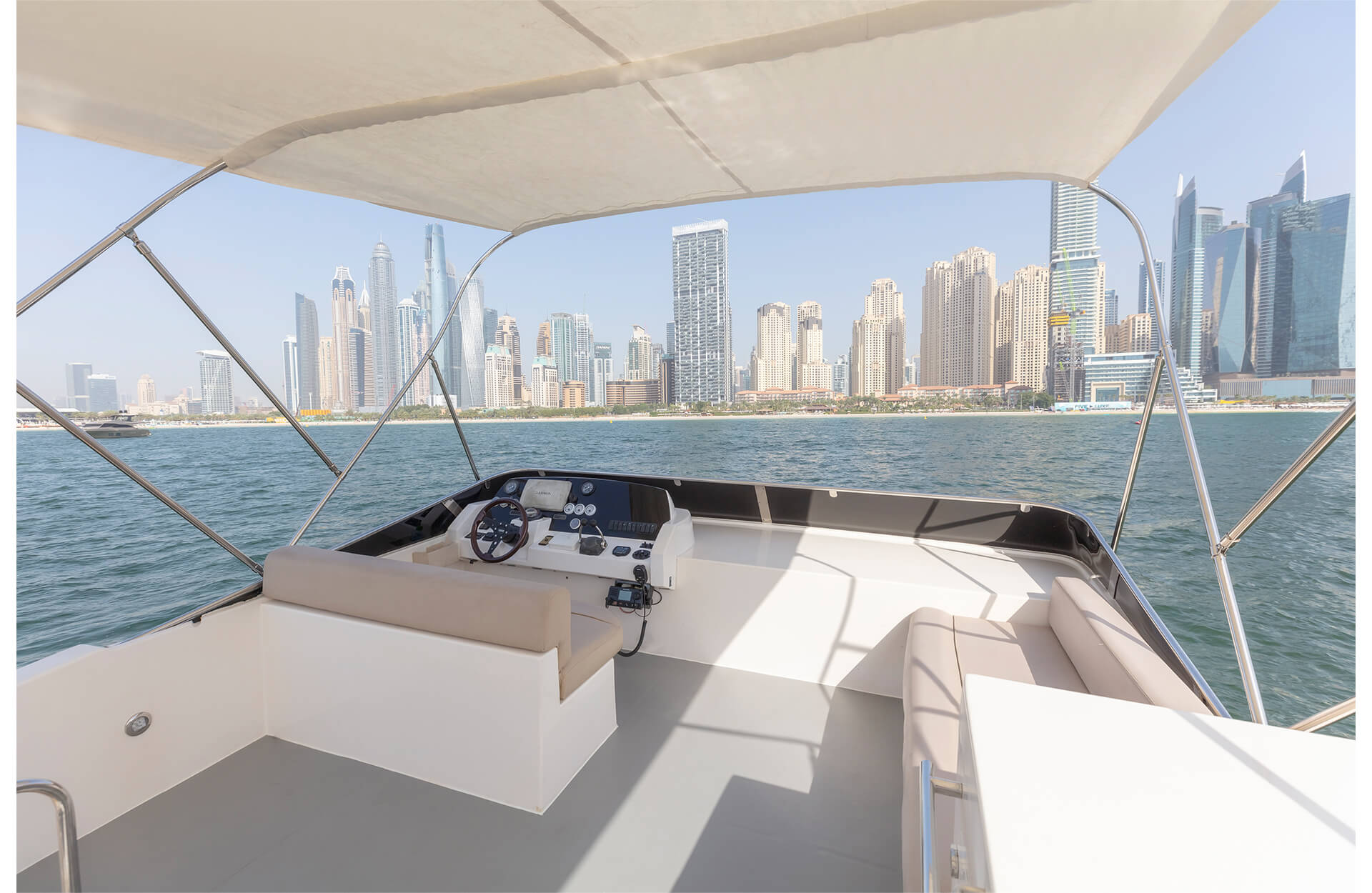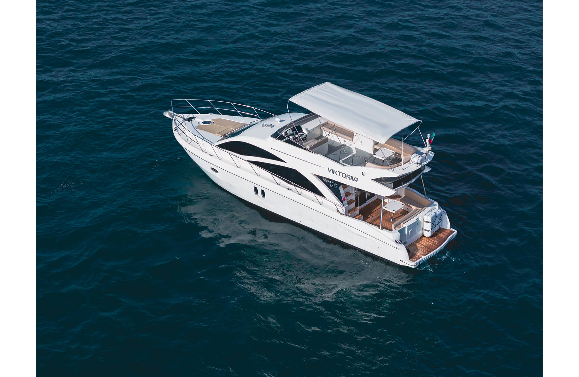 Rent the refined "Viktoriia" yacht in Dubai, an affordable 46 ft vessel boasting an open-layout flybridge and space for up to 12 guests. Ideal for intimate get-togethers, relaxed day cruises or a scenic voyage along the city’s iconic waterfront. With easy access and stylish comfort, the Viktoriia offers a private escape from the everyday. Book through Dubai Yacht Rental today and make your time on the water distinctly memorable aboard the "Viktoriia" yacht.
